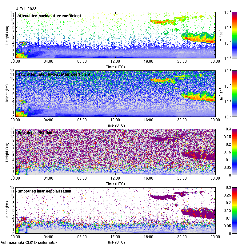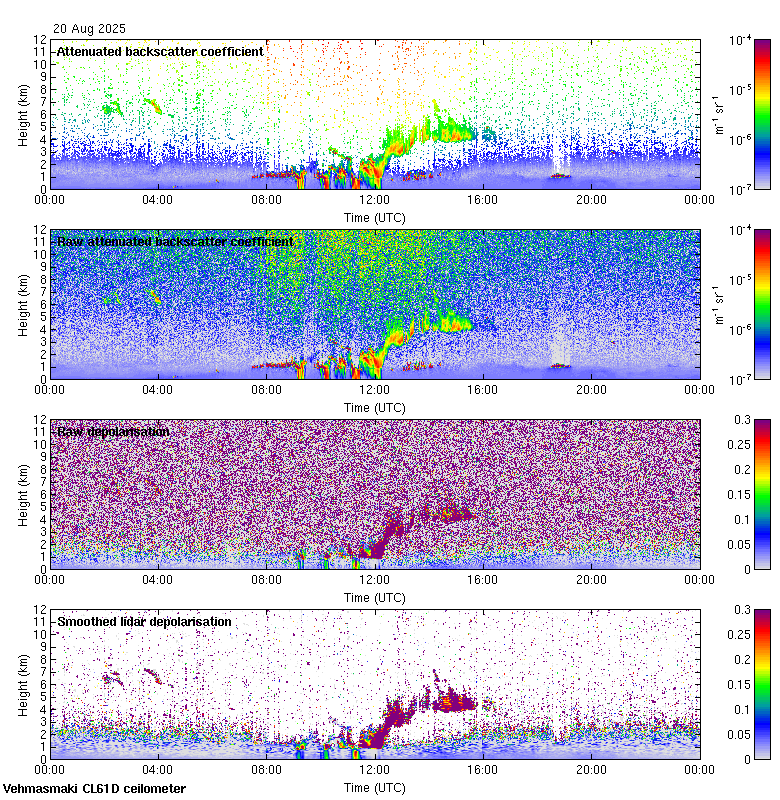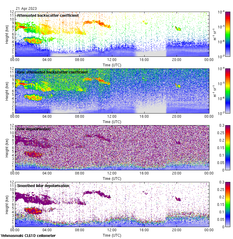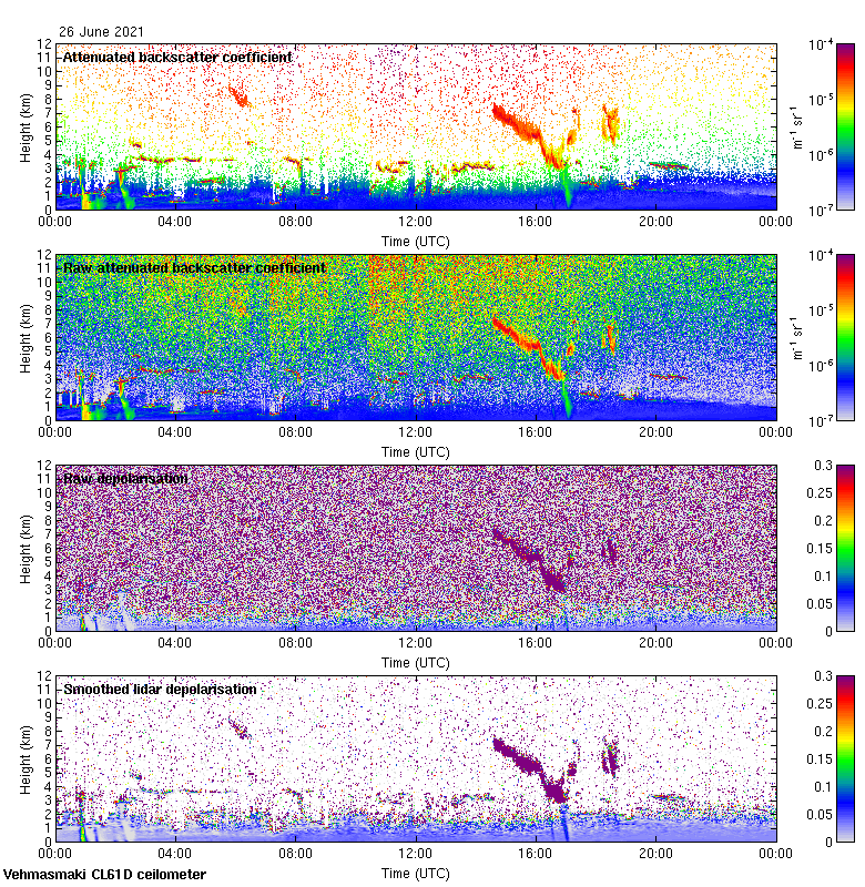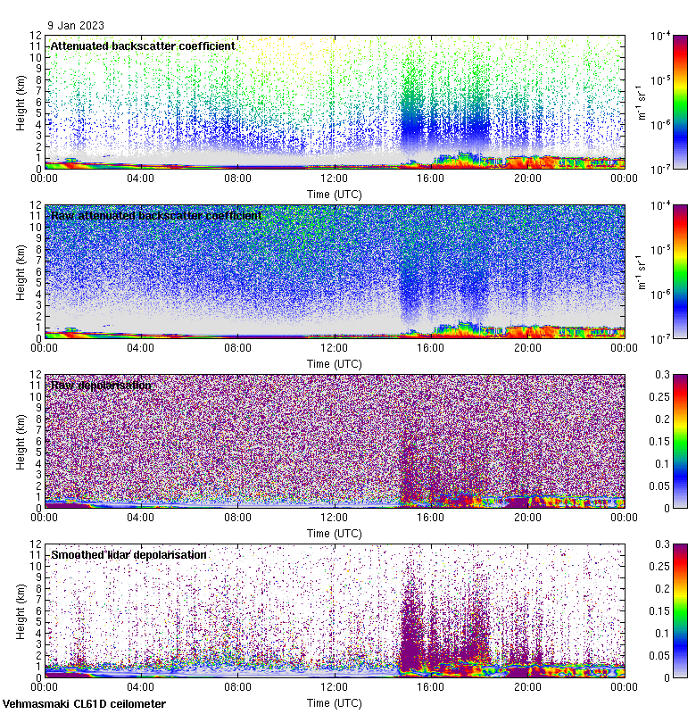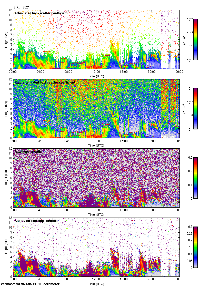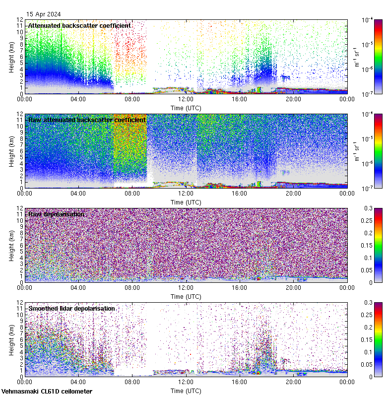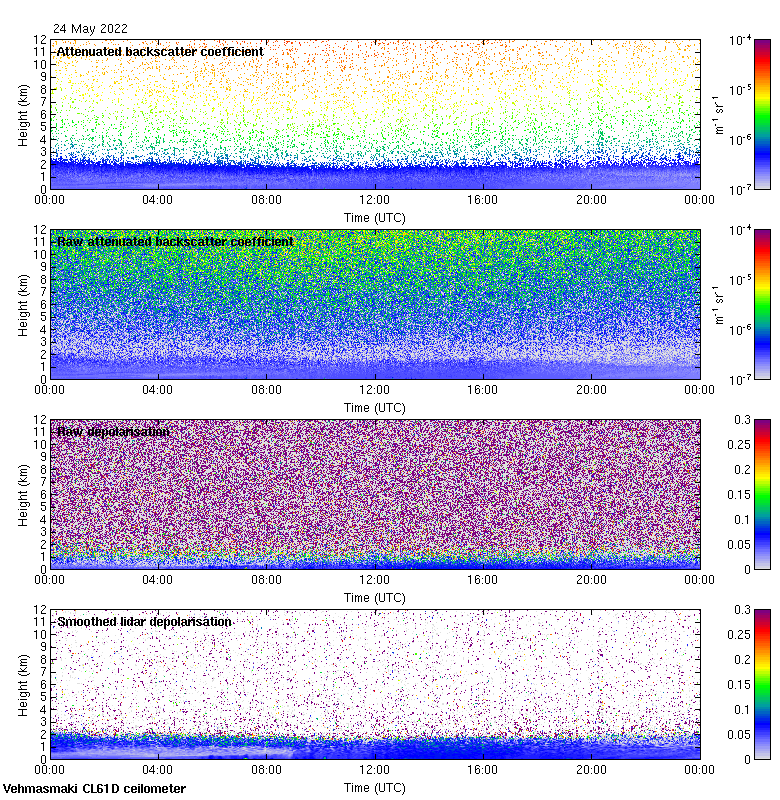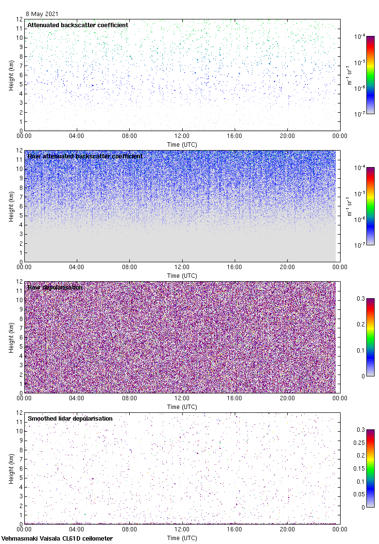 This page contains links to the daily Vehmasmaki Vaisala CL61D ceilometer images created at Kumpula.