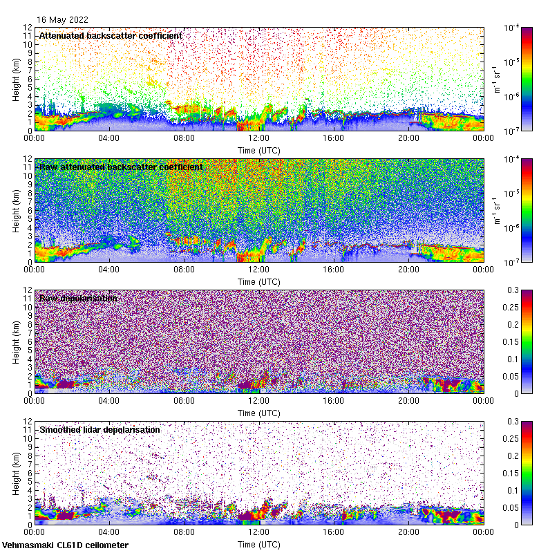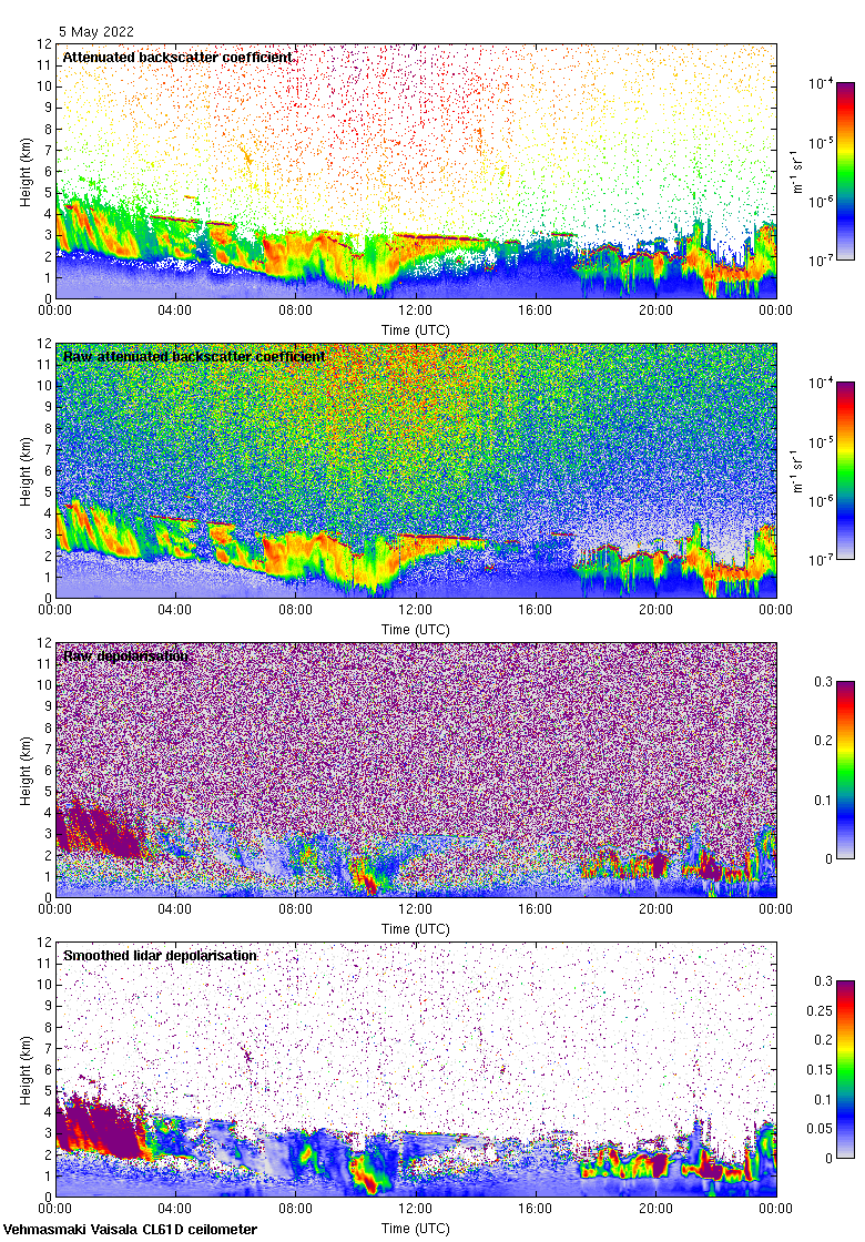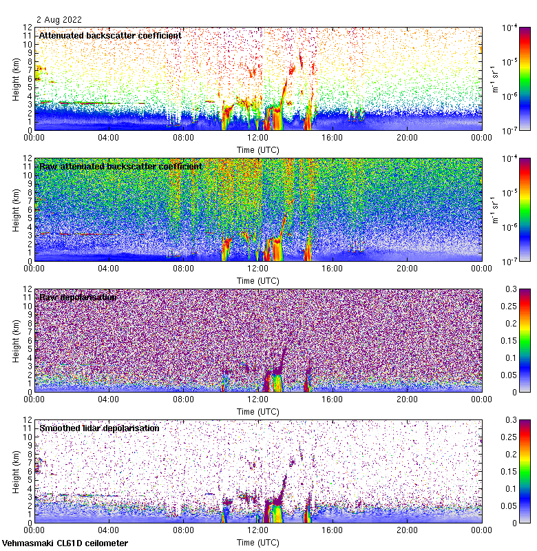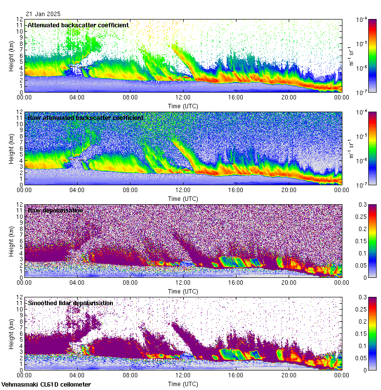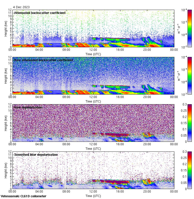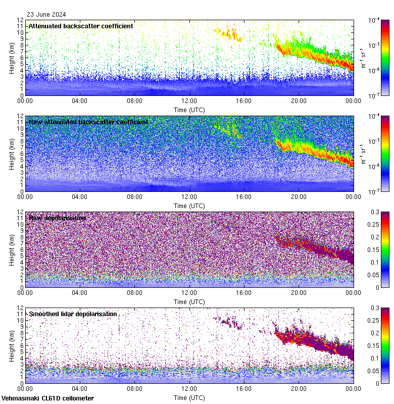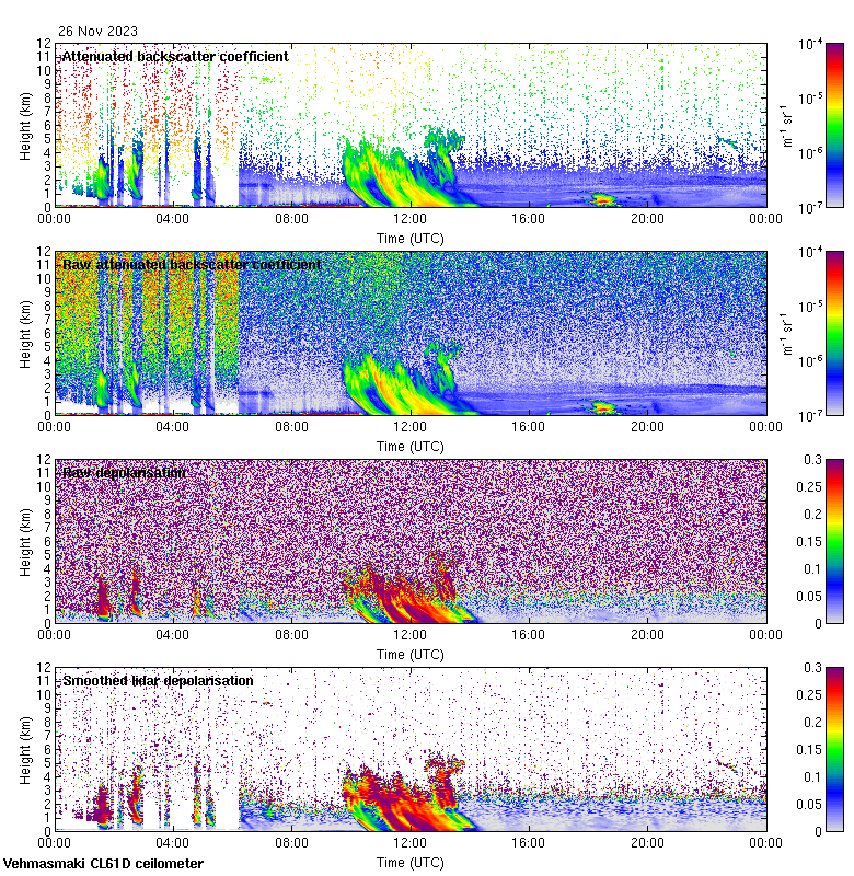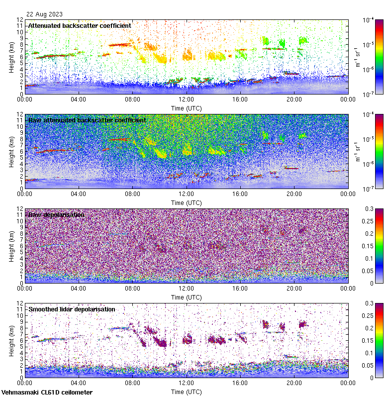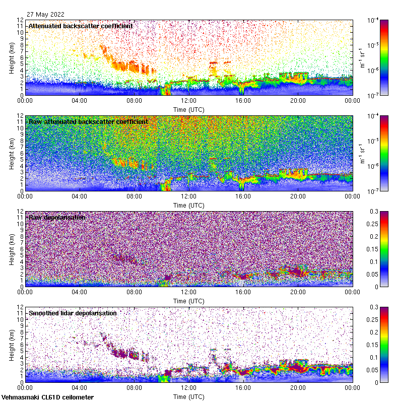 This page contains links to the daily Vehmasmaki Vaisala CL61D ceilometer images created at Kumpula.