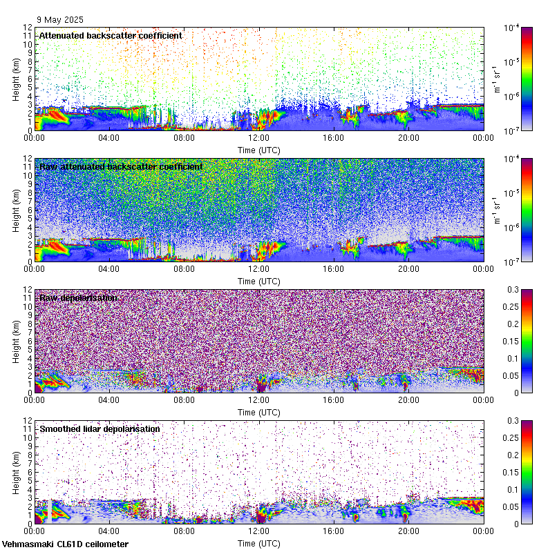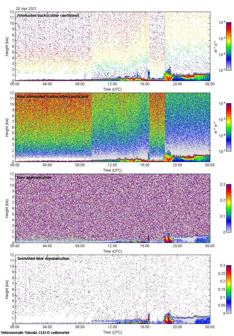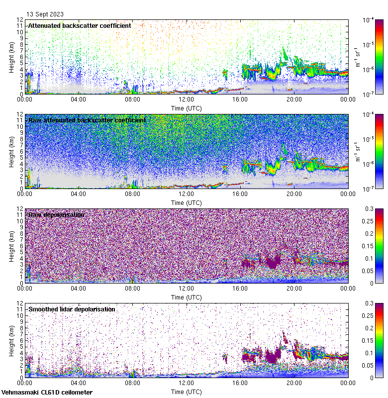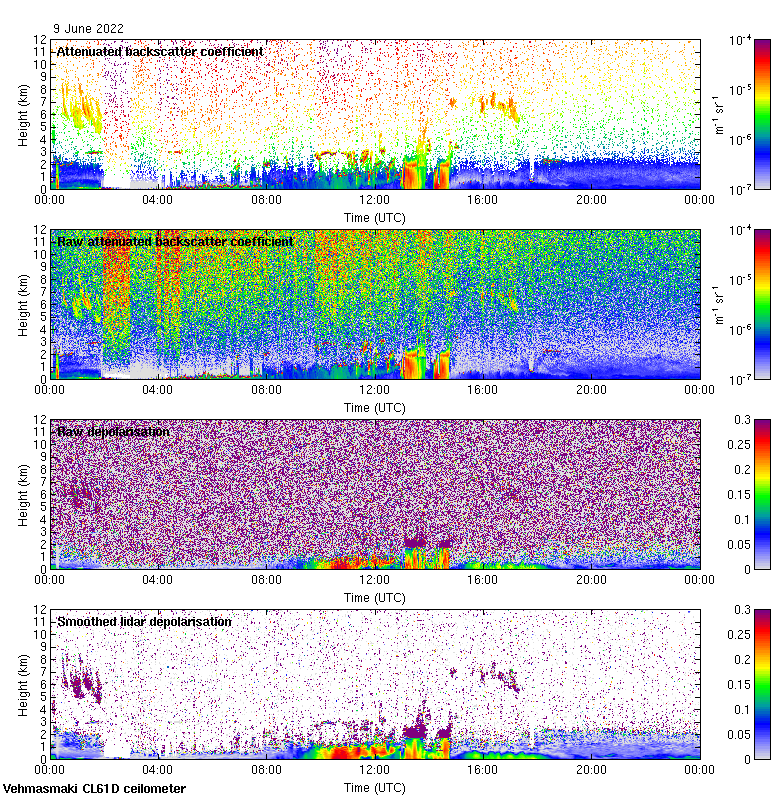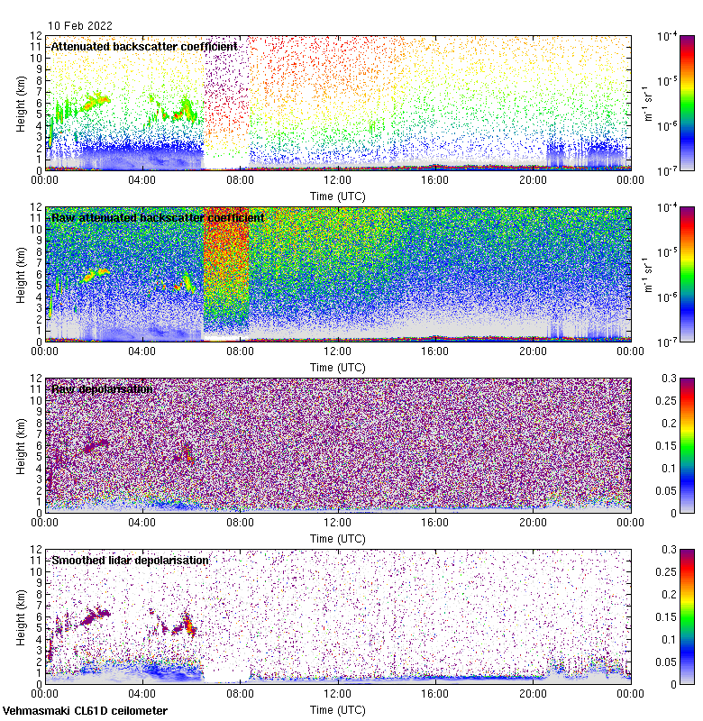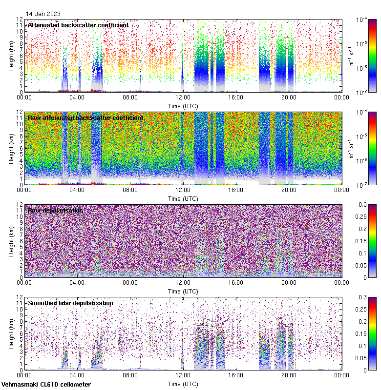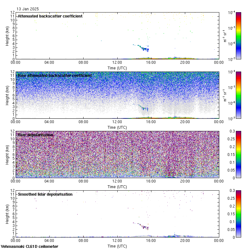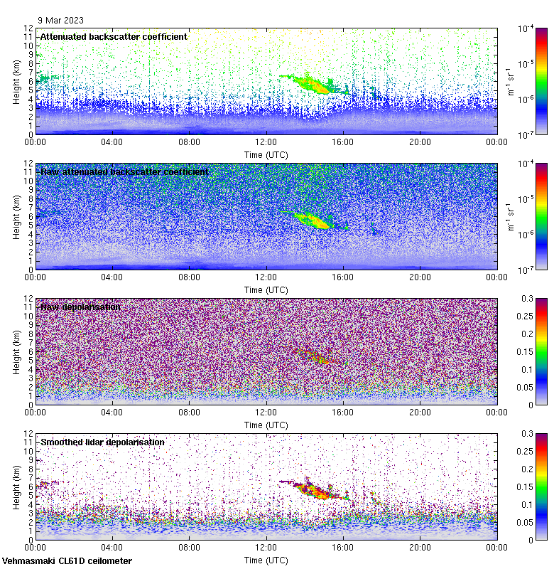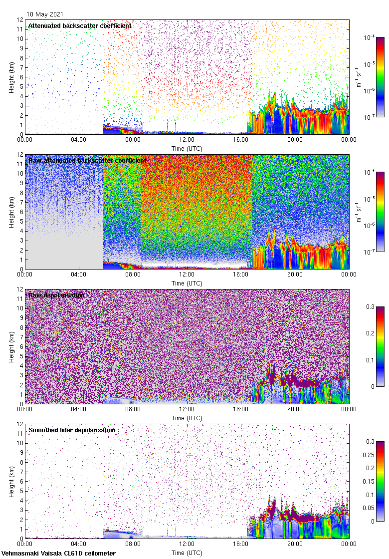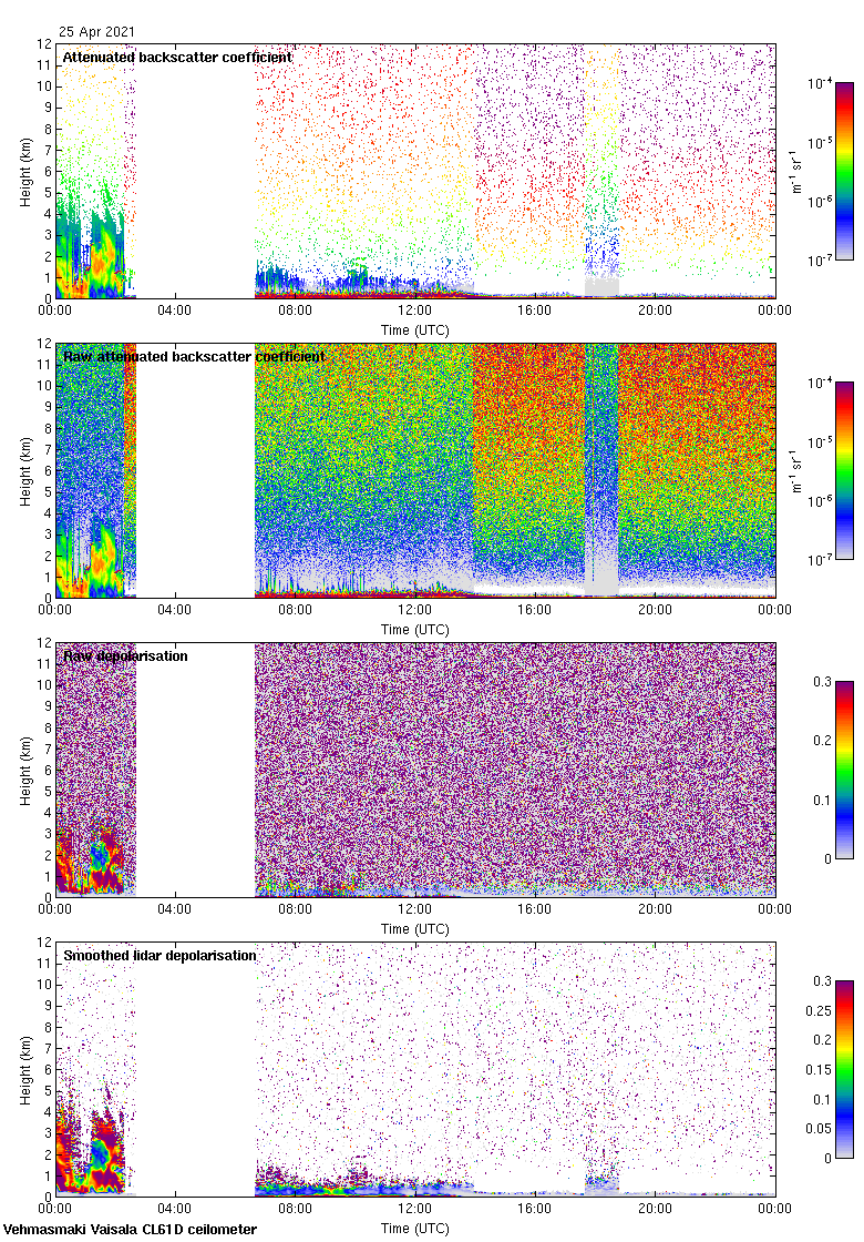 This page contains links to the daily Vehmasmaki Vaisala CL61D ceilometer images created at Kumpula.