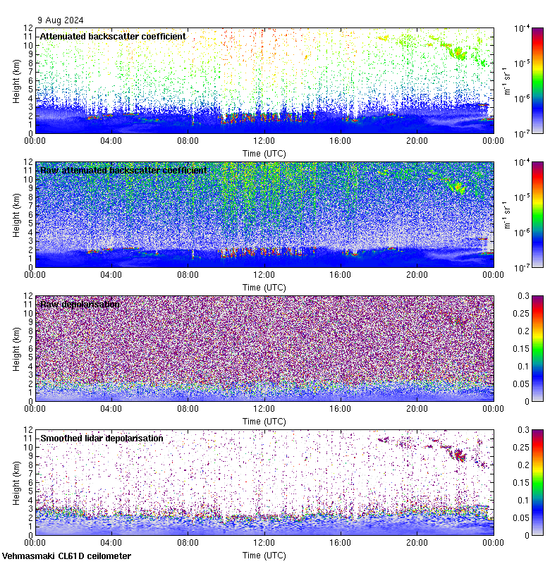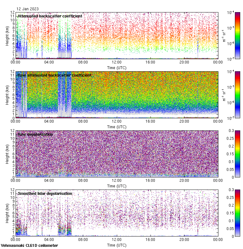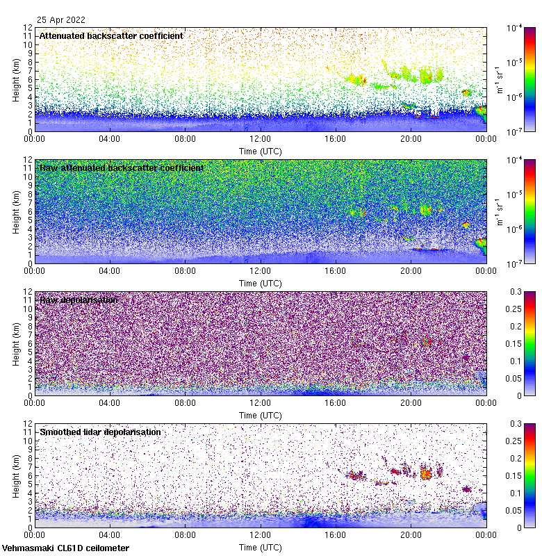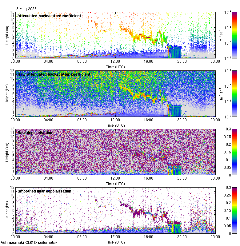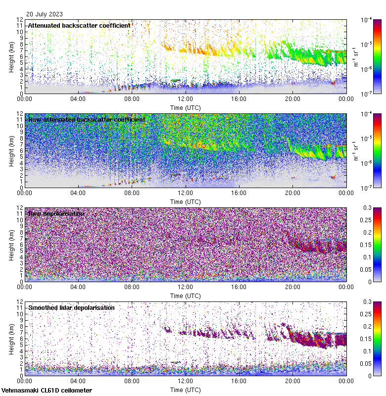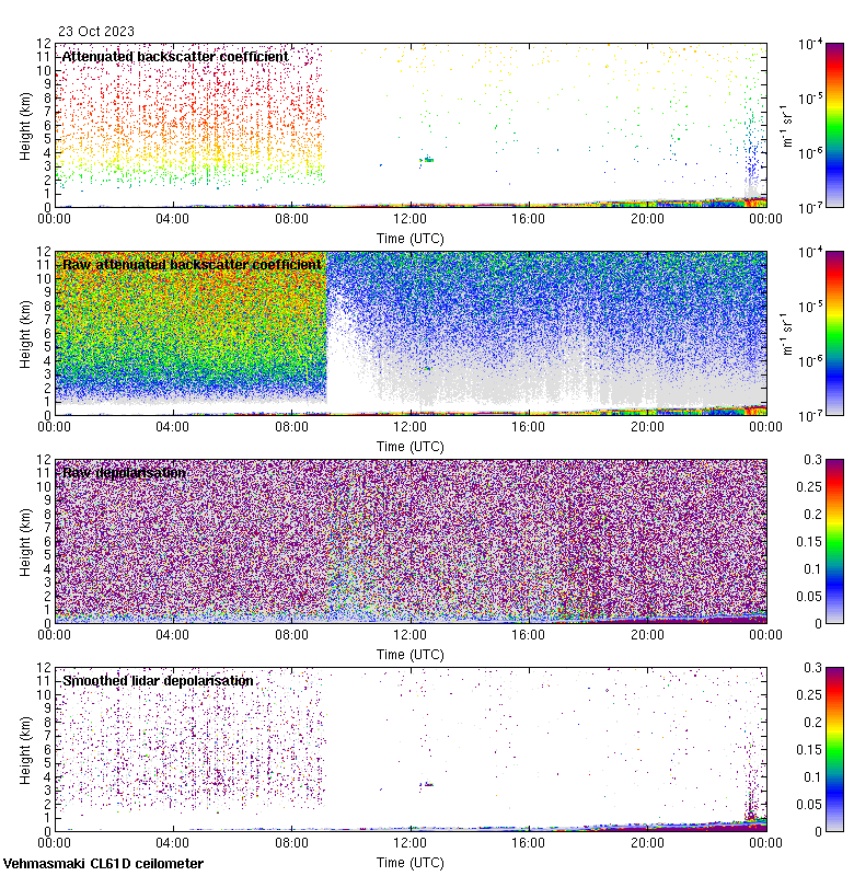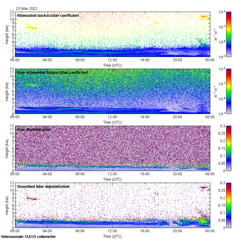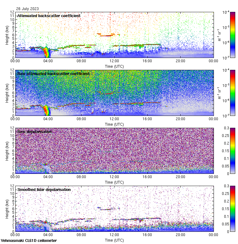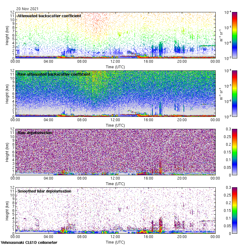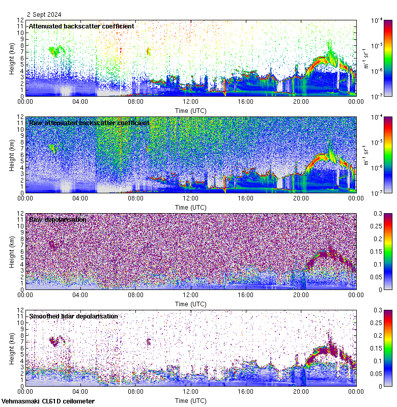 This page contains links to the daily Vehmasmaki Vaisala CL61D ceilometer images created at Kumpula.