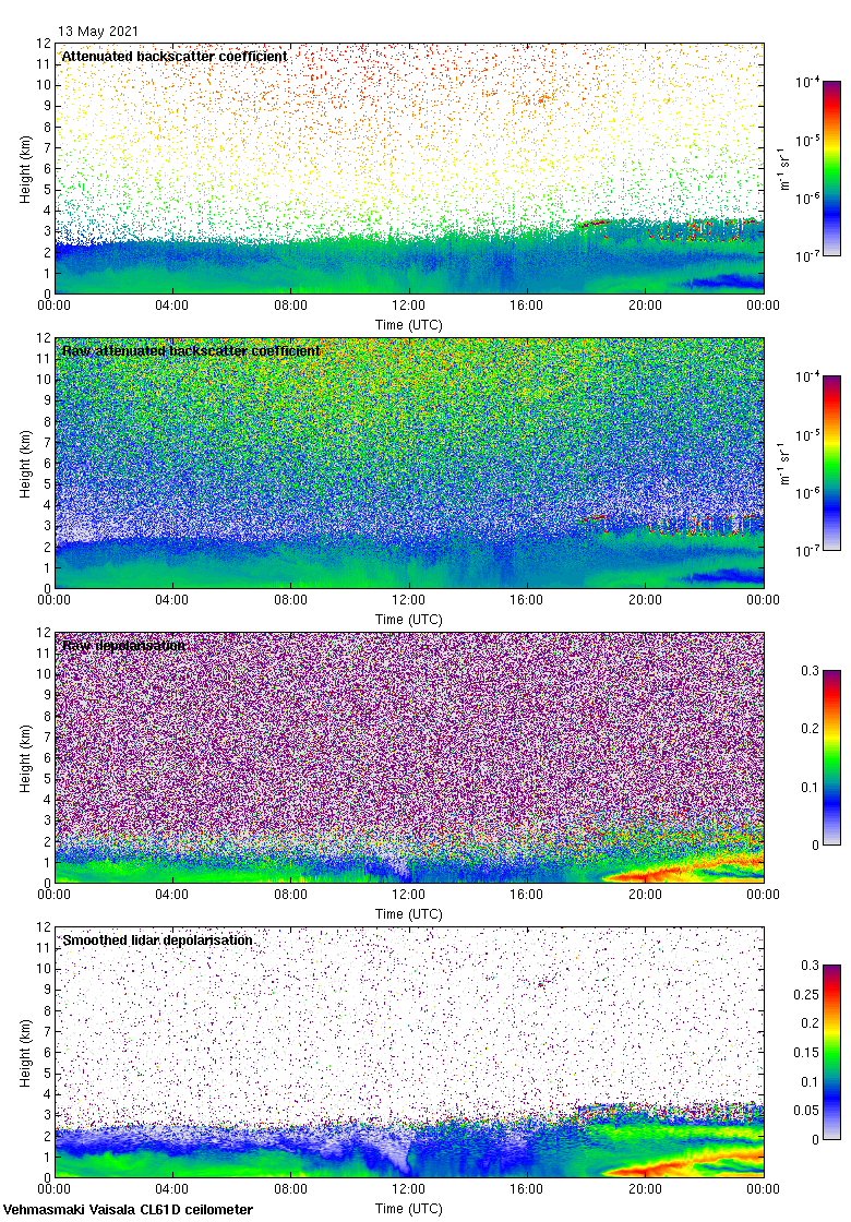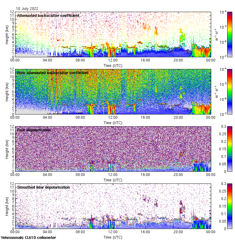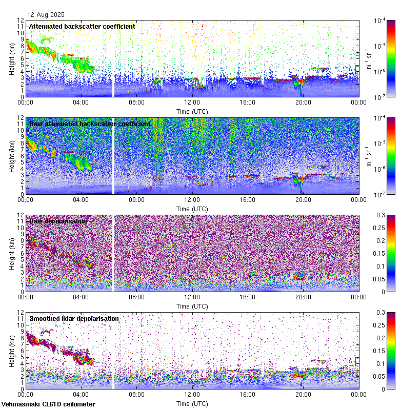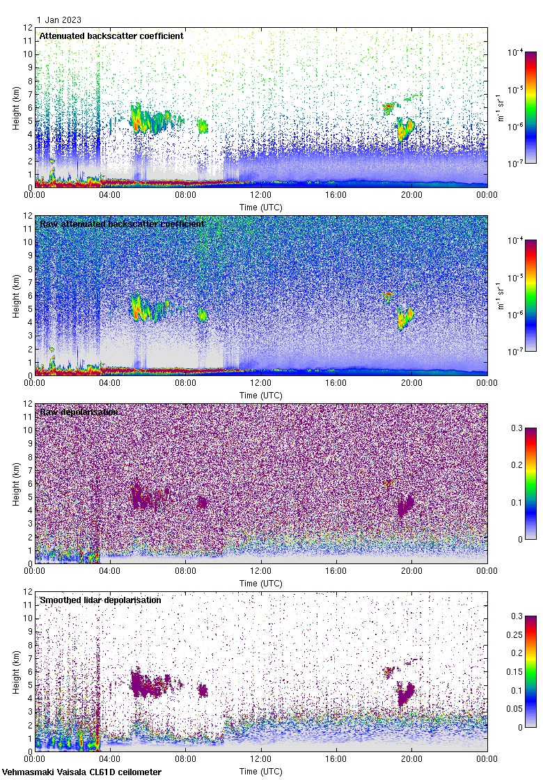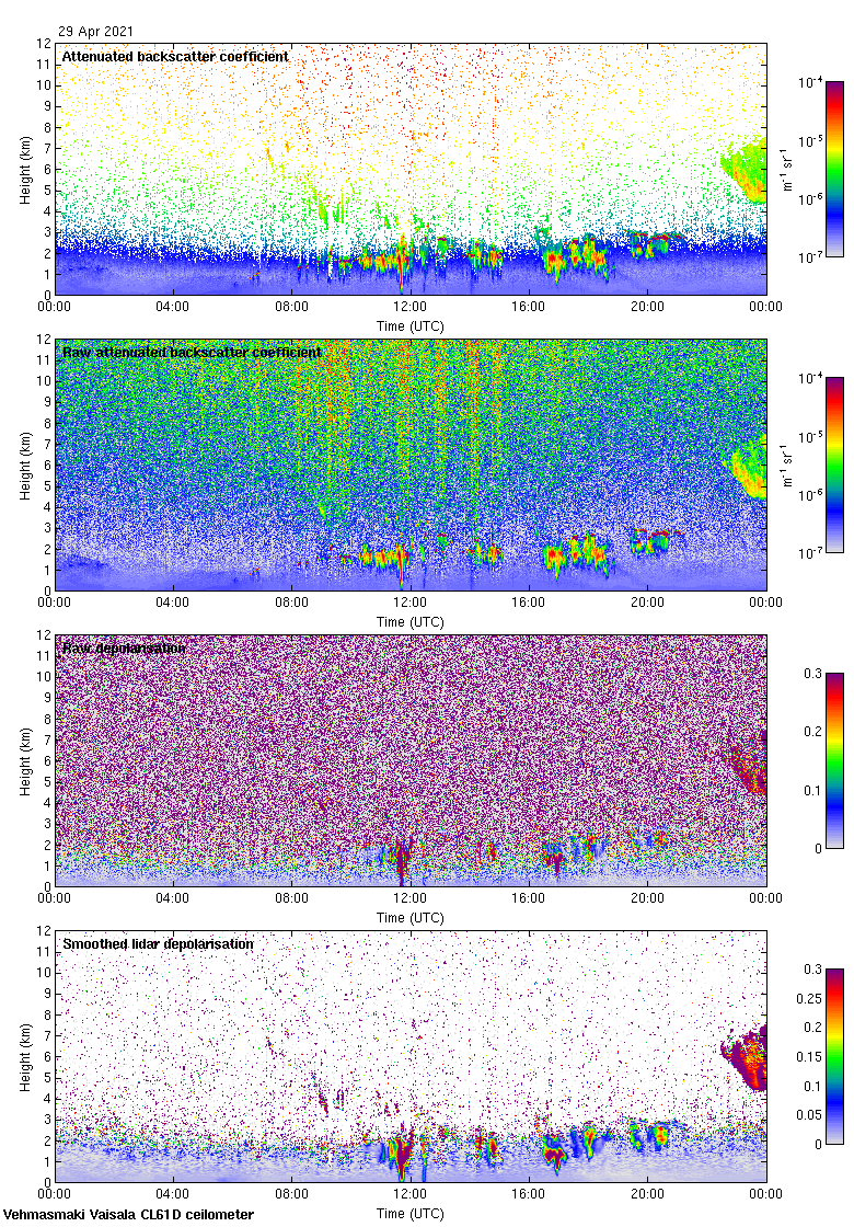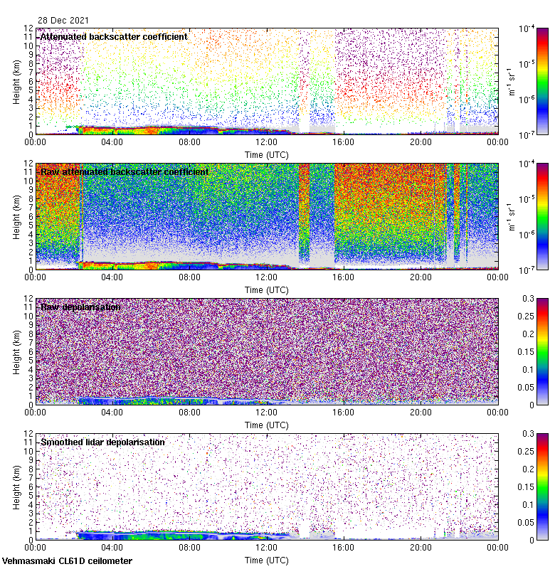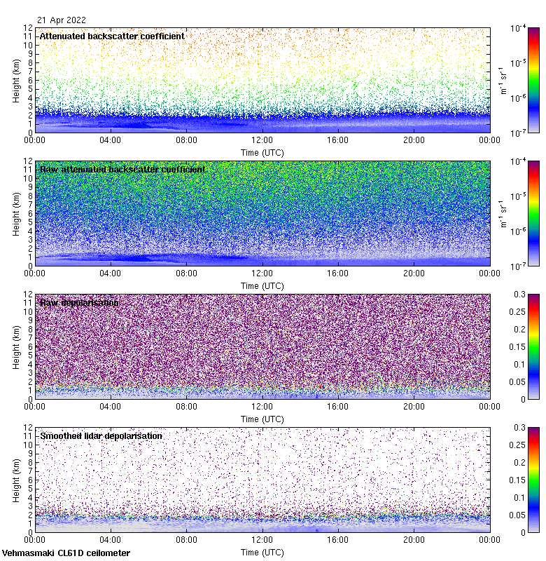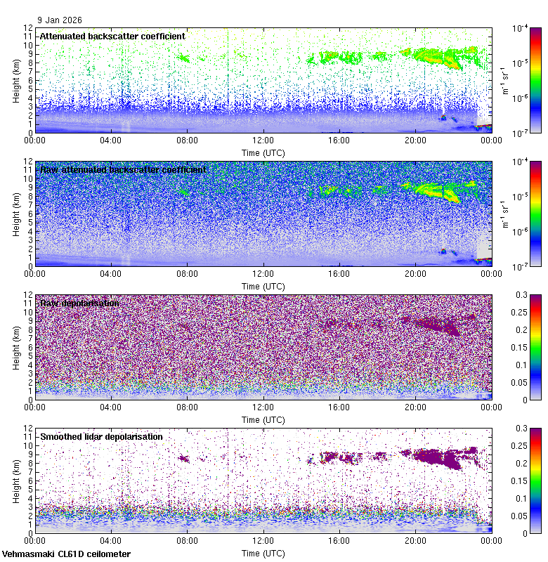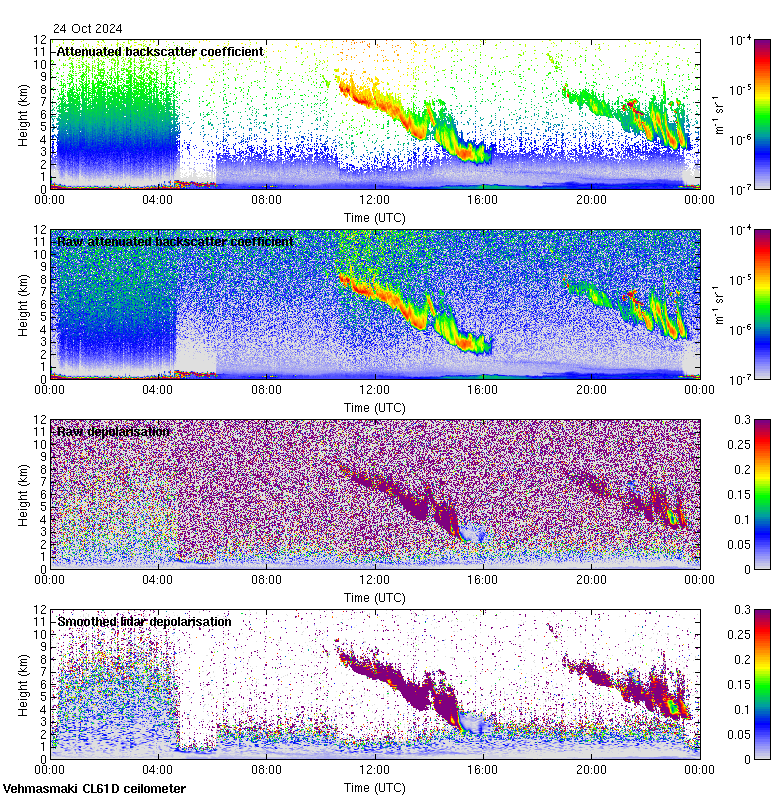 This page contains links to the daily Vehmasmaki Vaisala CL61D ceilometer images created at Kumpula.
