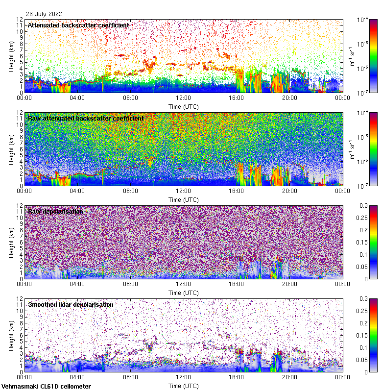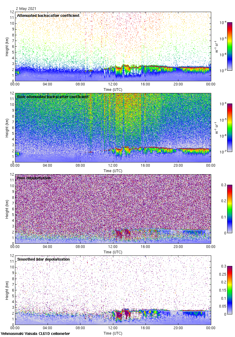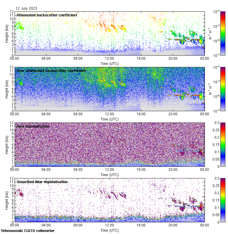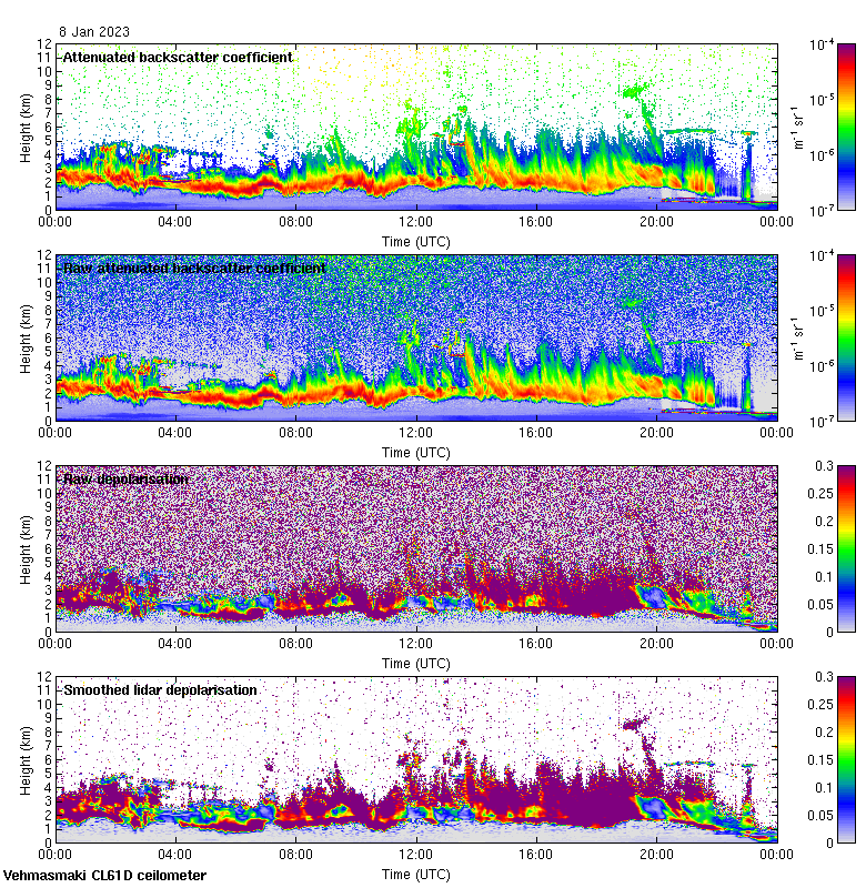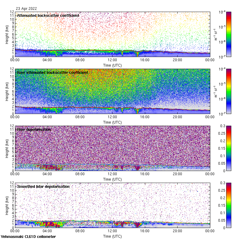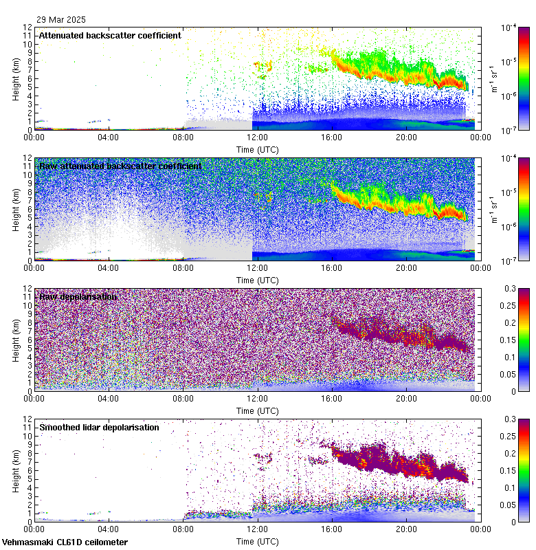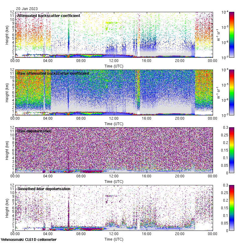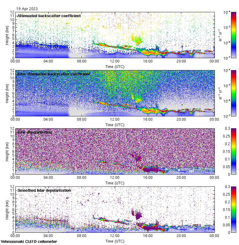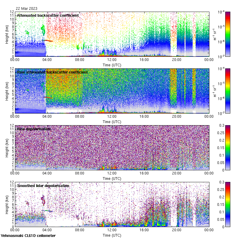 This page contains links to the daily Vehmasmaki Vaisala CL61D ceilometer images created at Kumpula.