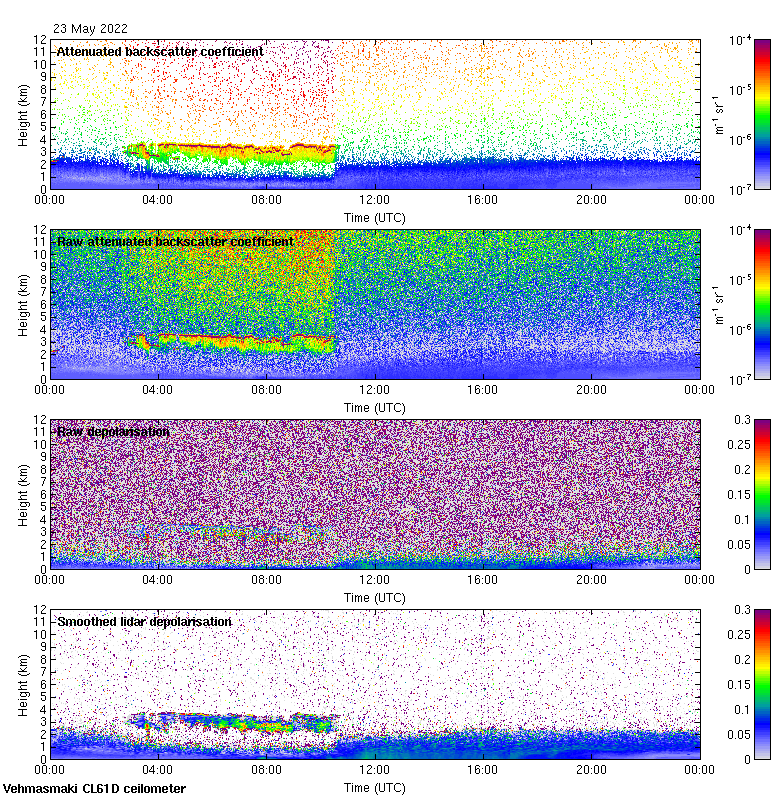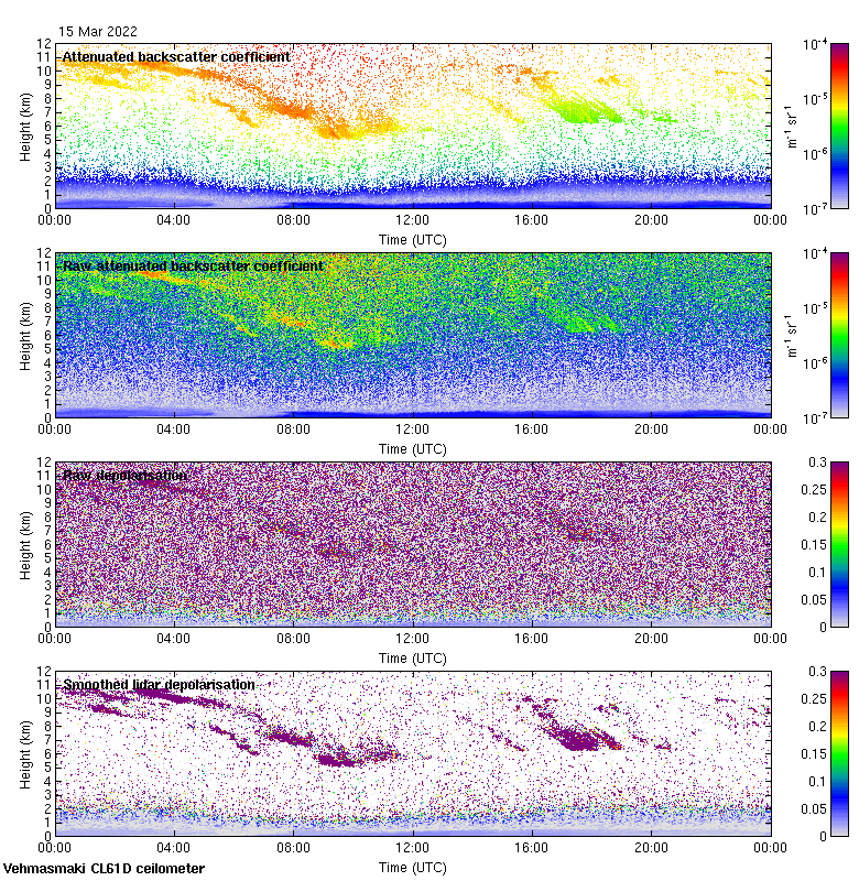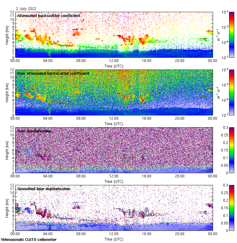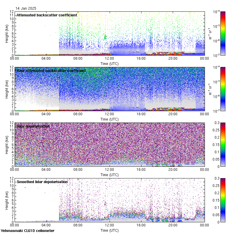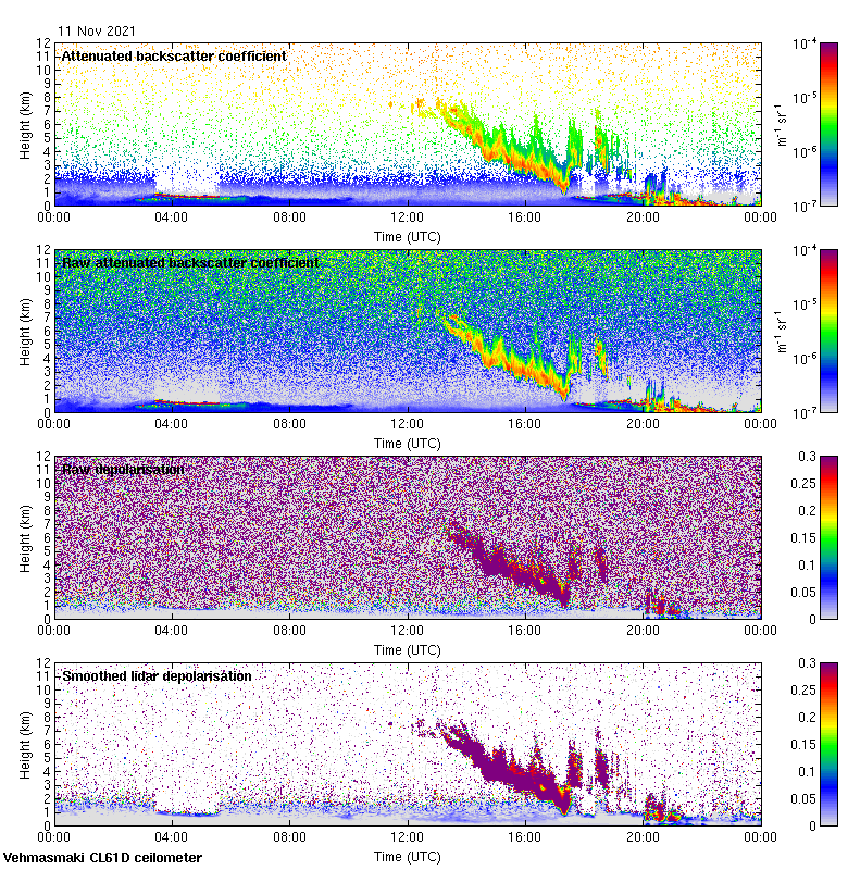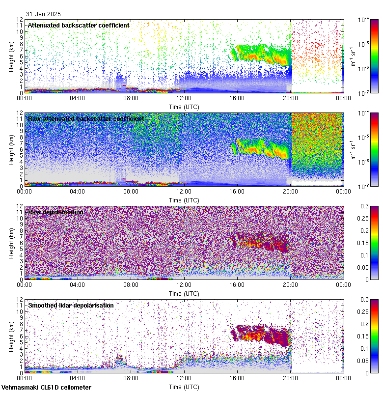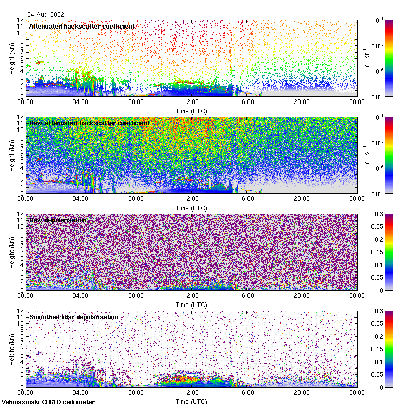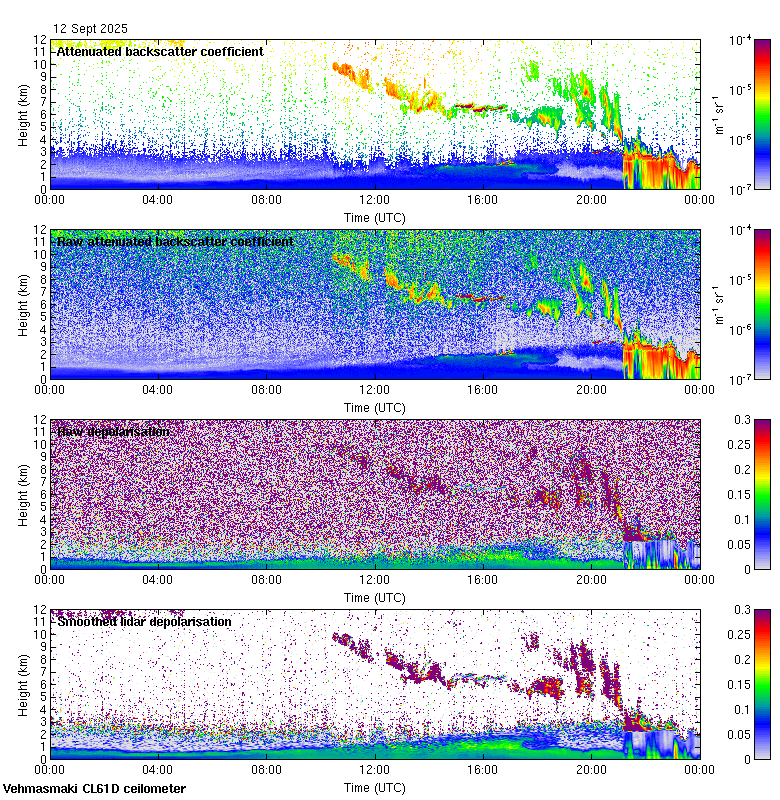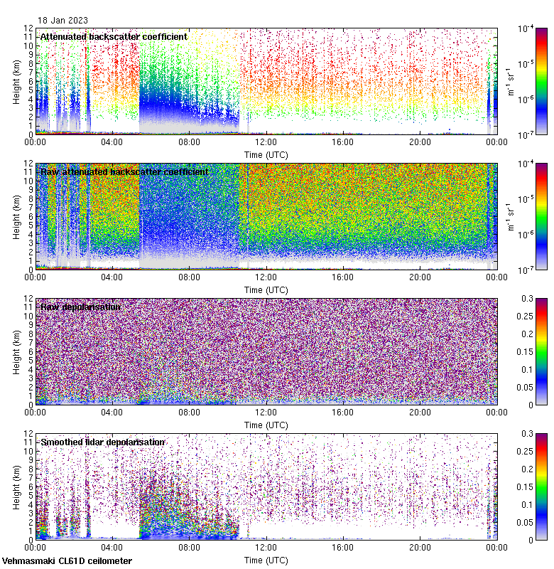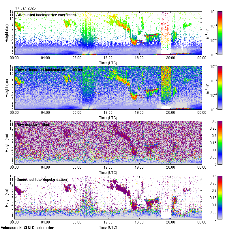 This page contains links to the daily Vehmasmaki Vaisala CL61D ceilometer images created at Kumpula.