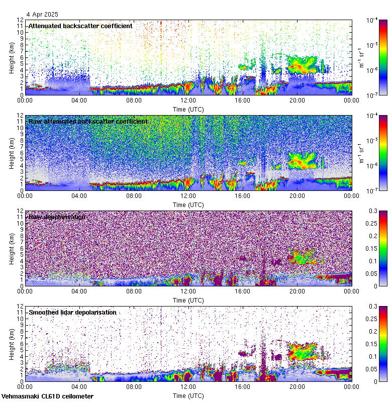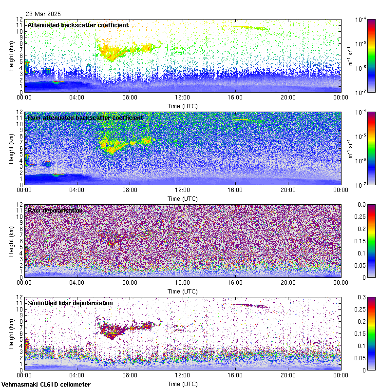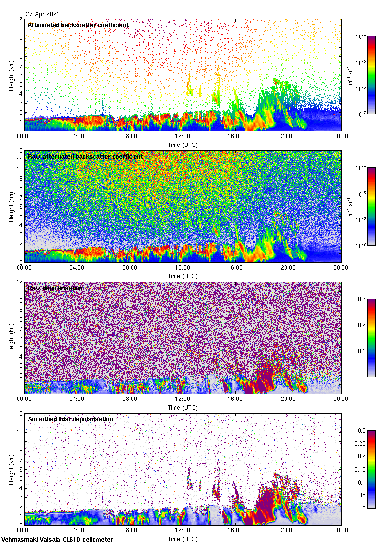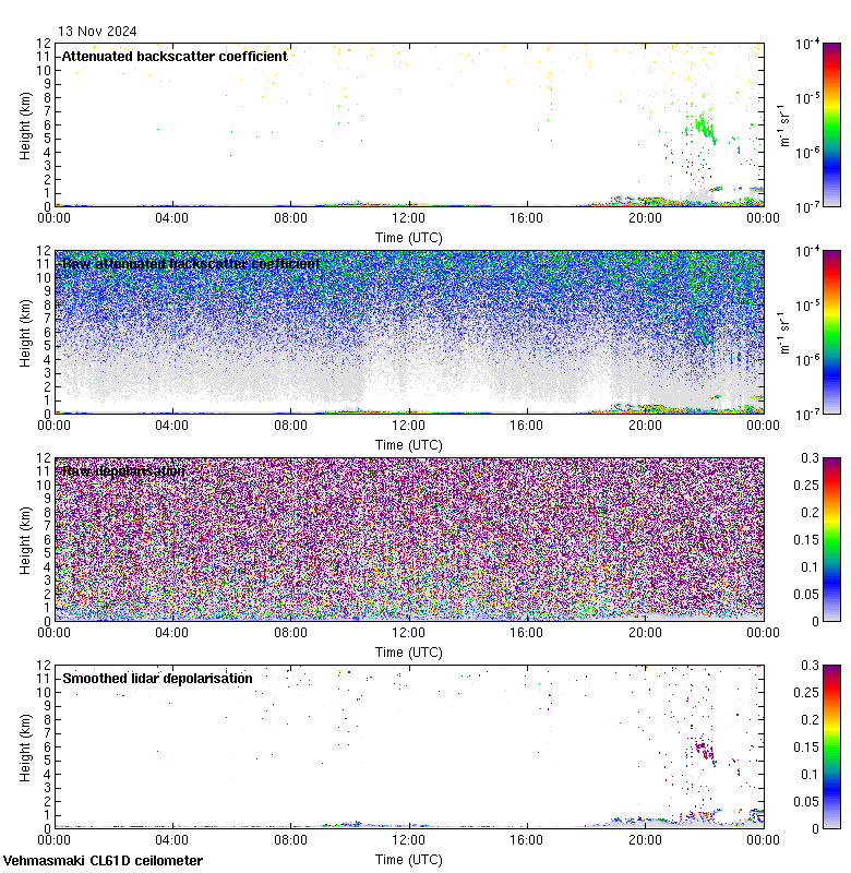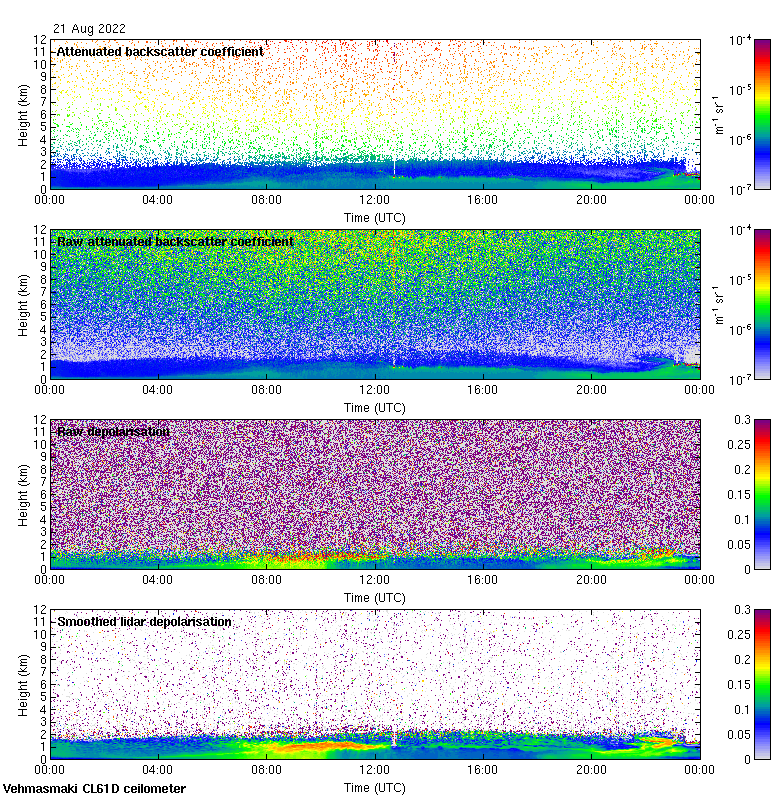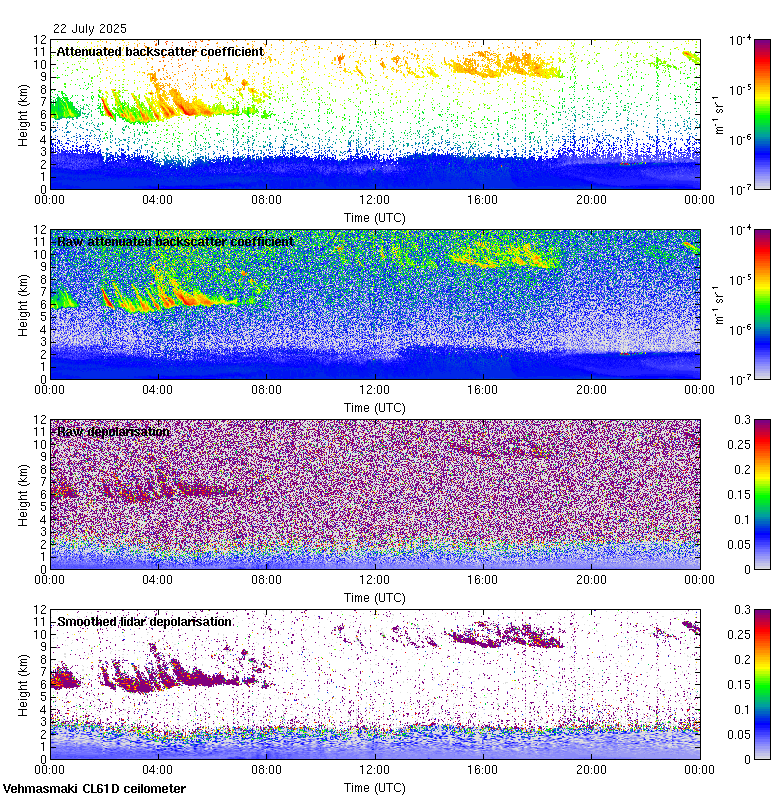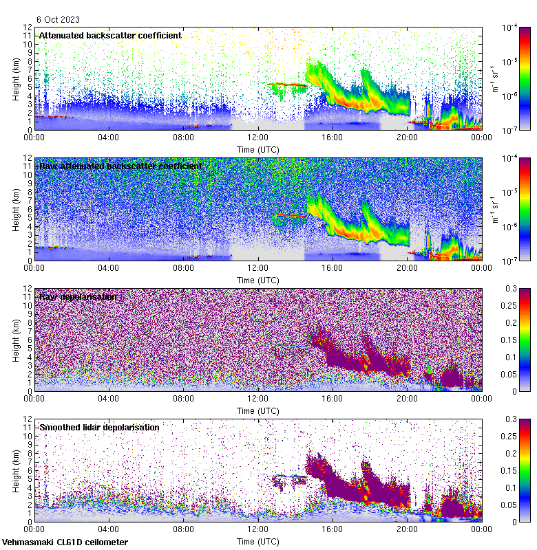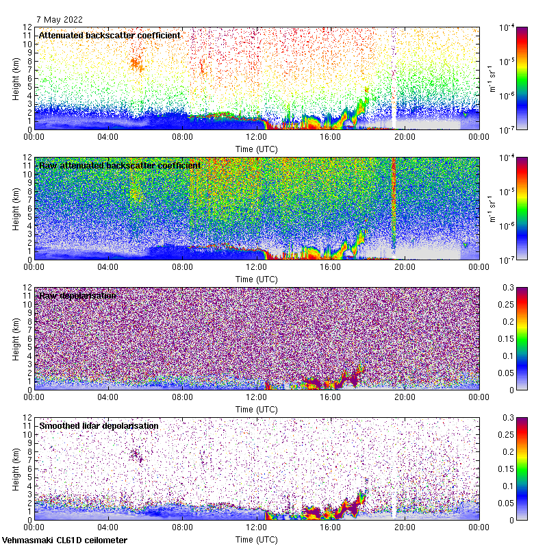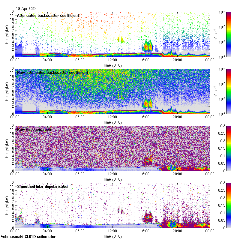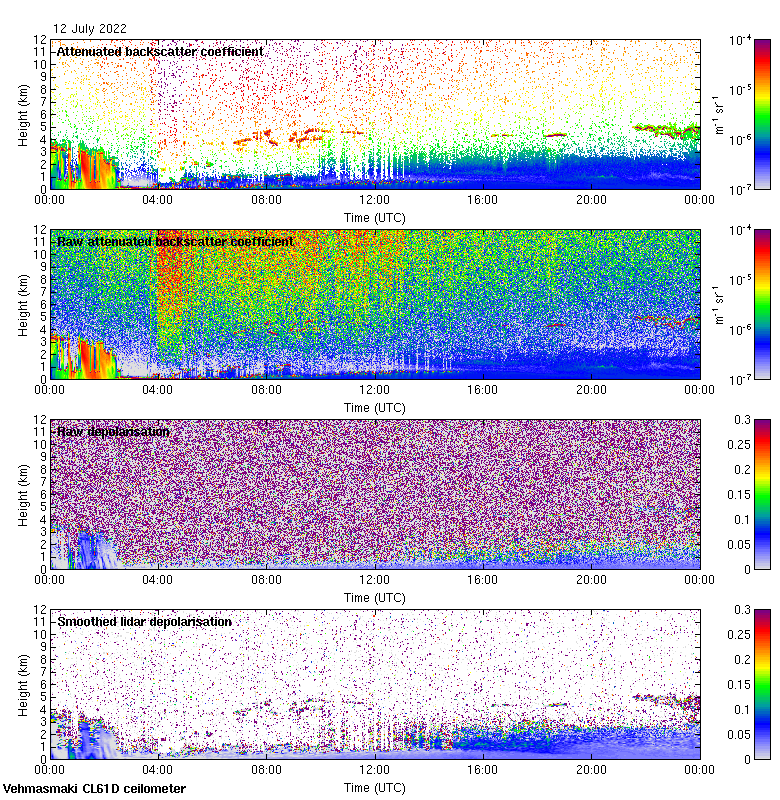 This page contains links to the daily Vehmasmaki Vaisala CL61D ceilometer images created at Kumpula.