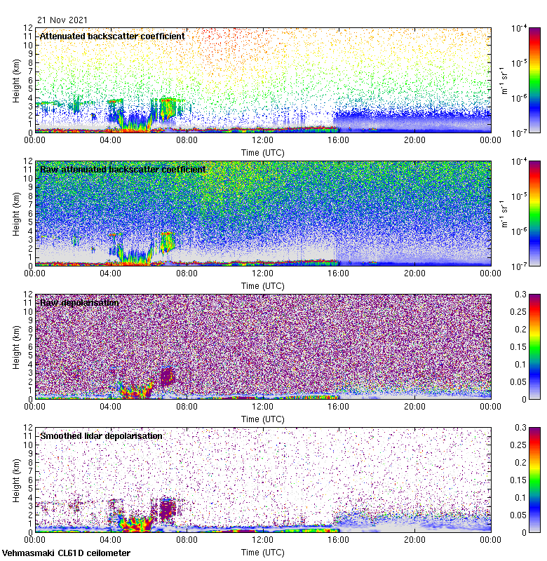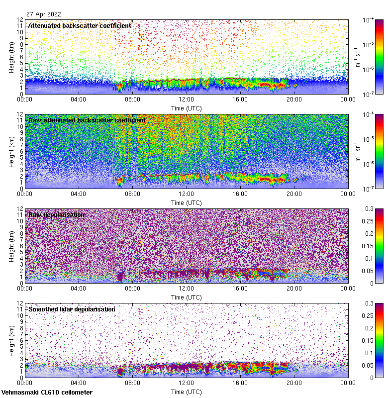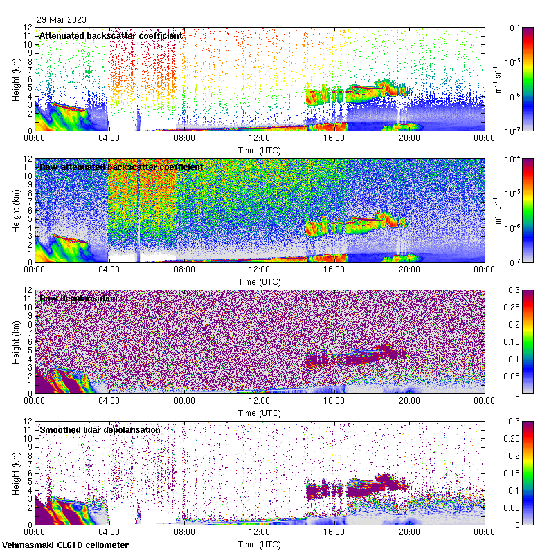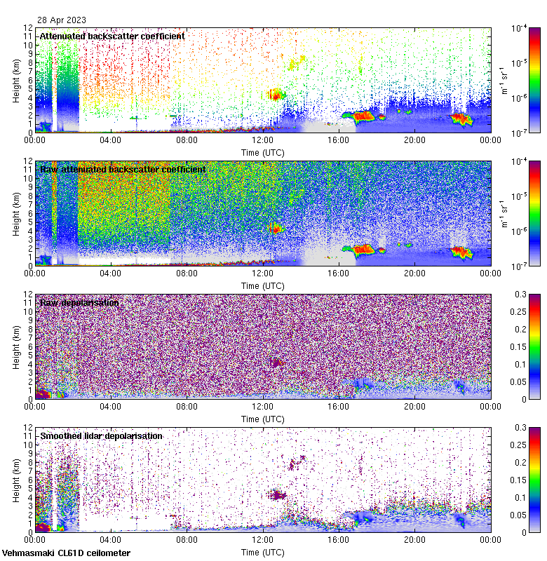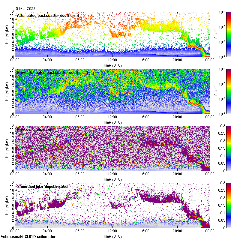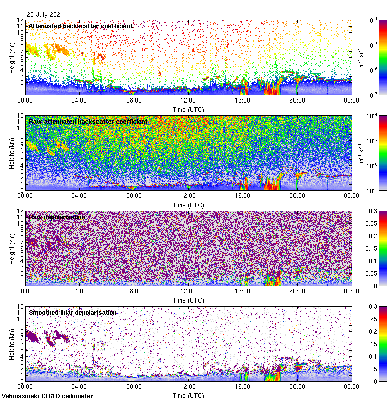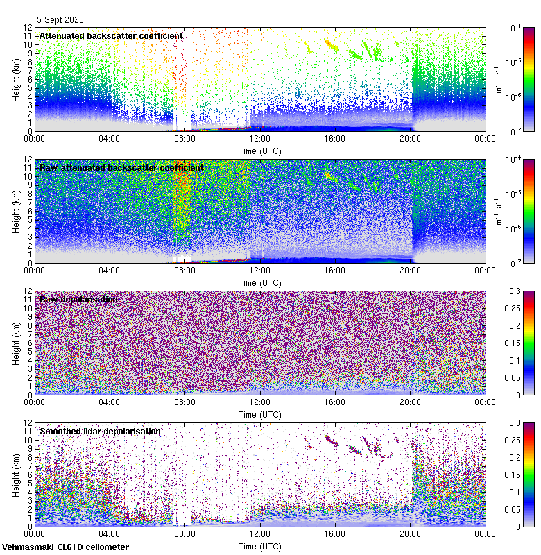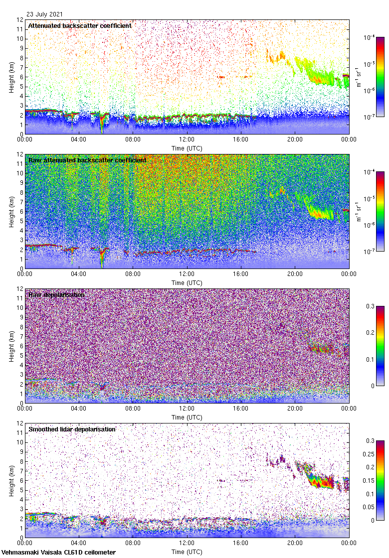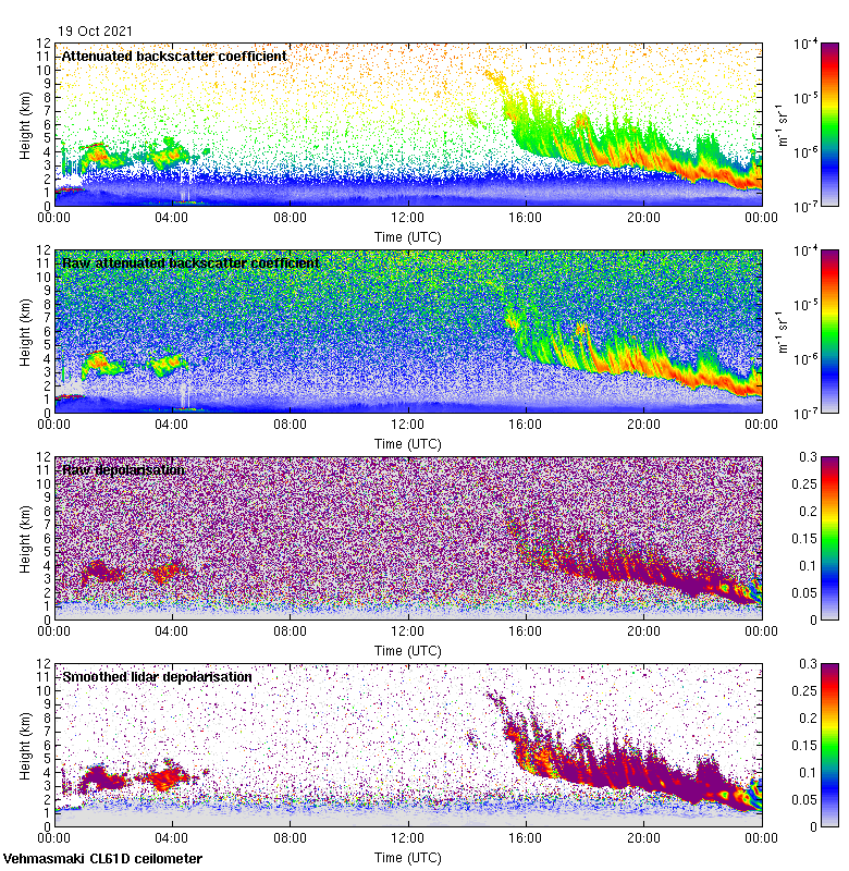 This page contains links to the daily Vehmasmaki Vaisala CL61D ceilometer images created at Kumpula.