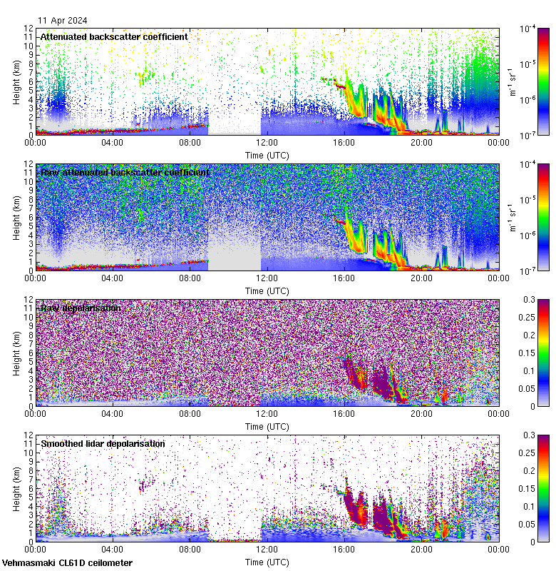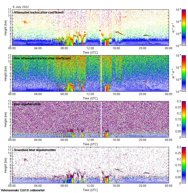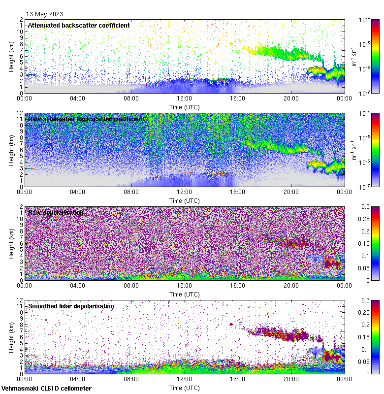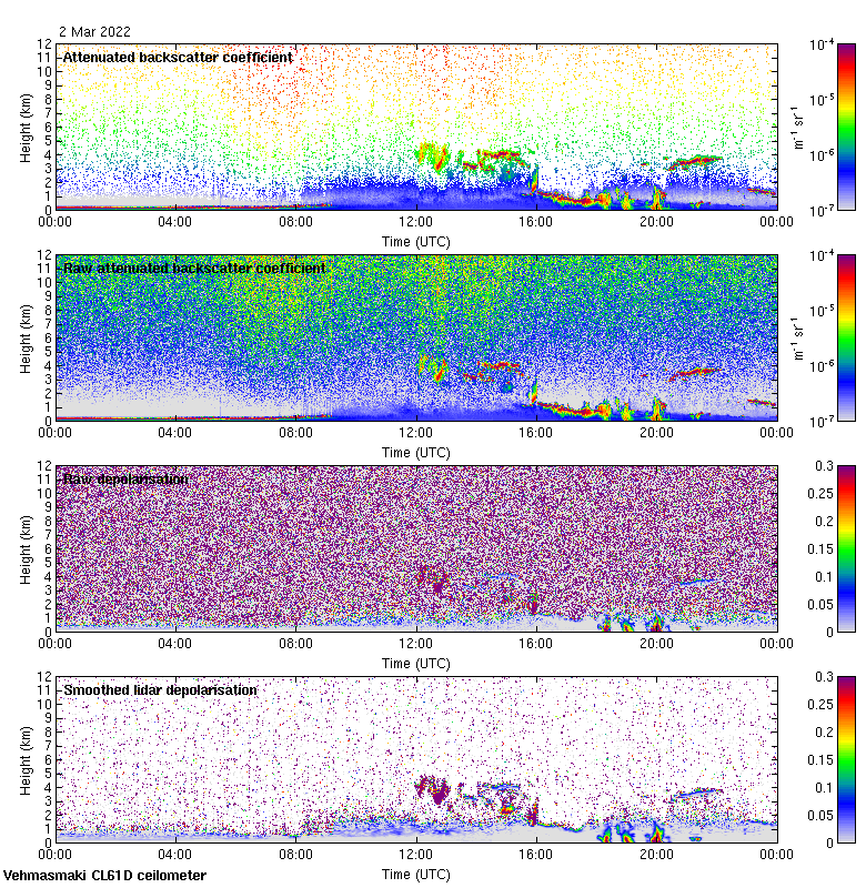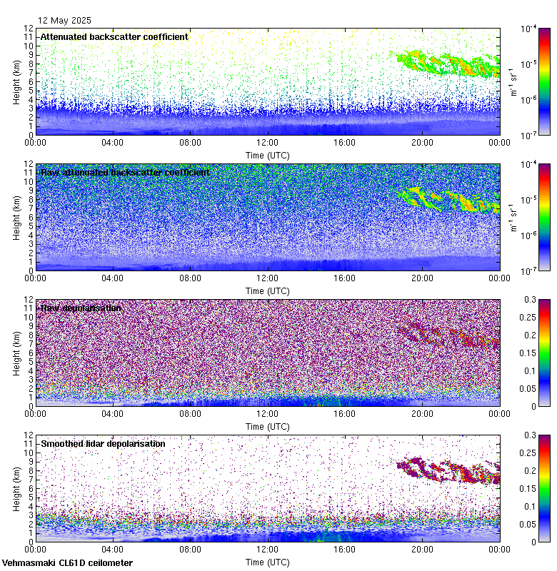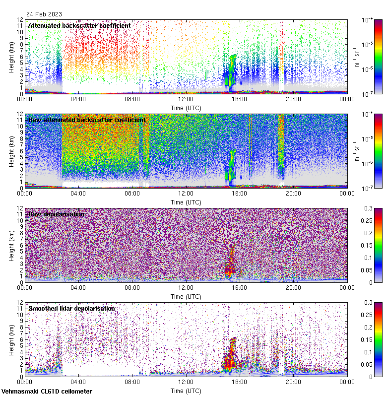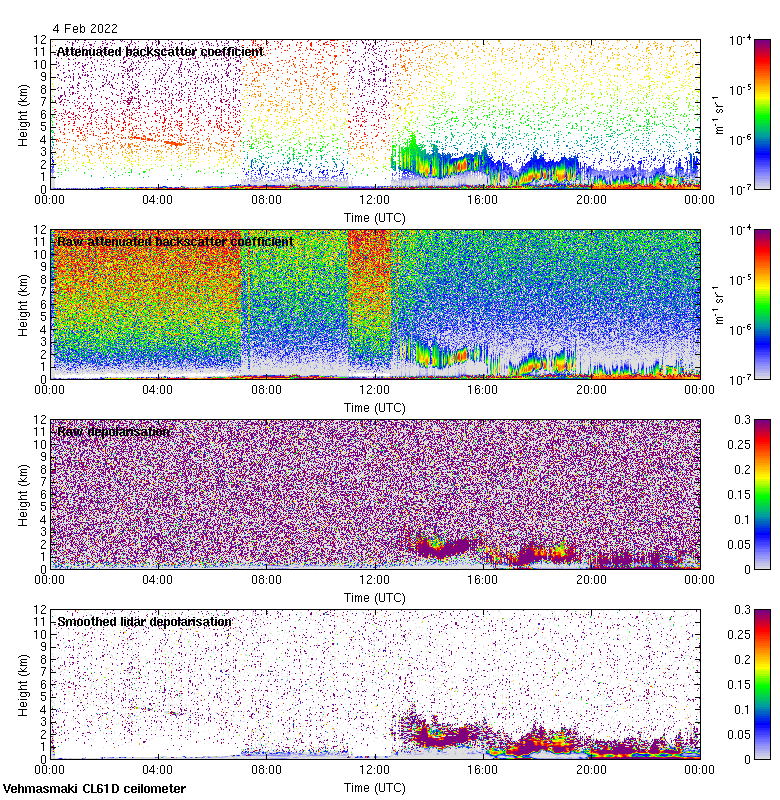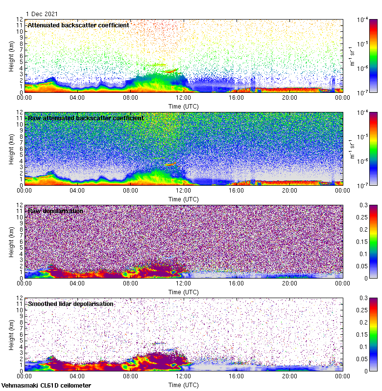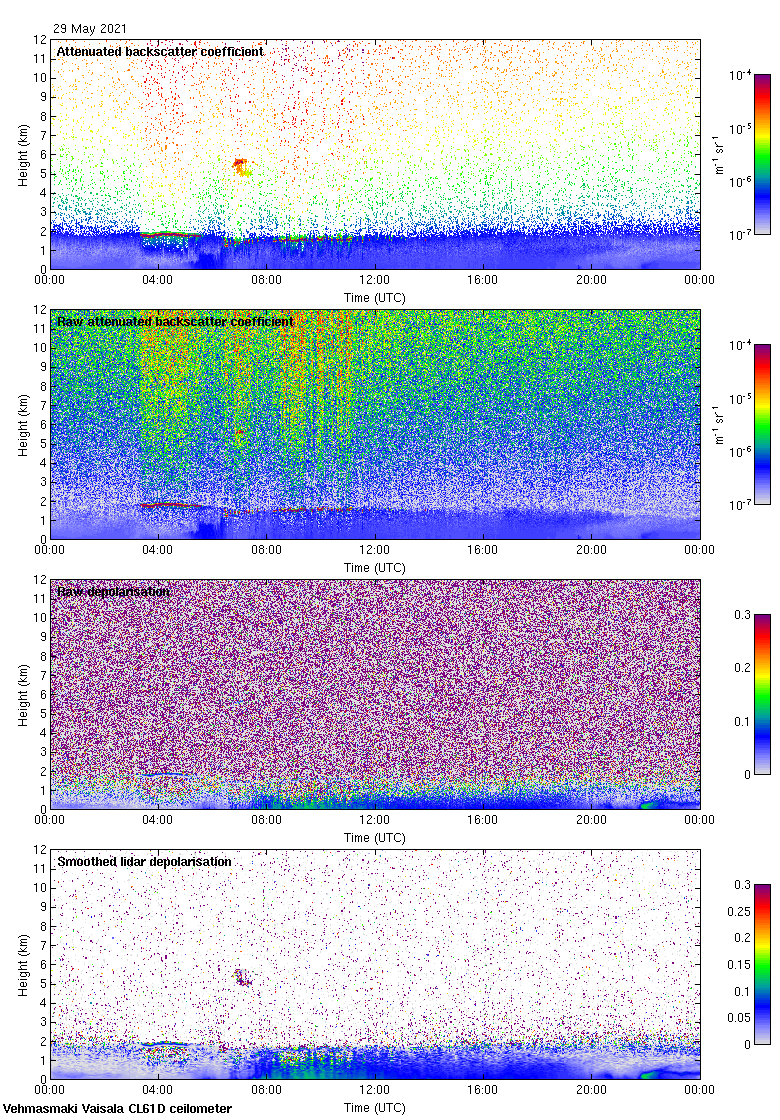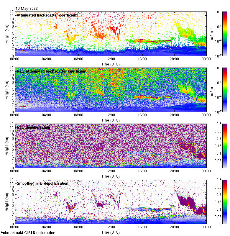 This page contains links to the daily Vehmasmaki Vaisala CL61D ceilometer images created at Kumpula.