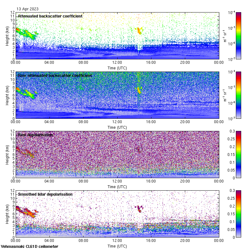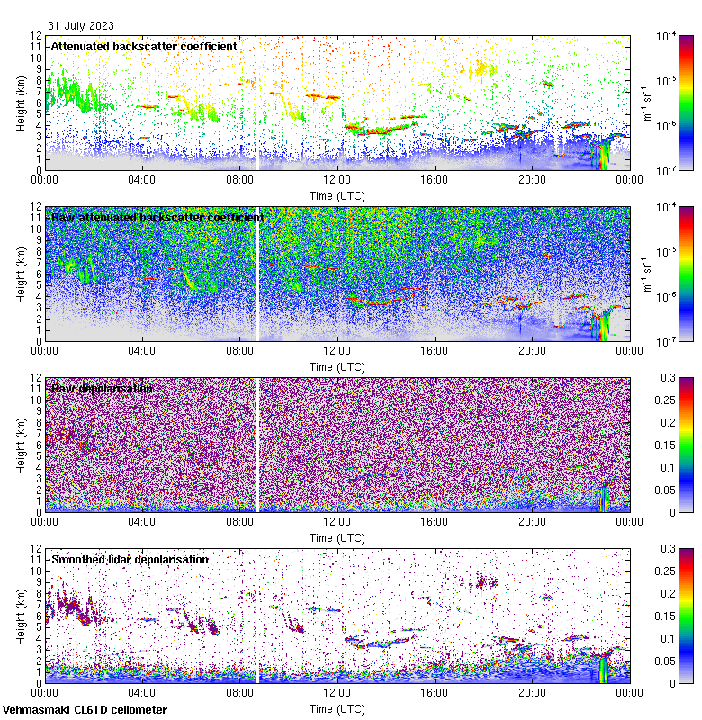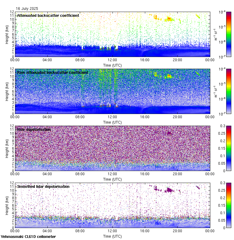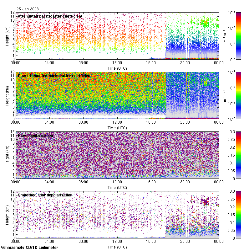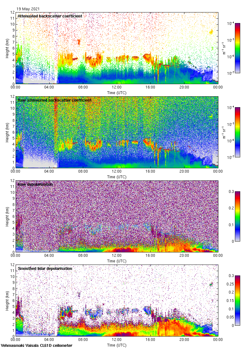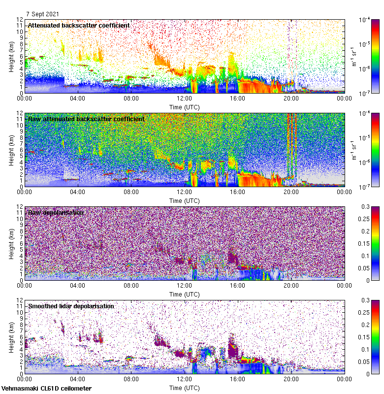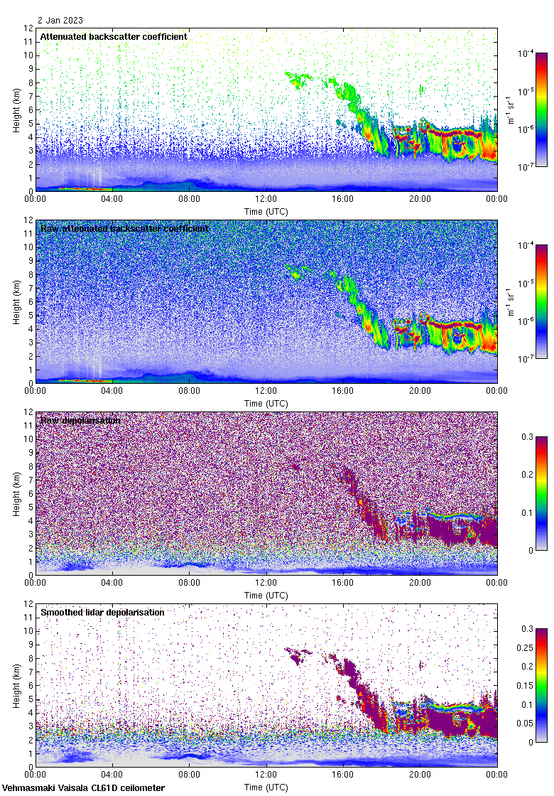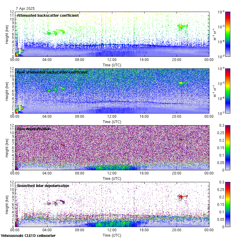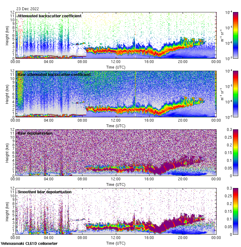 This page contains links to the daily Vehmasmaki Vaisala CL61D ceilometer images created at Kumpula.