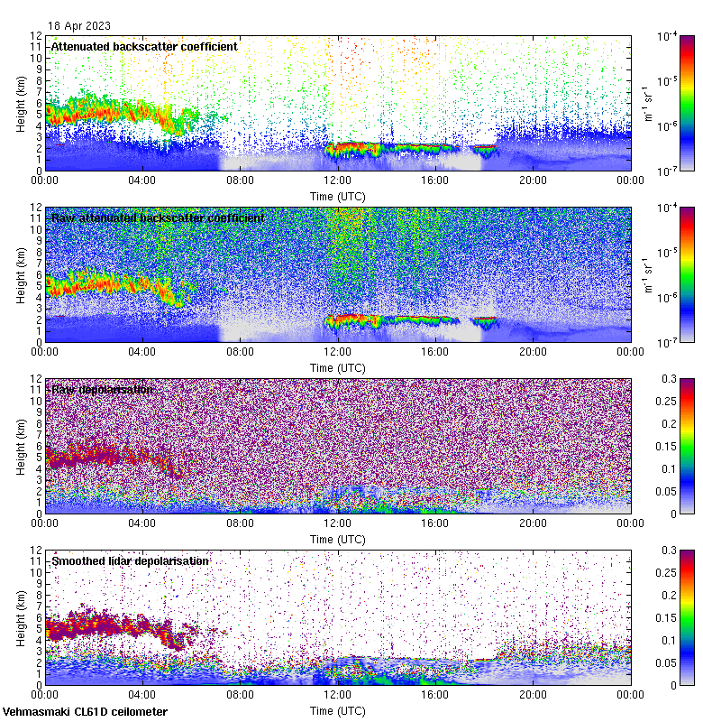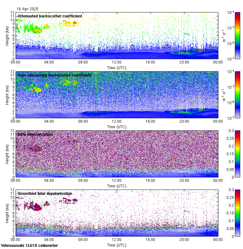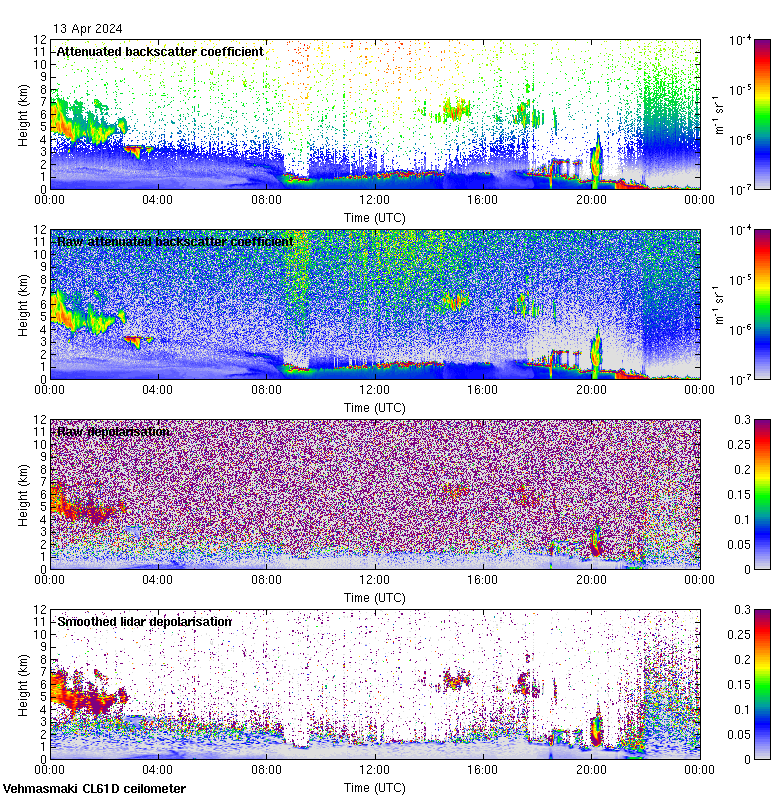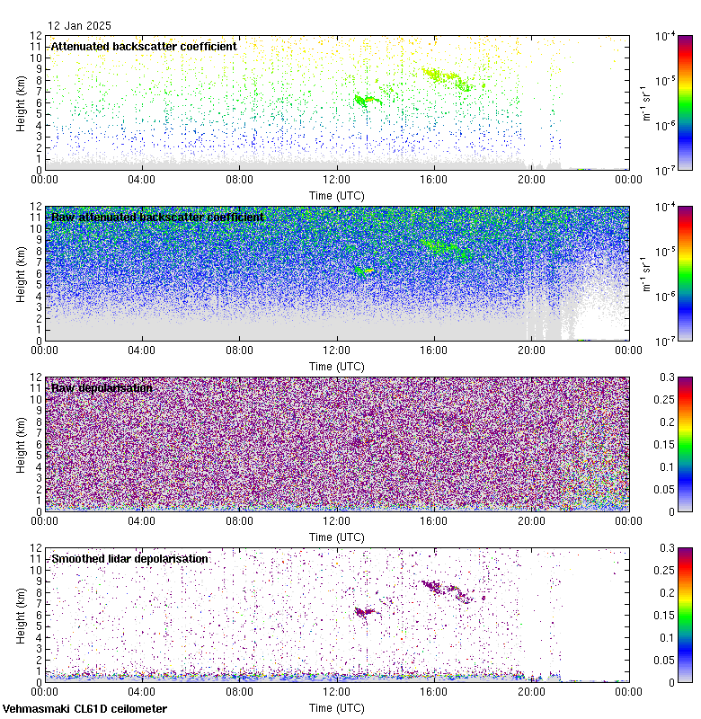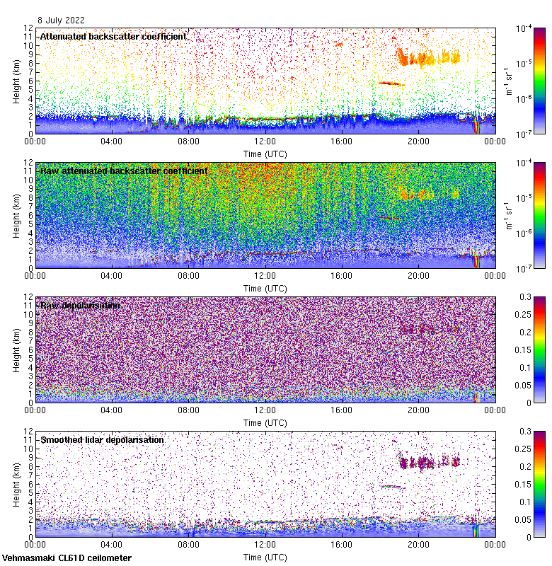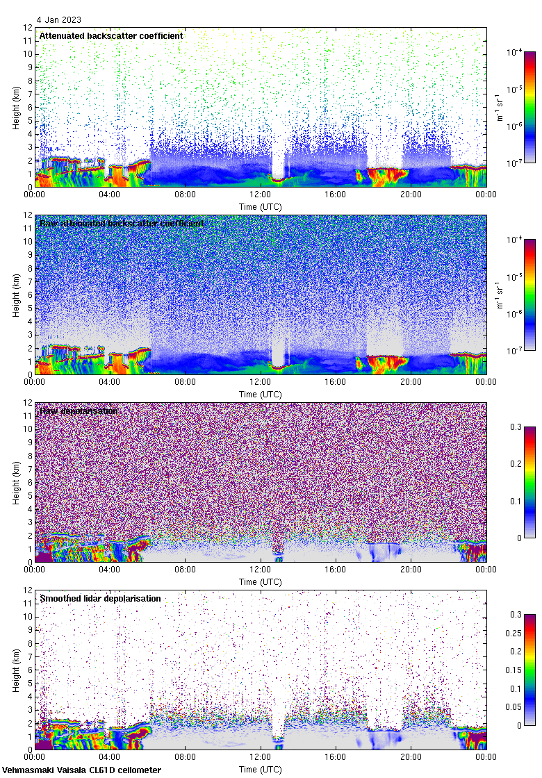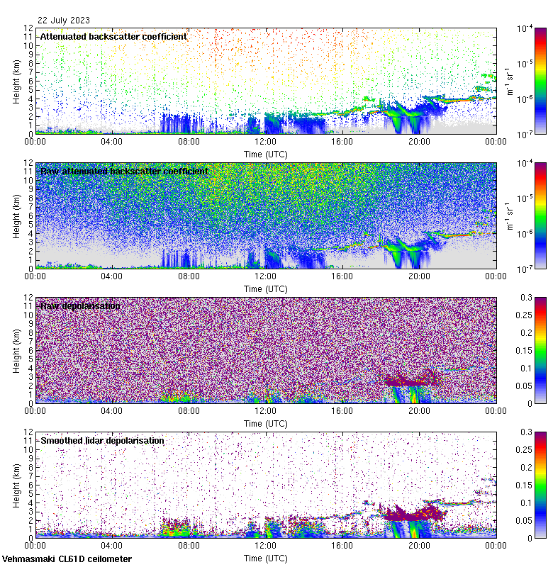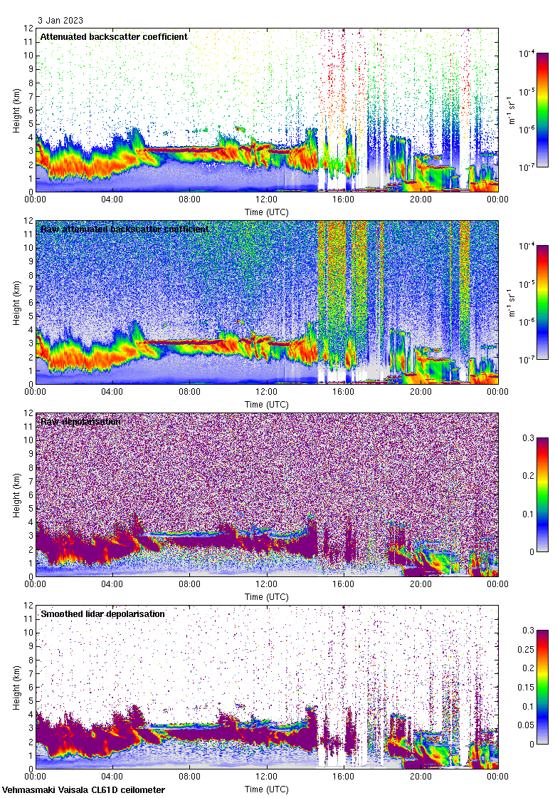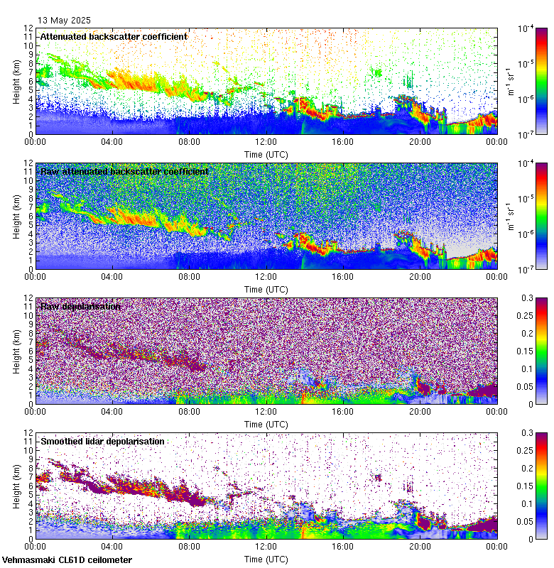 This page contains links to the daily Vehmasmaki Vaisala CL61D ceilometer images created at Kumpula.