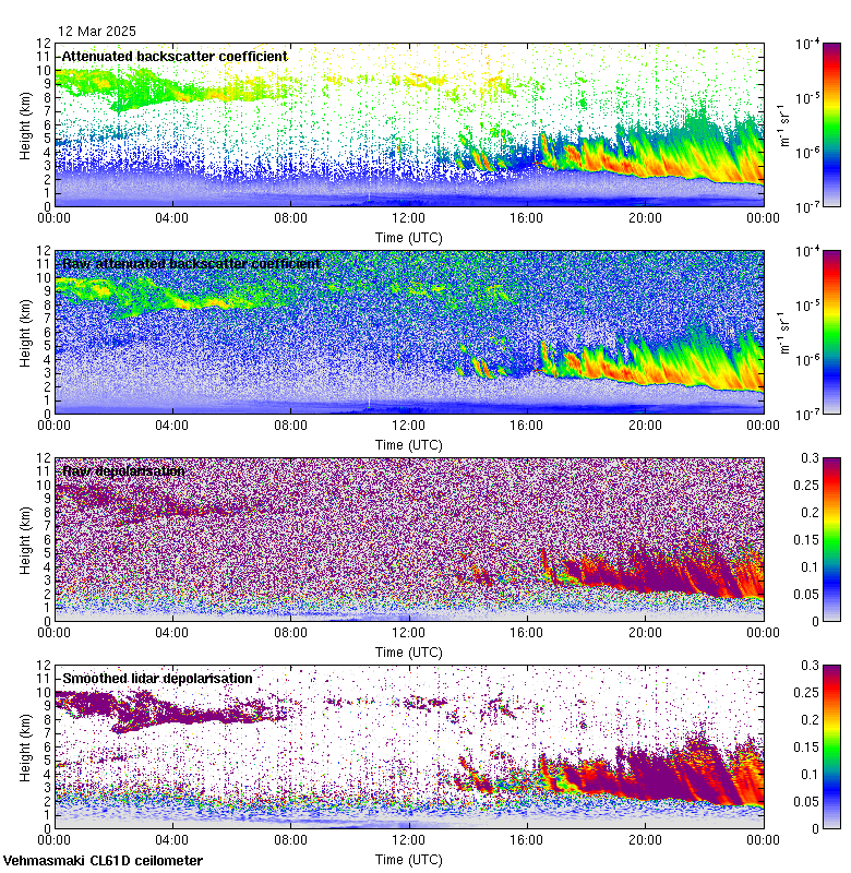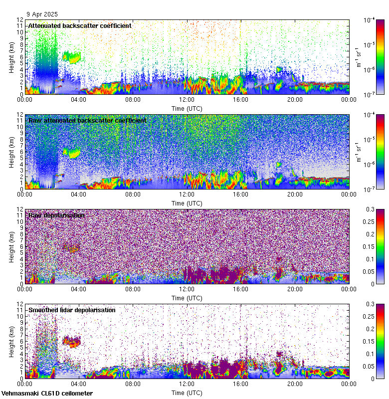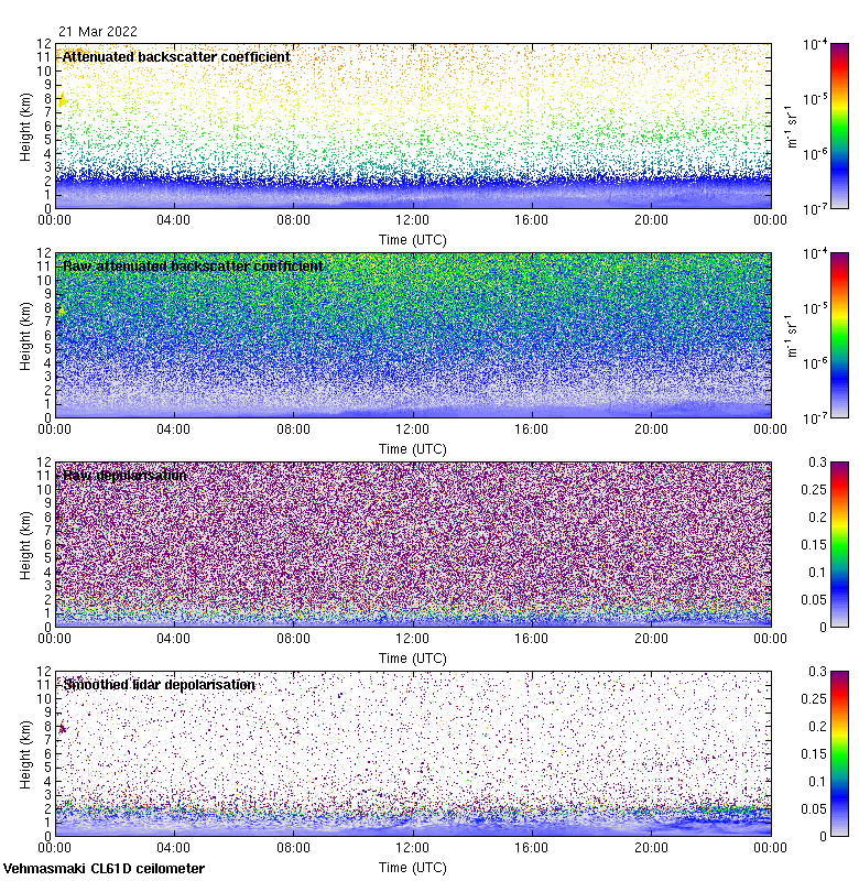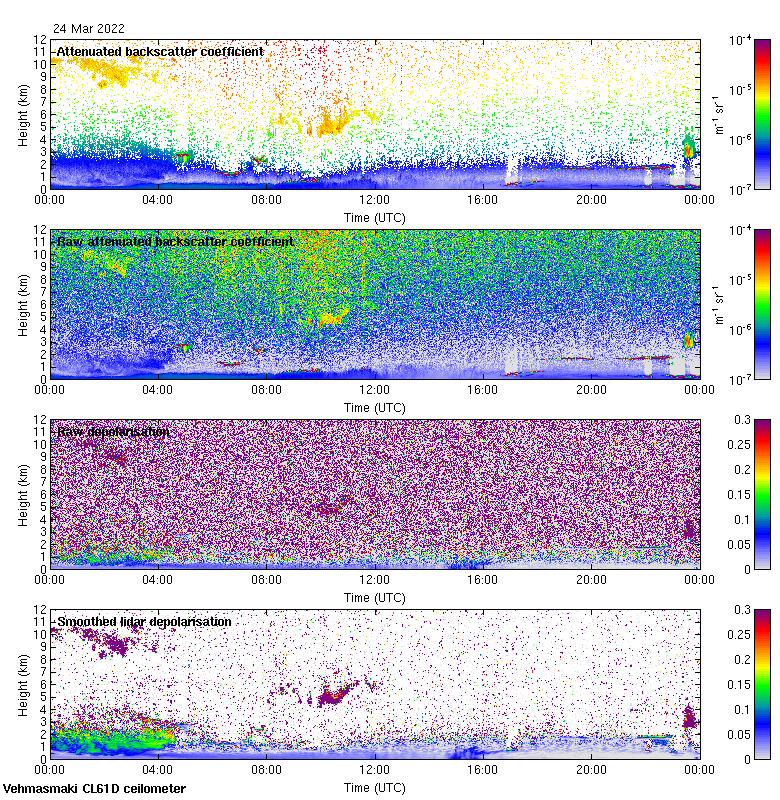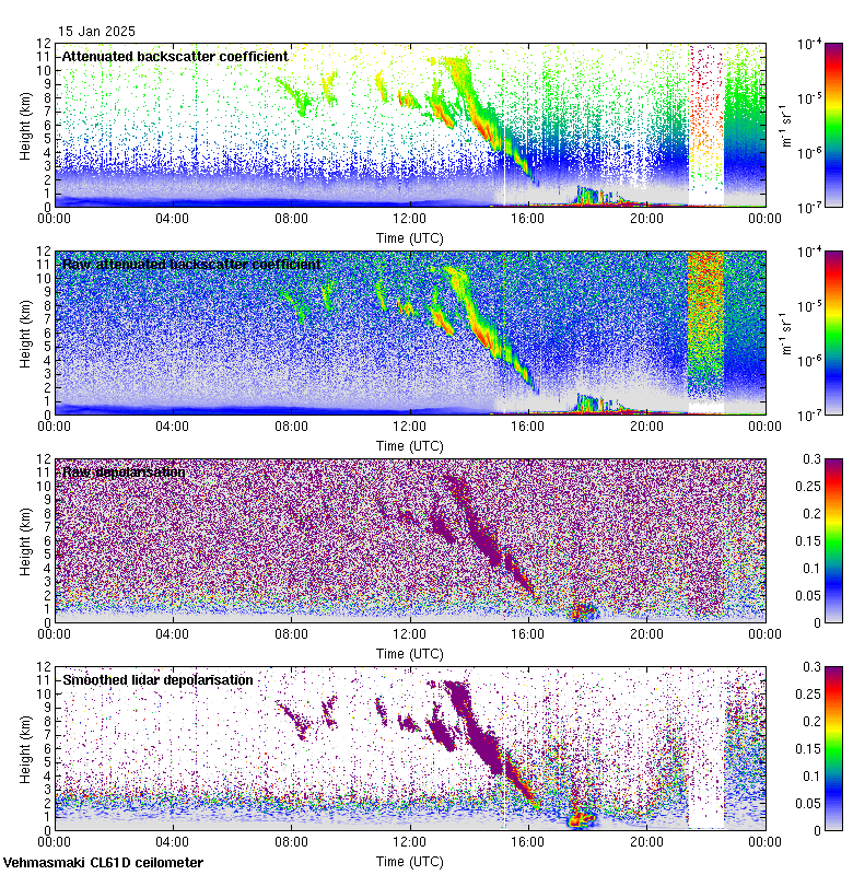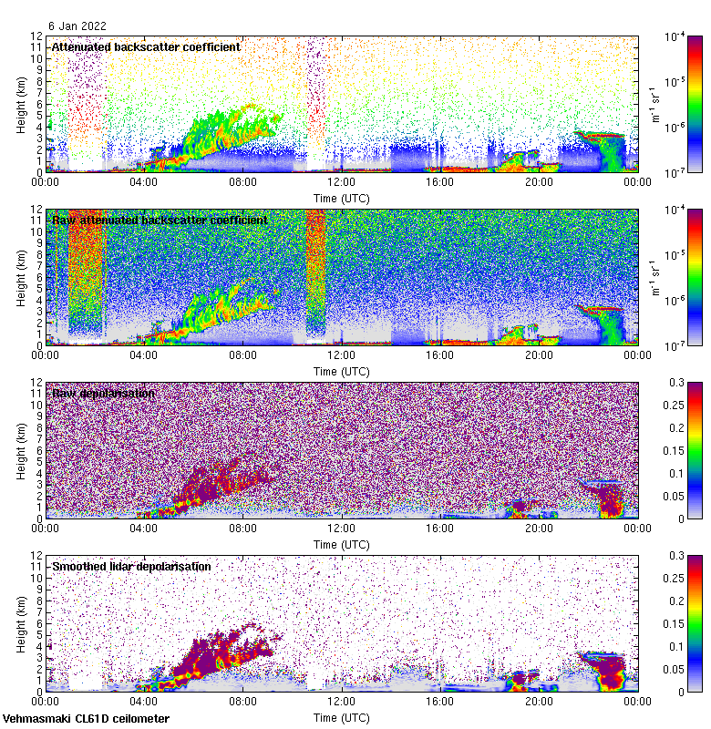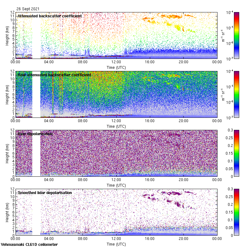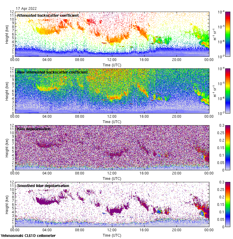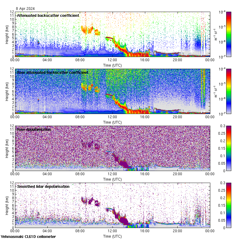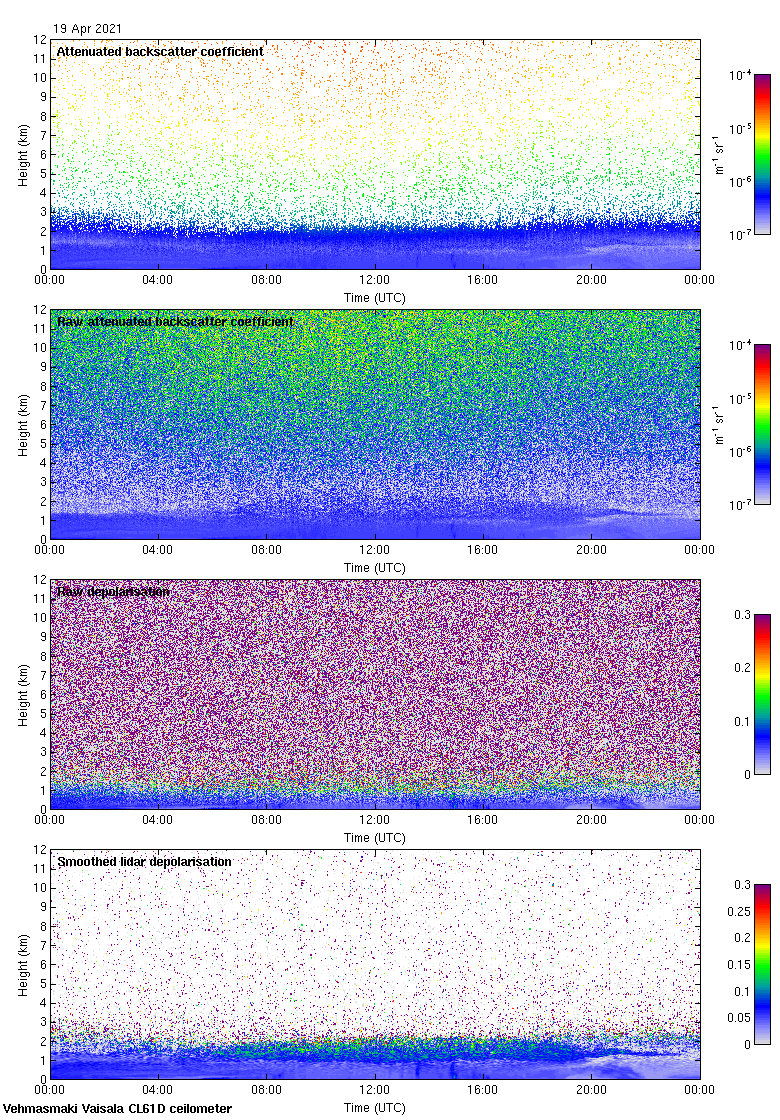 This page contains links to the daily Vehmasmaki Vaisala CL61D ceilometer images created at Kumpula.