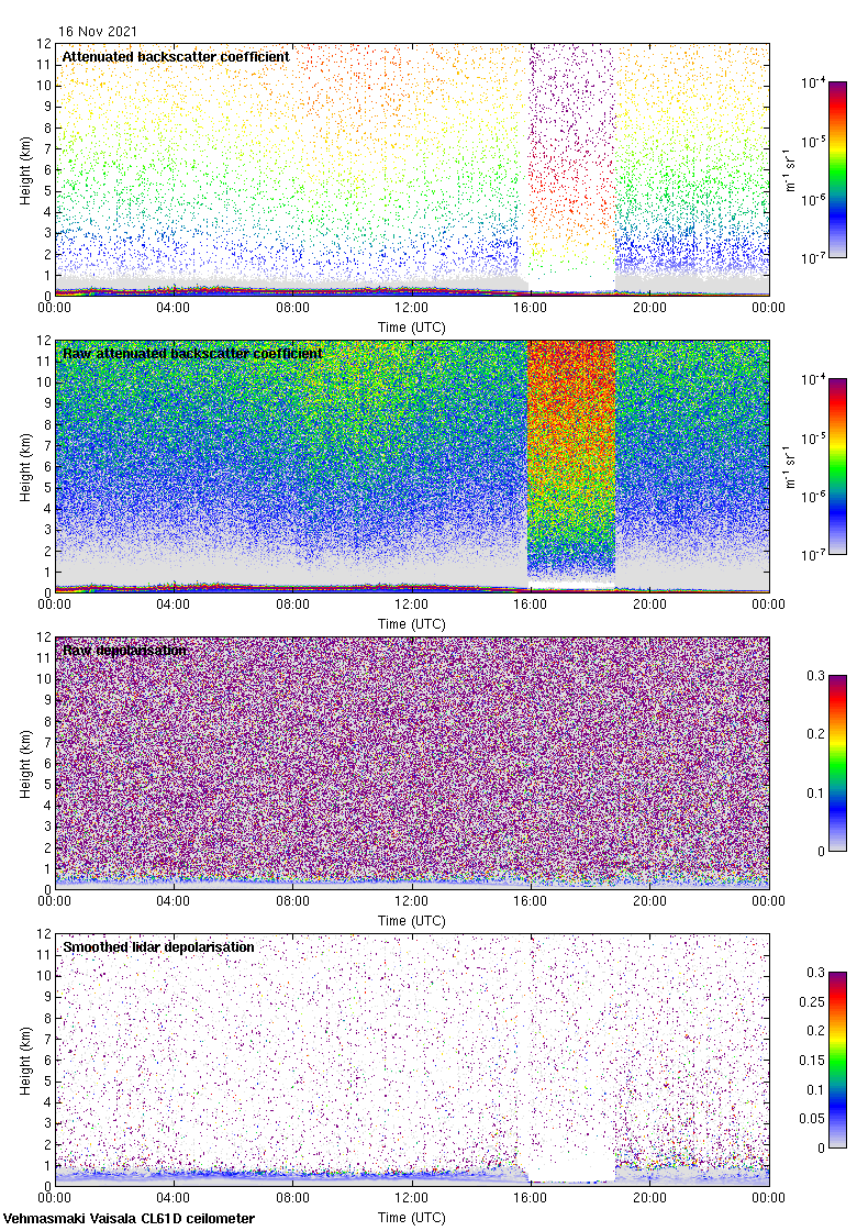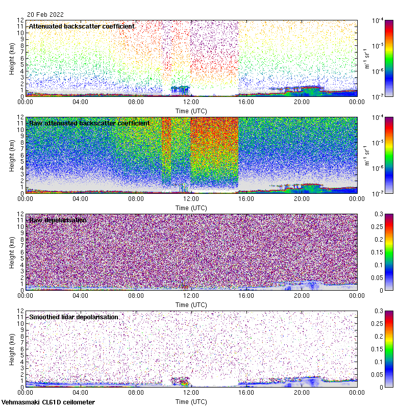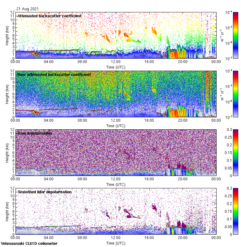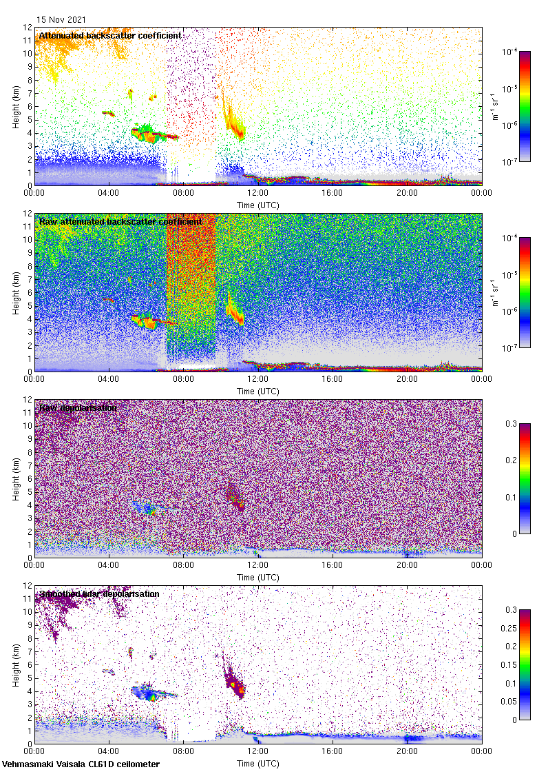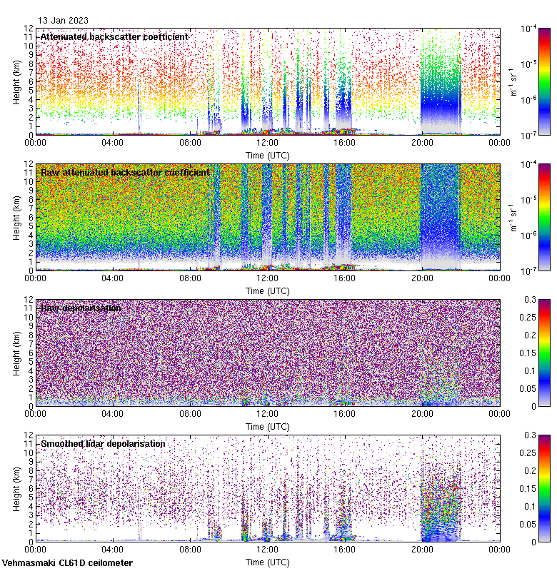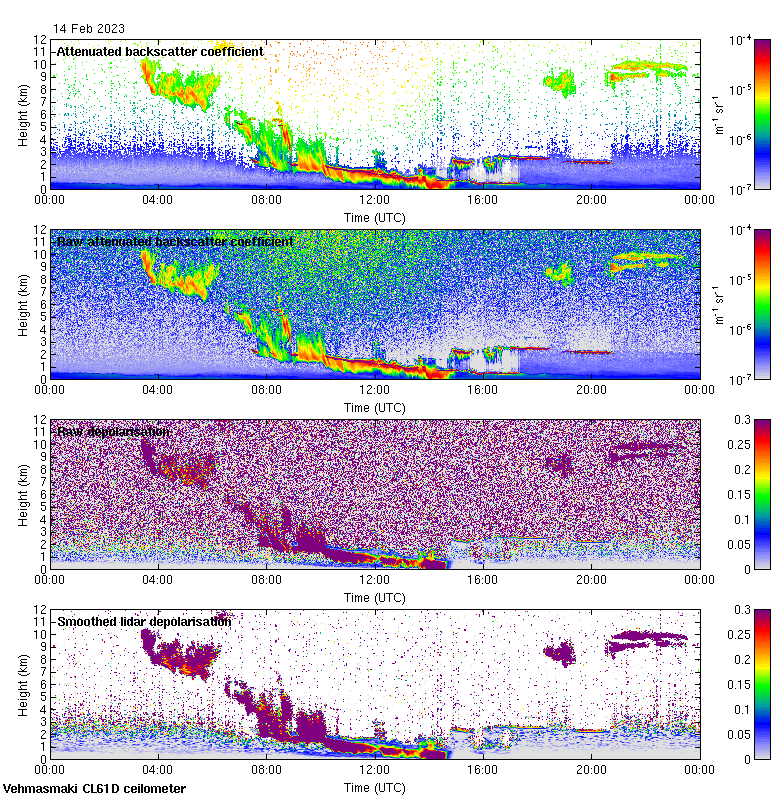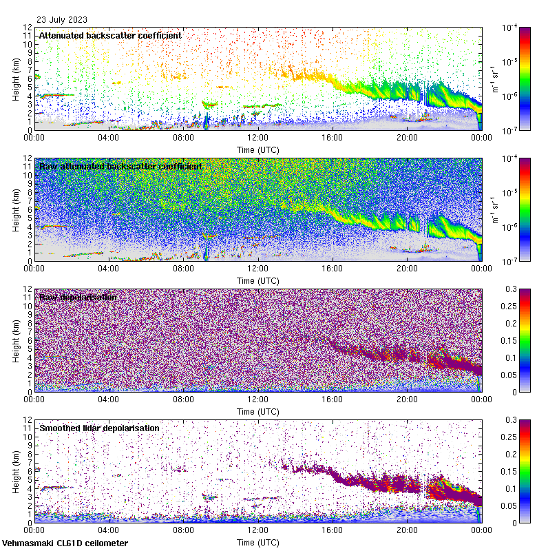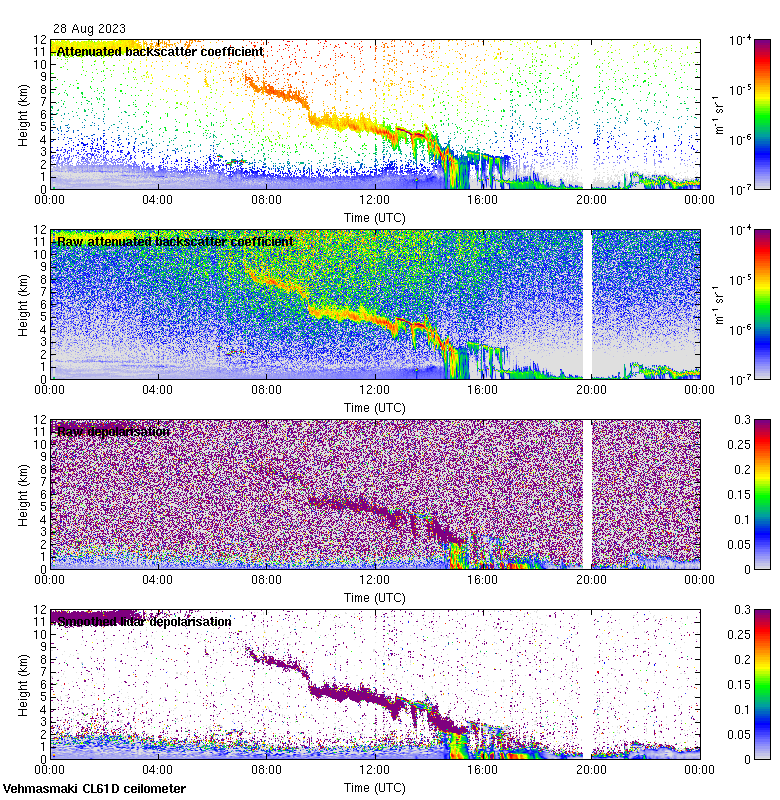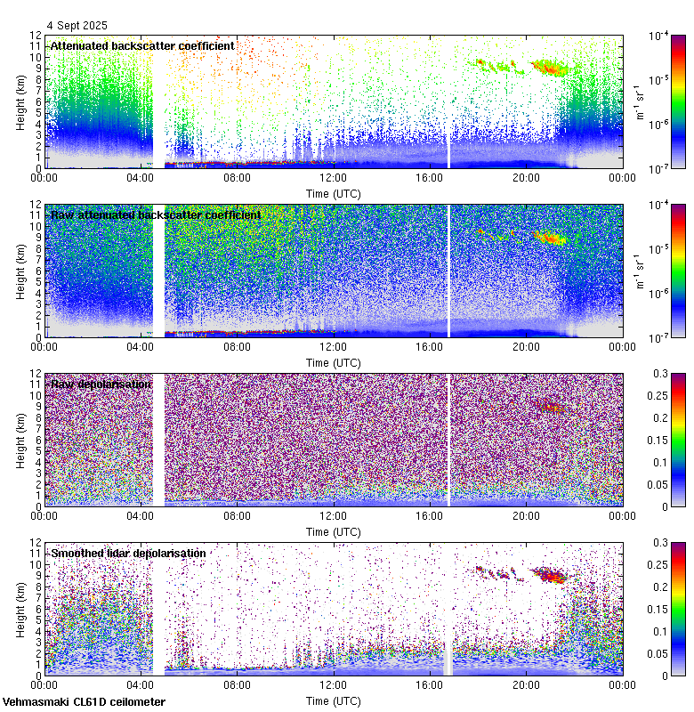 This page contains links to the daily Vehmasmaki Vaisala CL61D ceilometer images created at Kumpula.