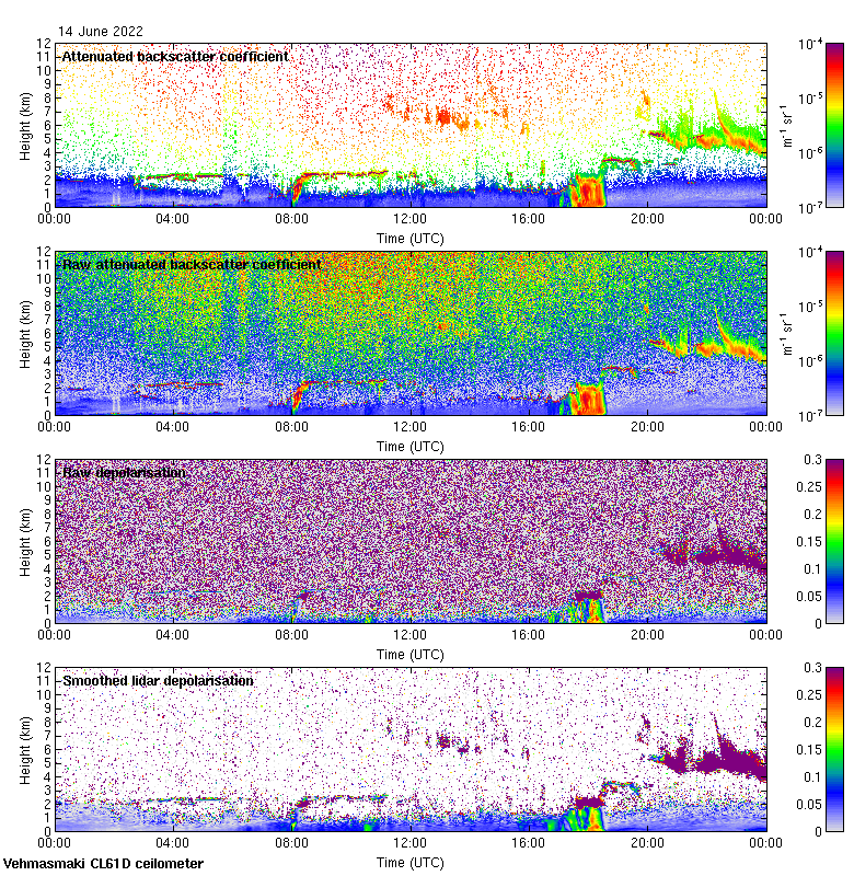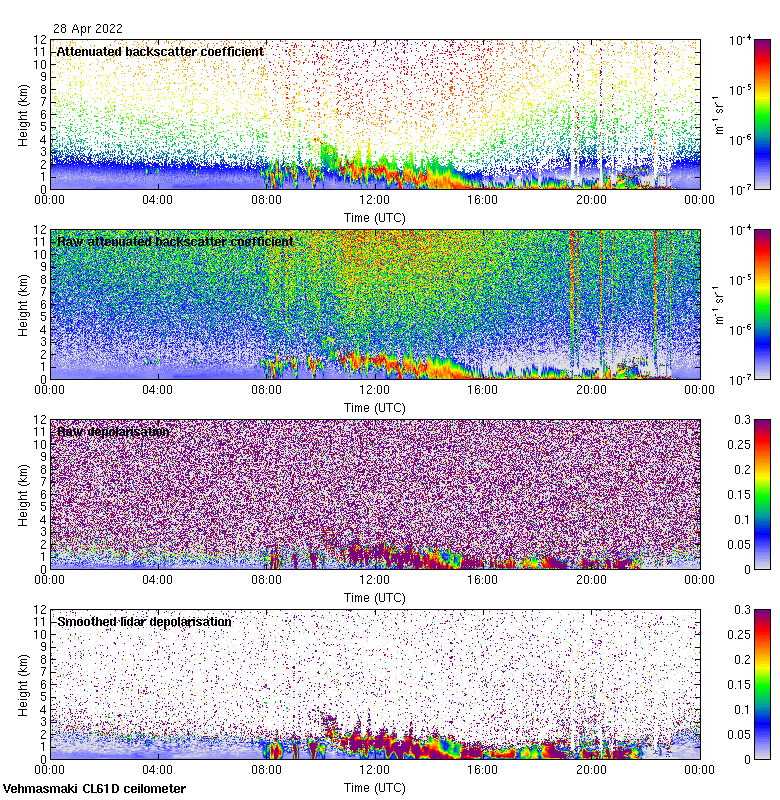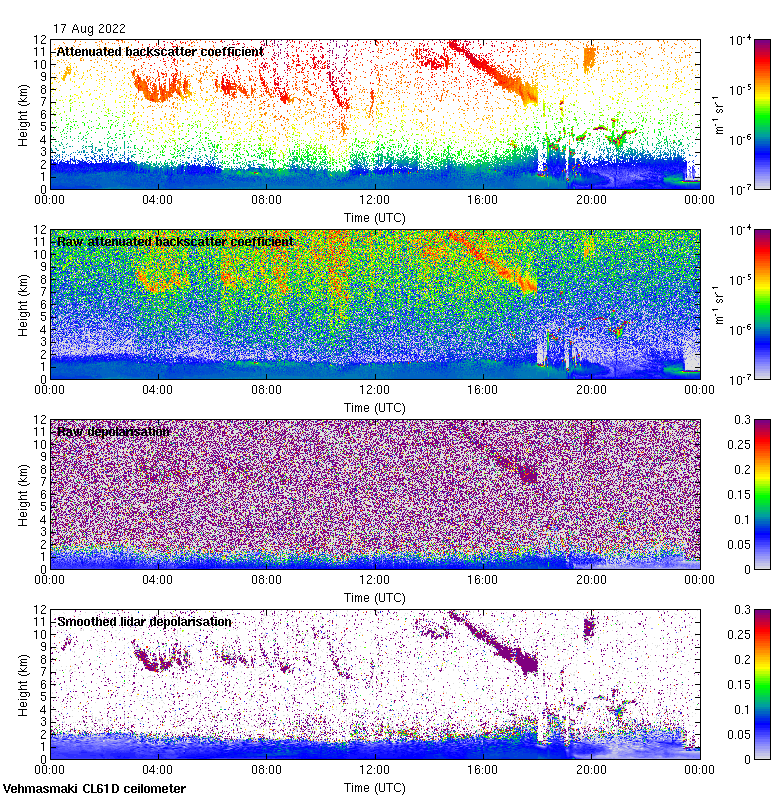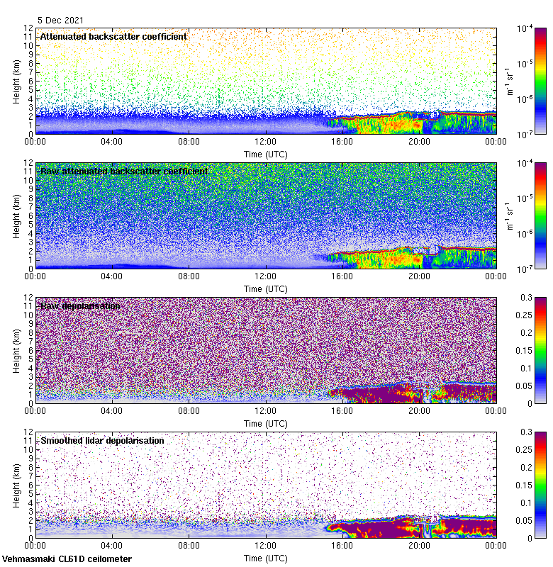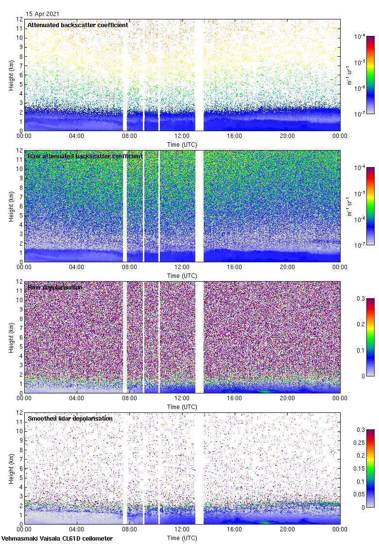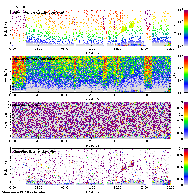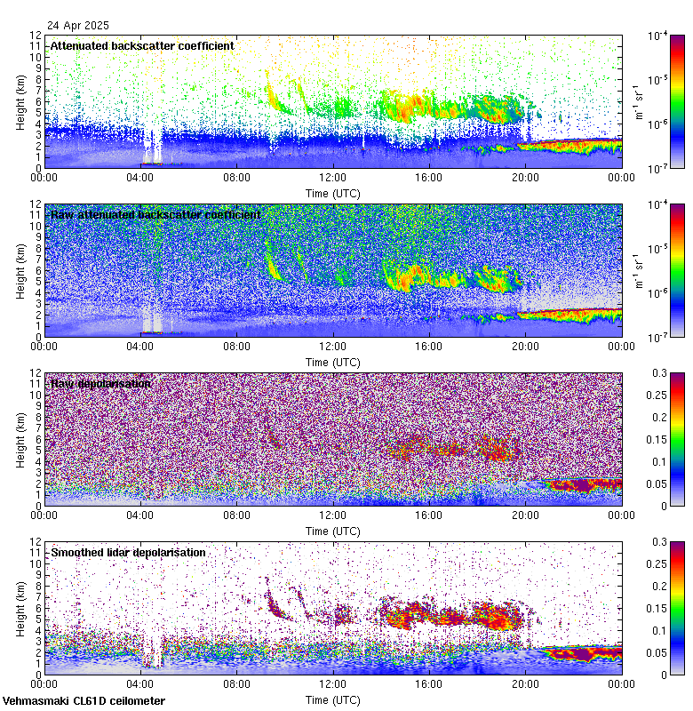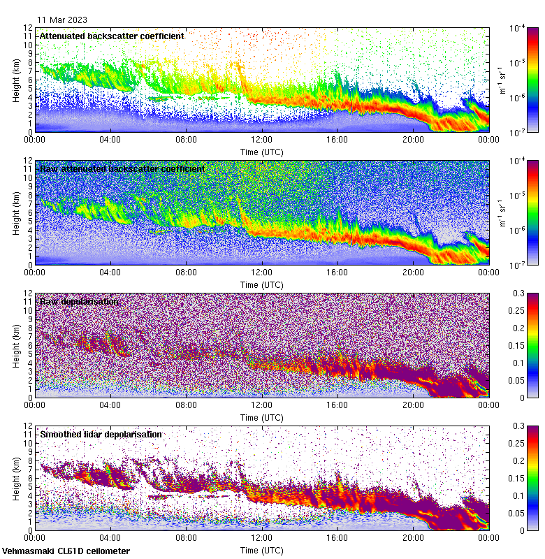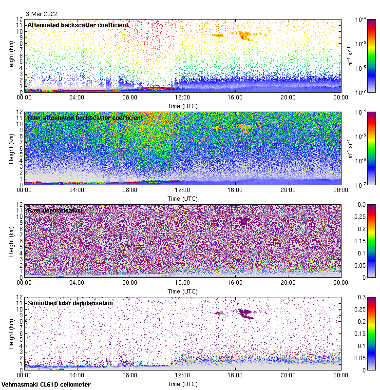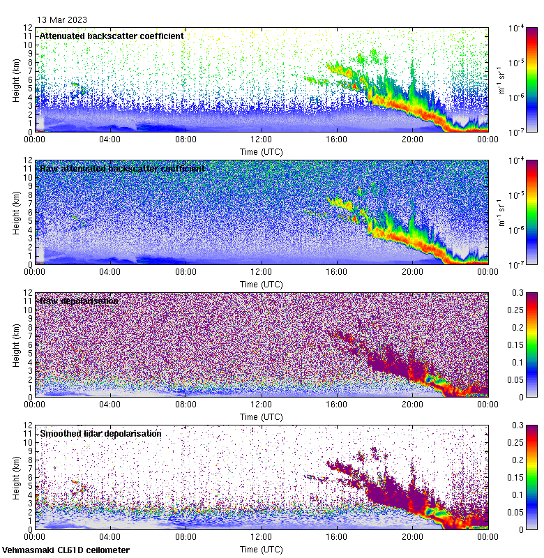 This page contains links to the daily Vehmasmaki Vaisala CL61D ceilometer images created at Kumpula.