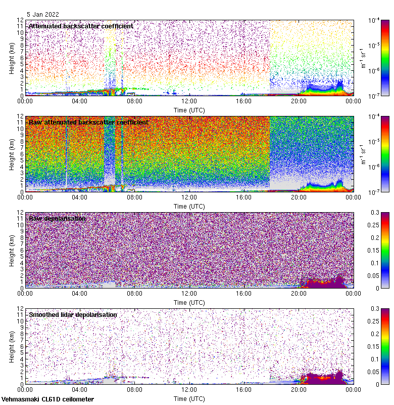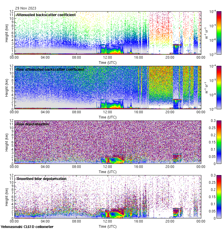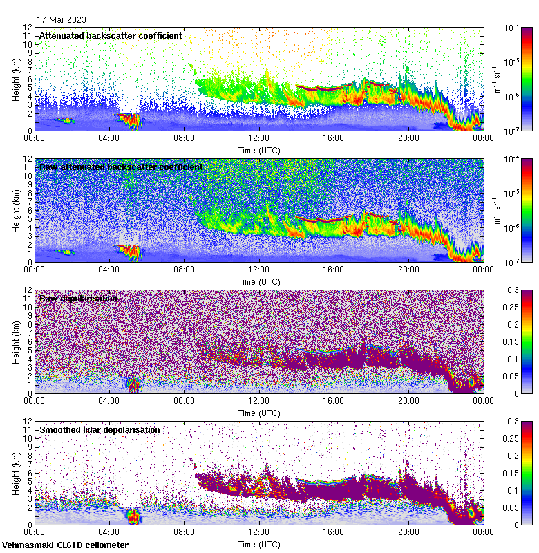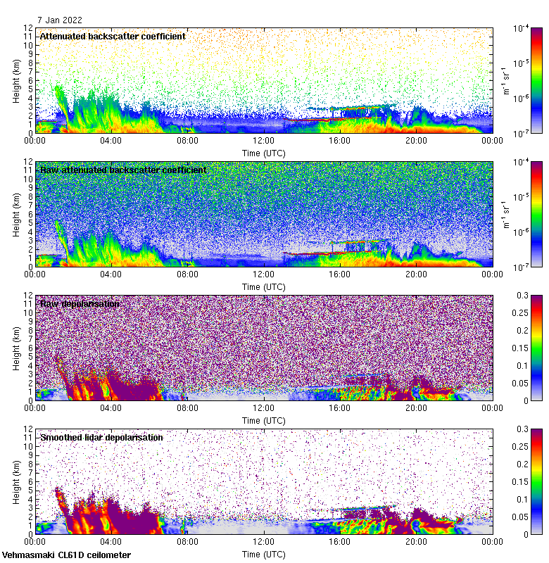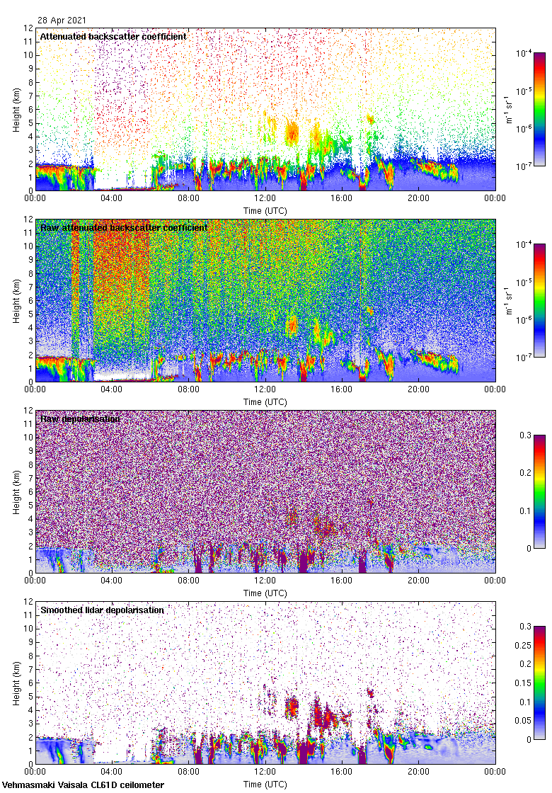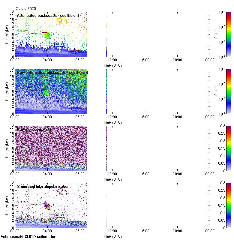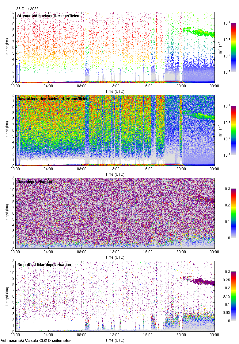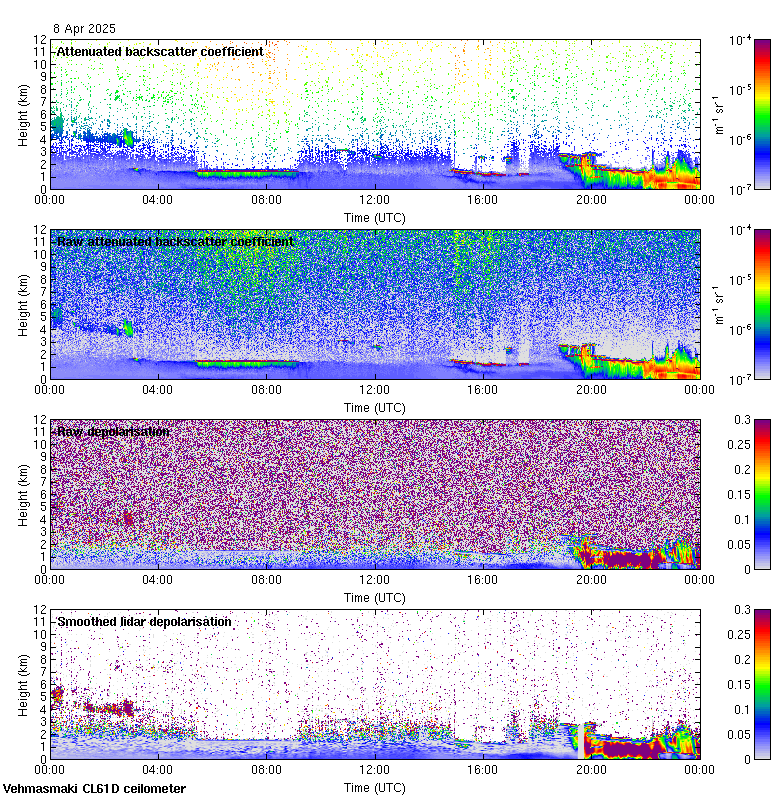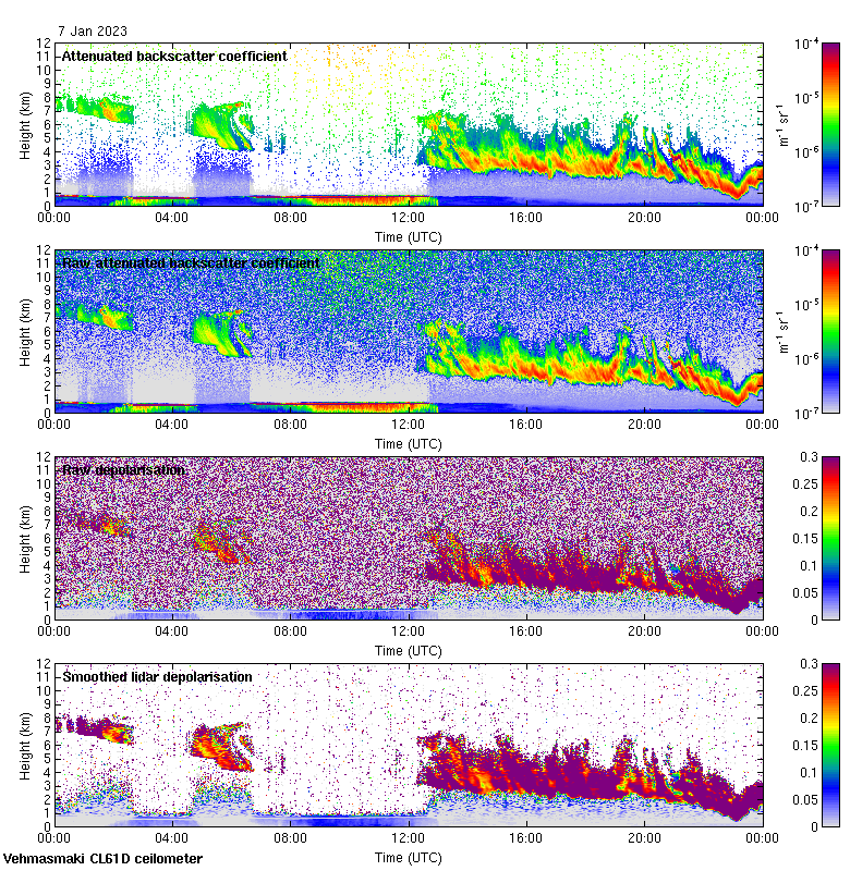 This page contains links to the daily Vehmasmaki Vaisala CL61D ceilometer images created at Kumpula.
