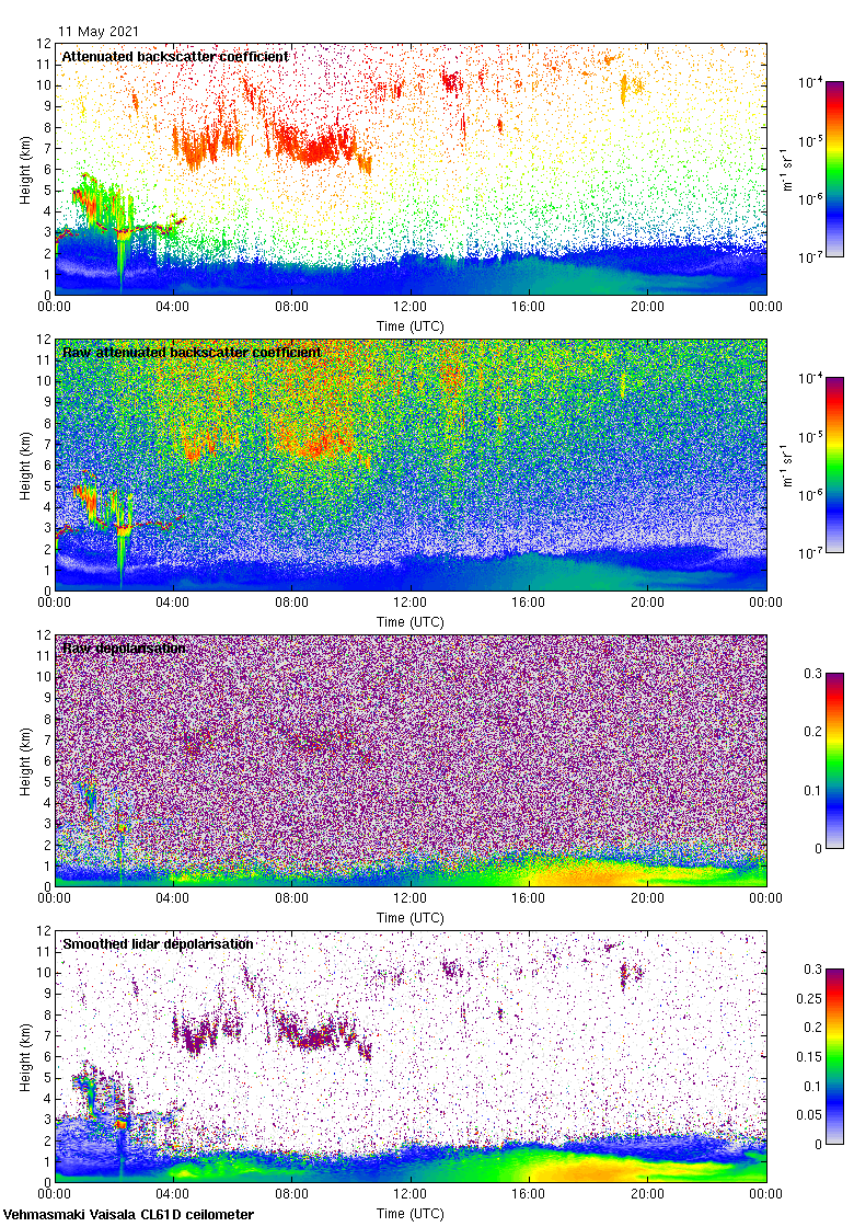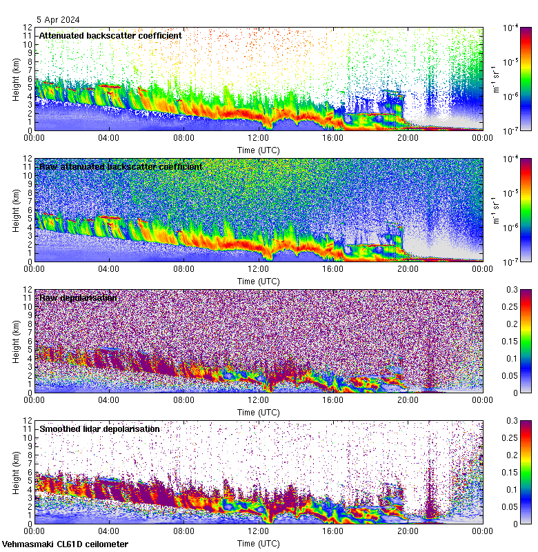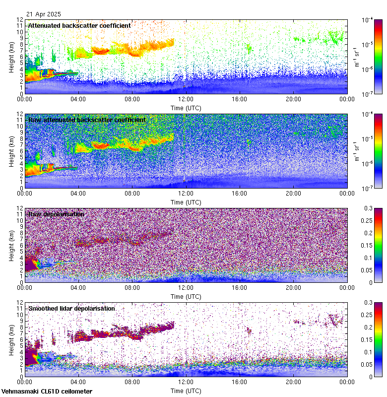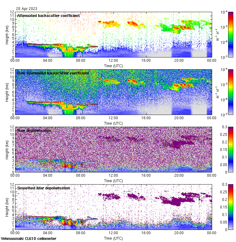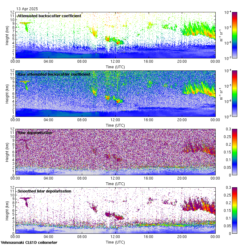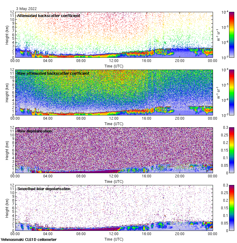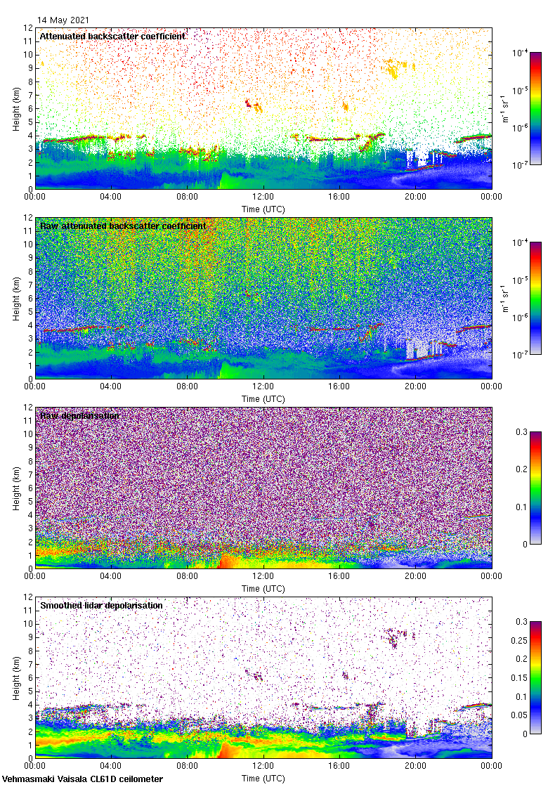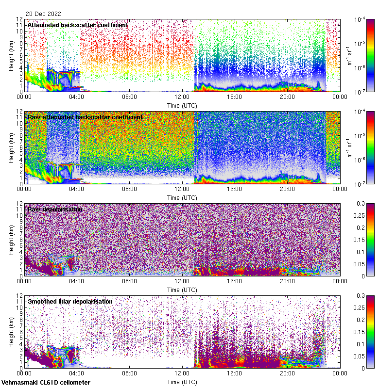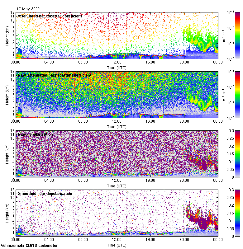 This page contains links to the daily Vehmasmaki Vaisala CL61D ceilometer images created at Kumpula.