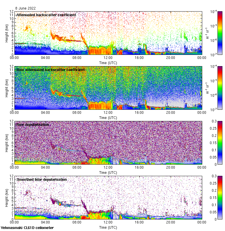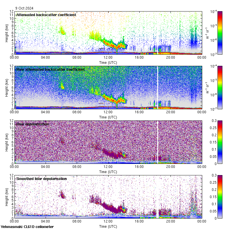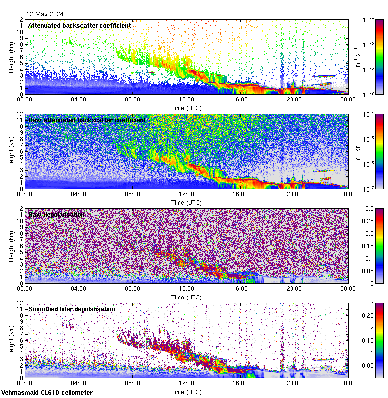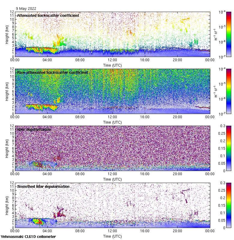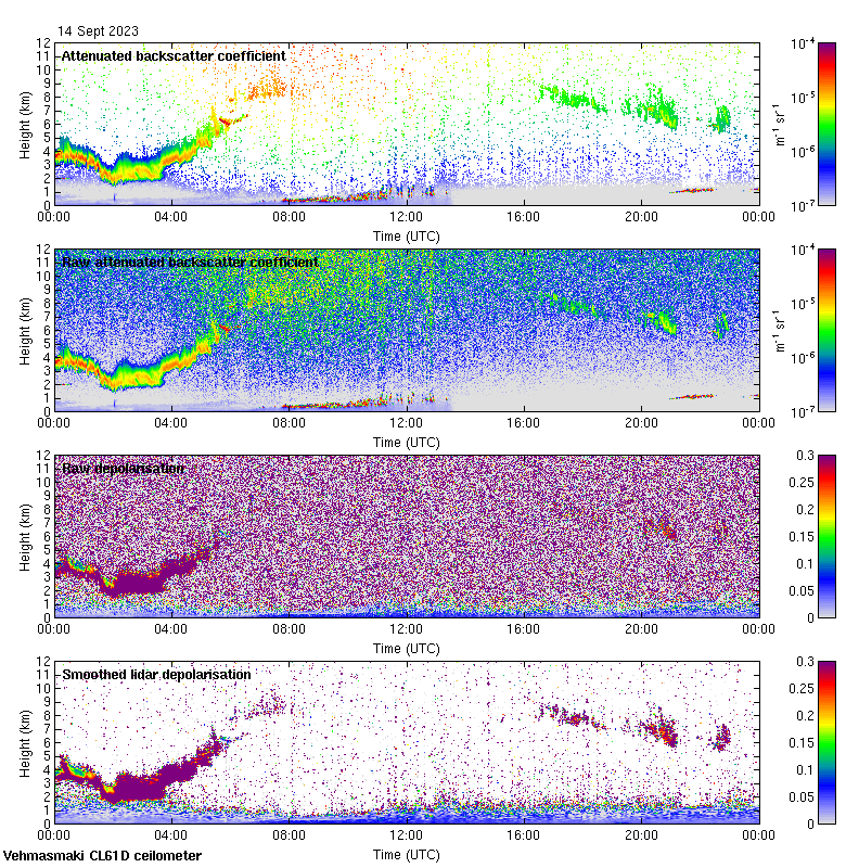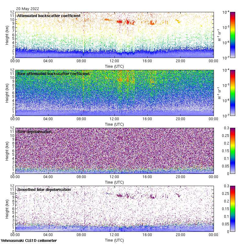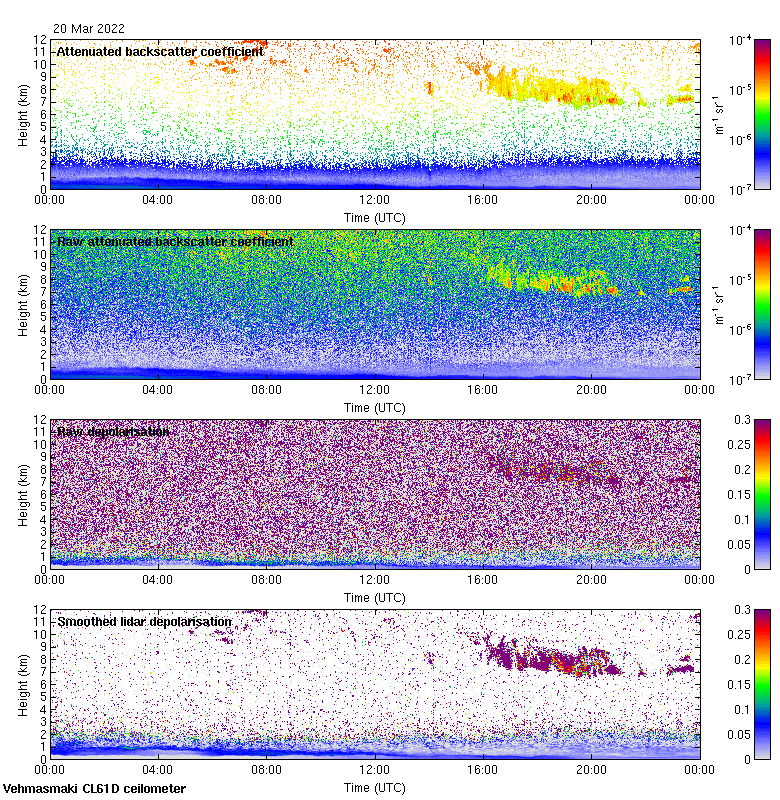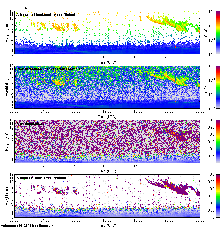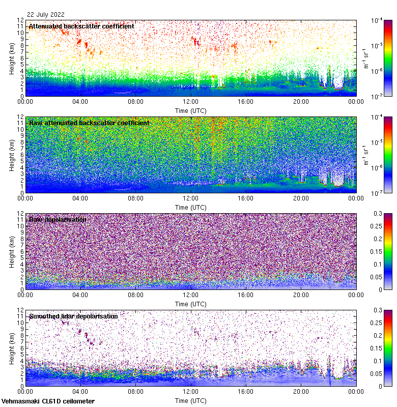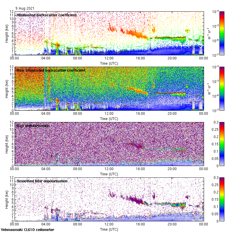 This page contains links to the daily Vehmasmaki Vaisala CL61D ceilometer images created at Kumpula.