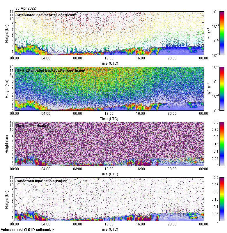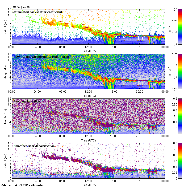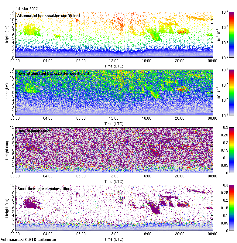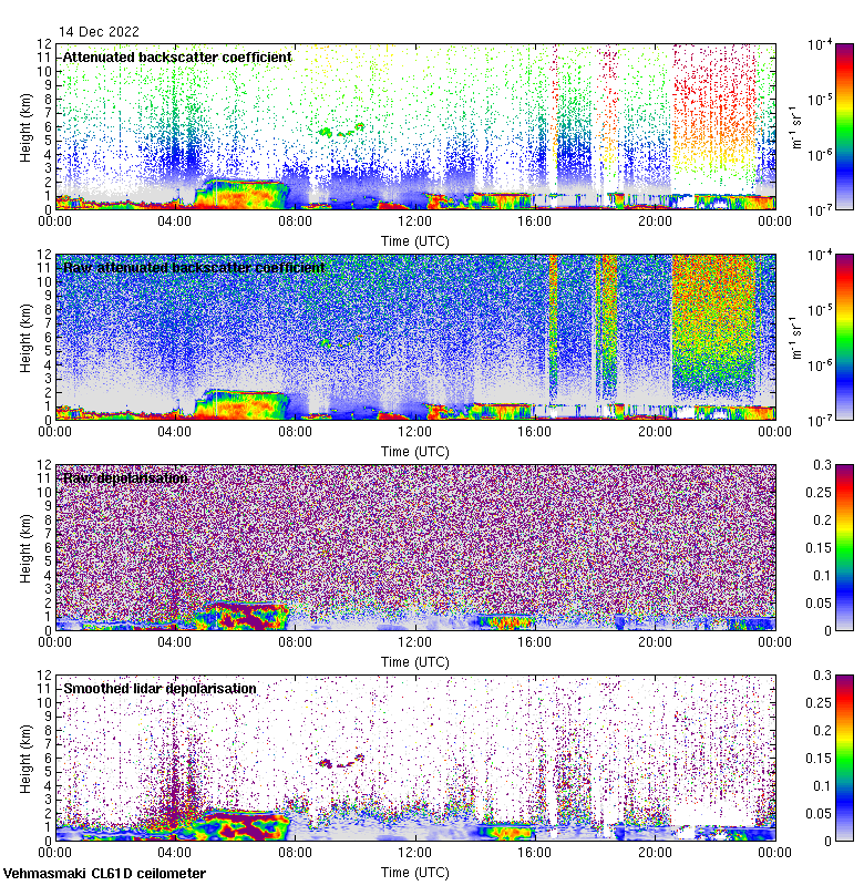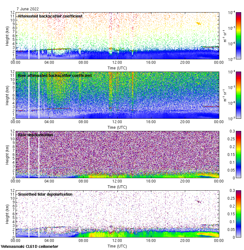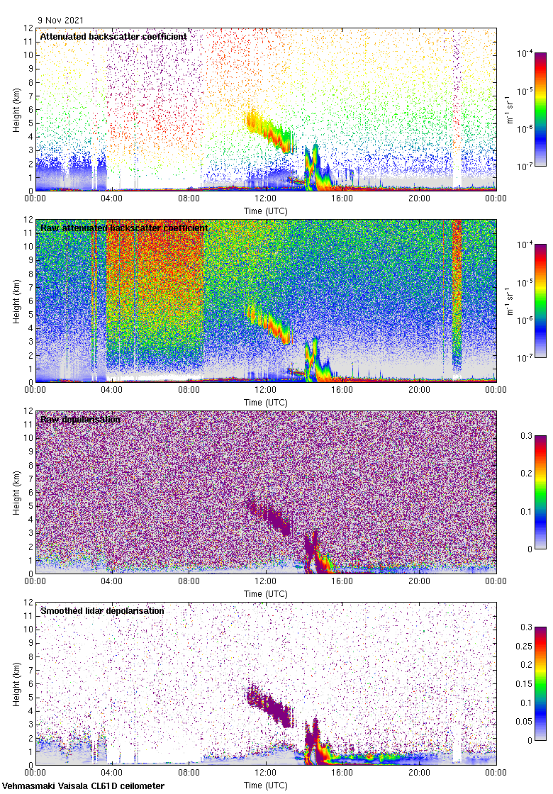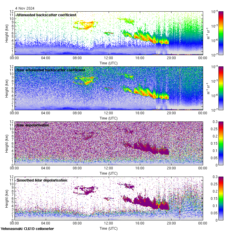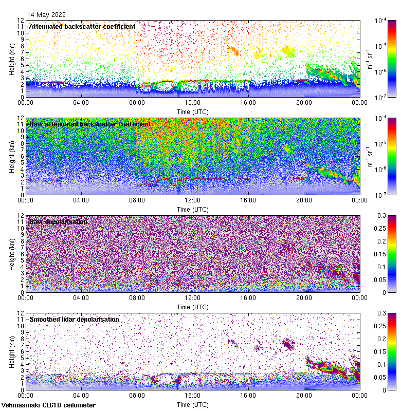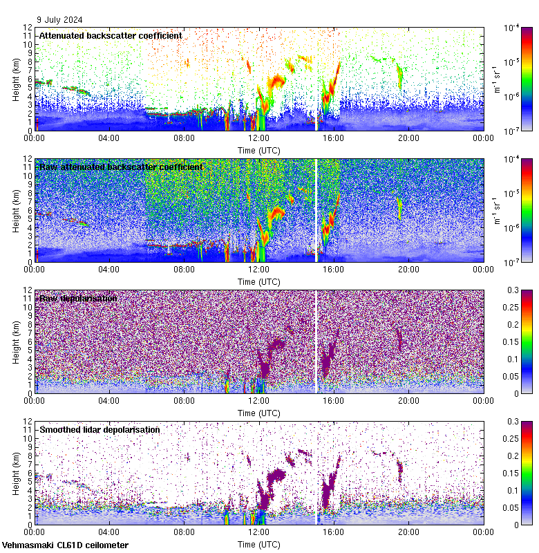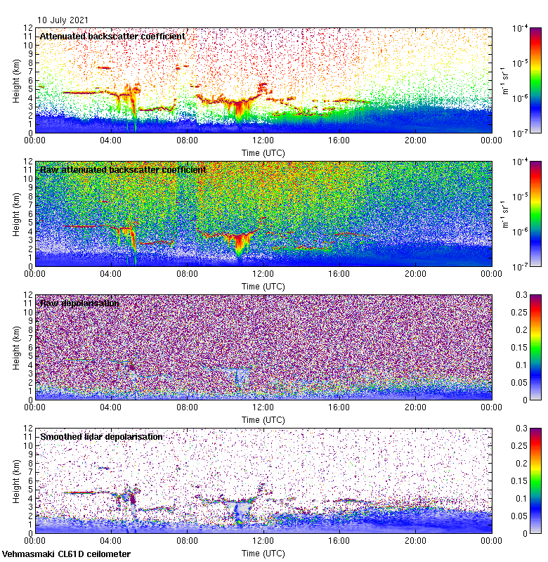 This page contains links to the daily Vehmasmaki Vaisala CL61D ceilometer images created at Kumpula.