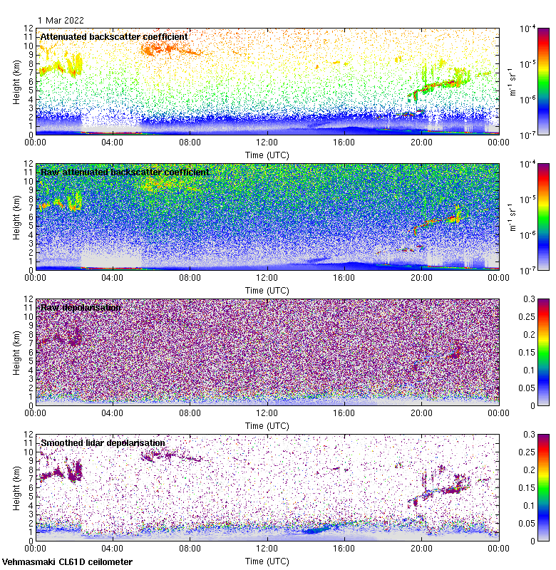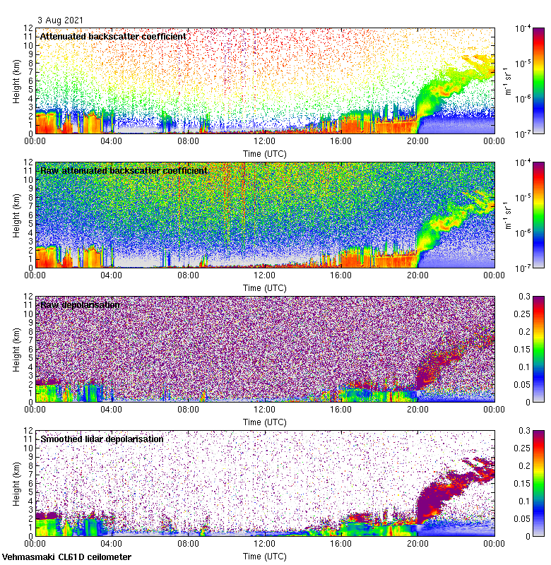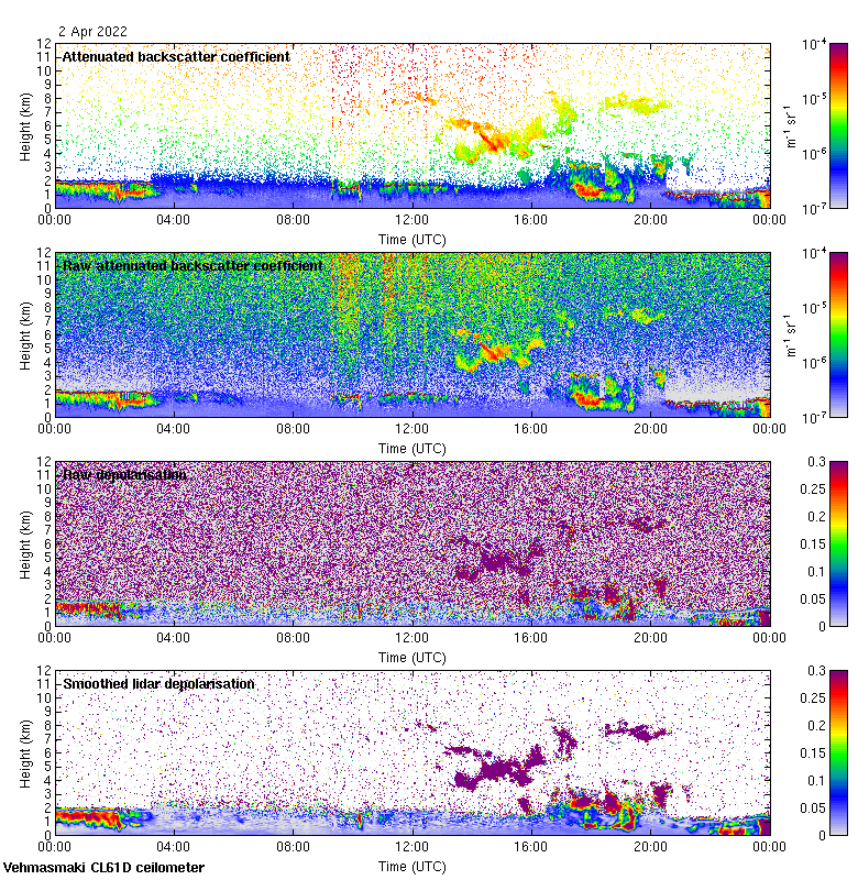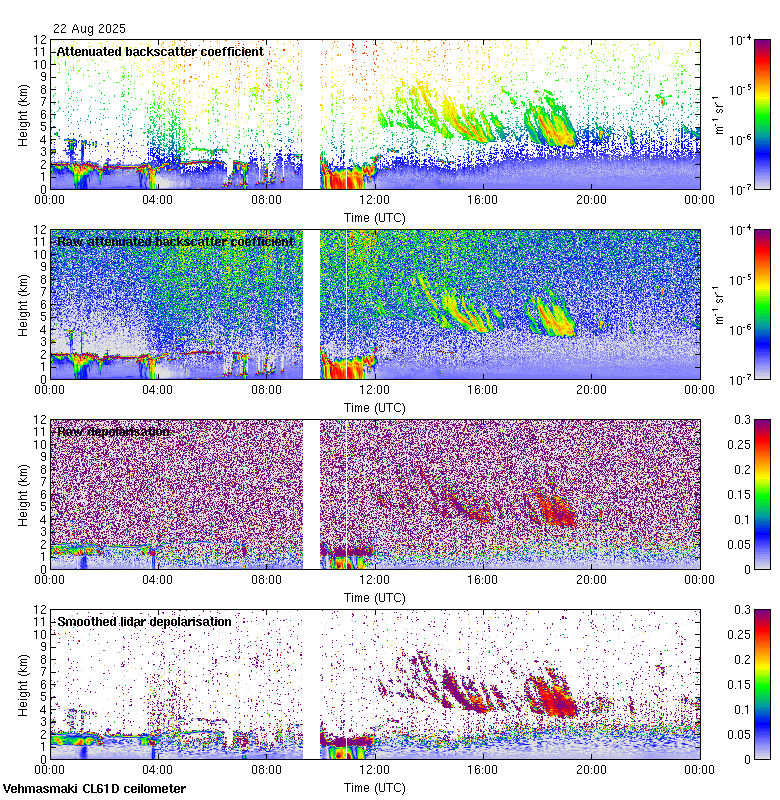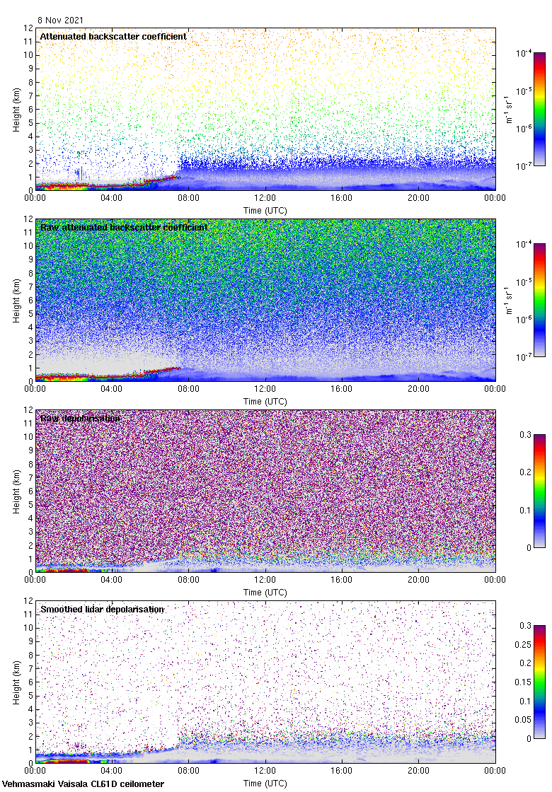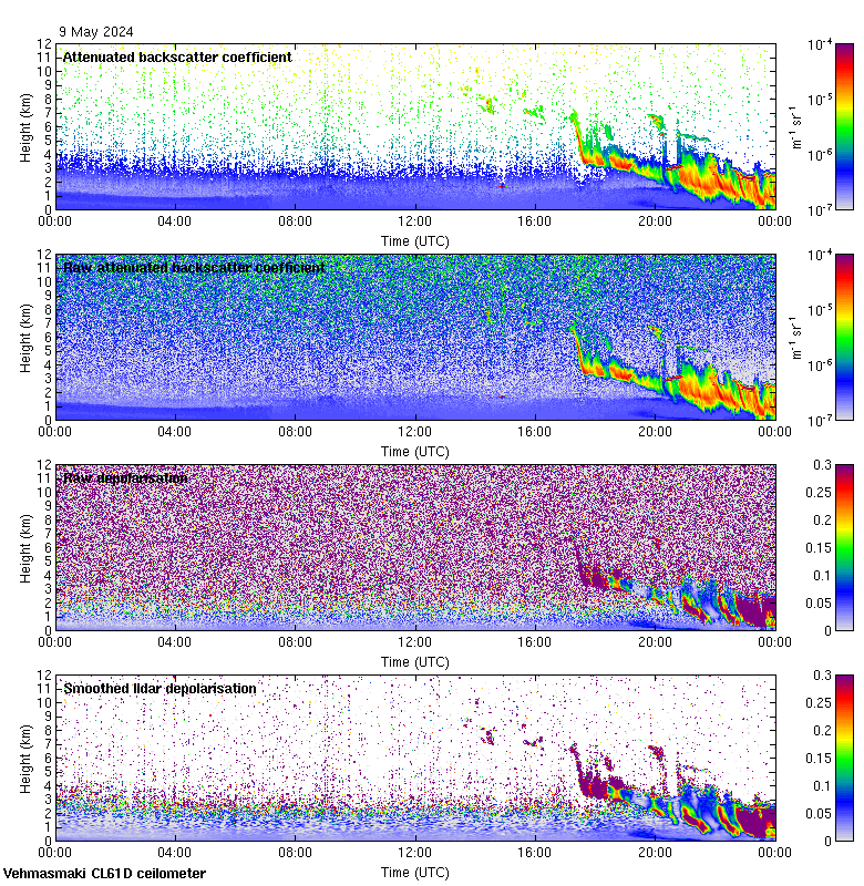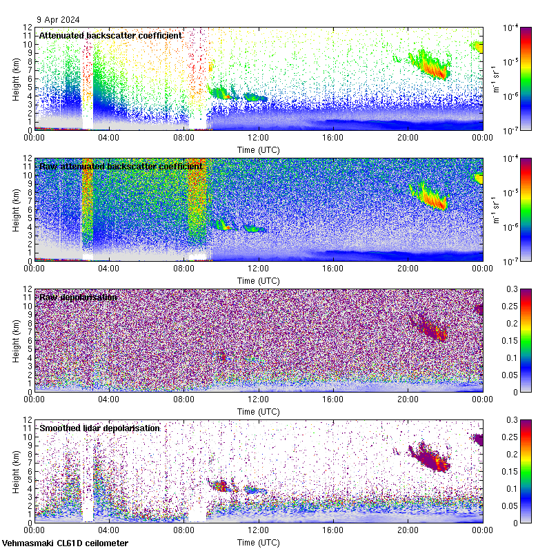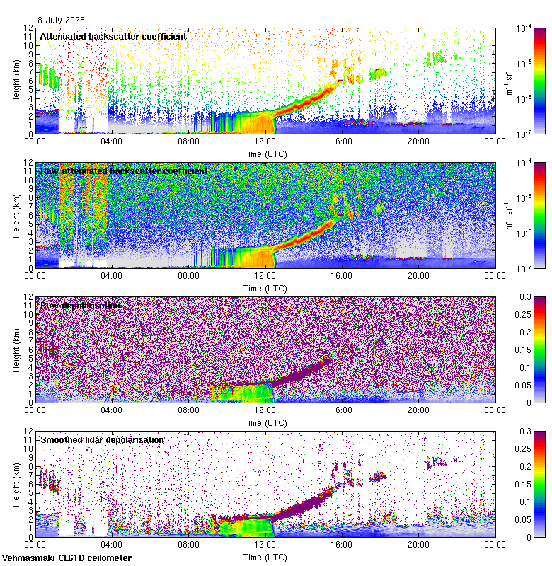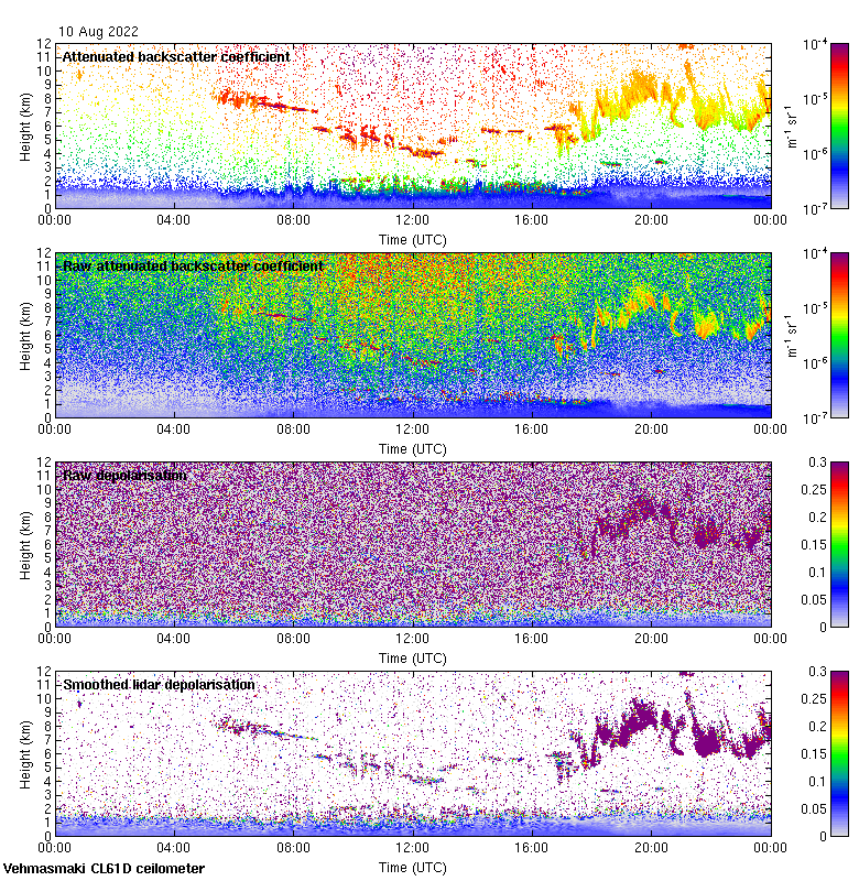This page contains links to the daily Vehmasmaki Vaisala CL61D ceilometer images created at Kumpula.