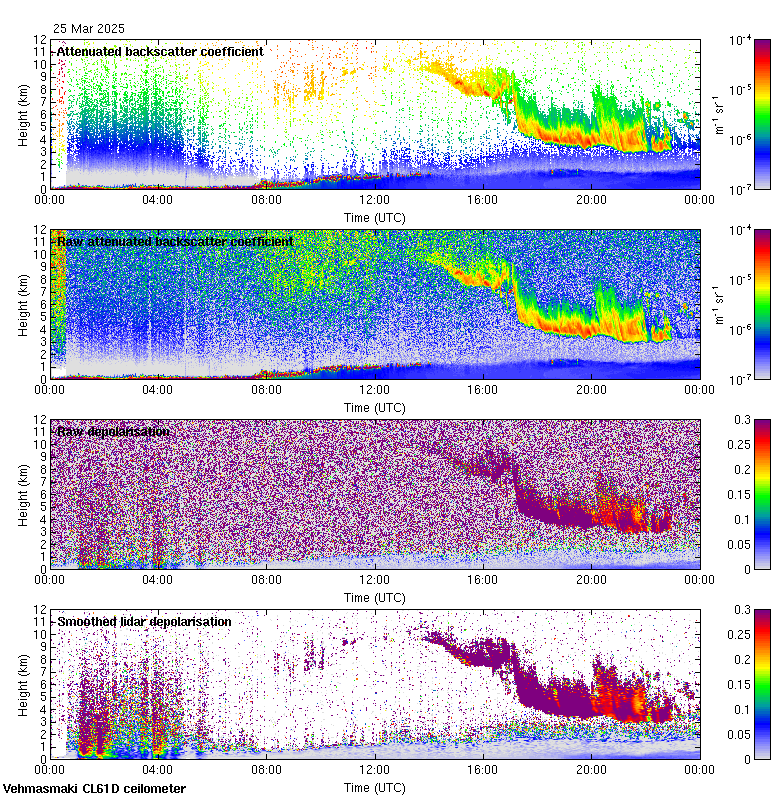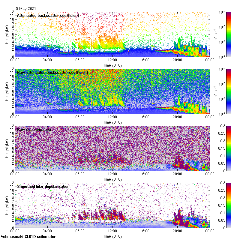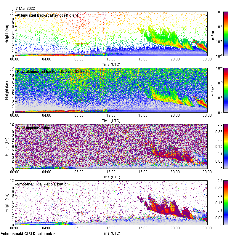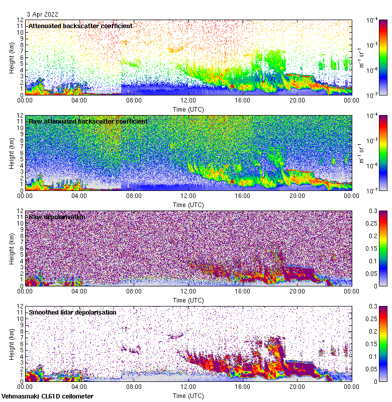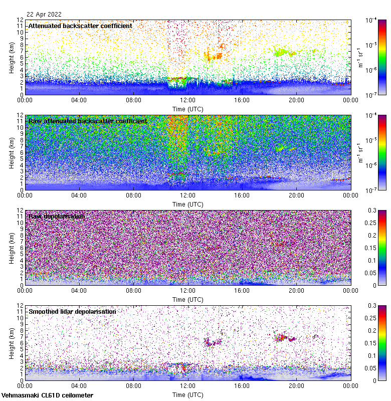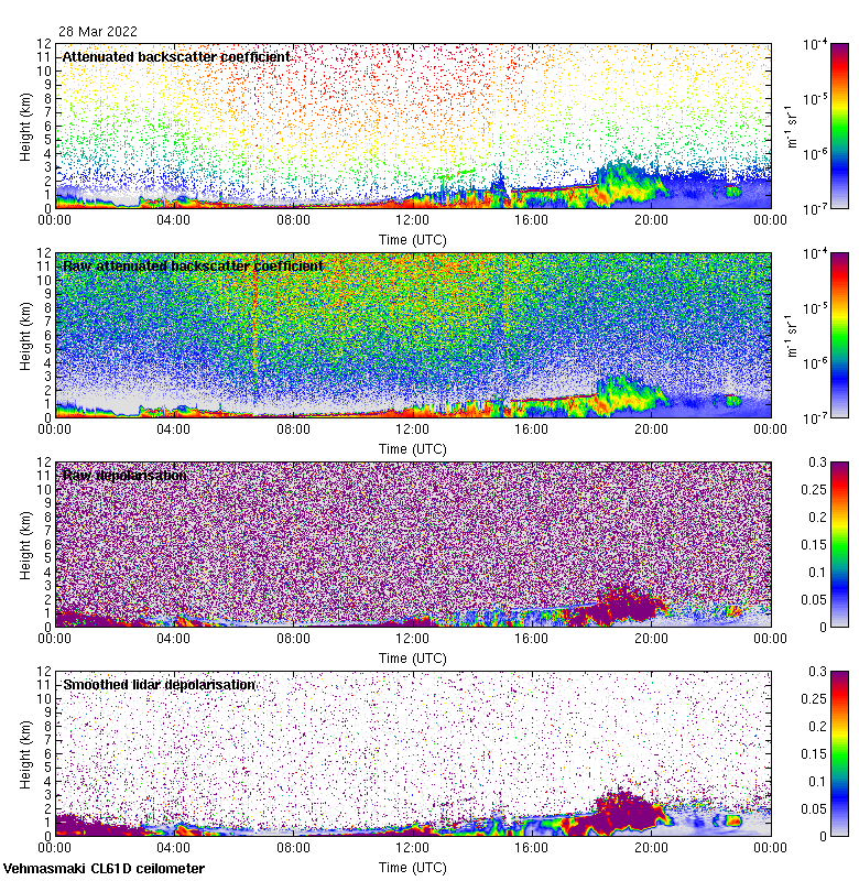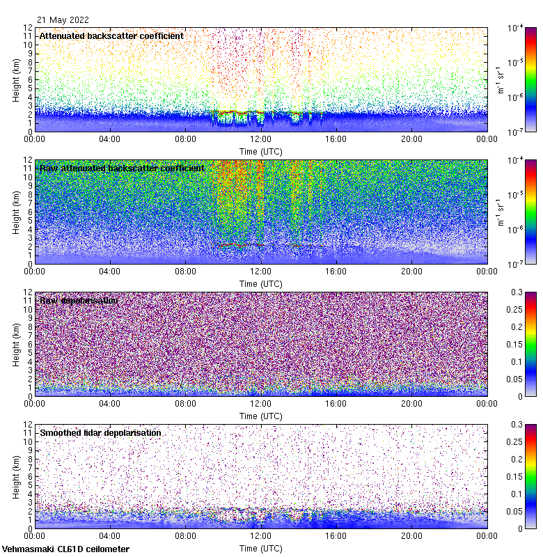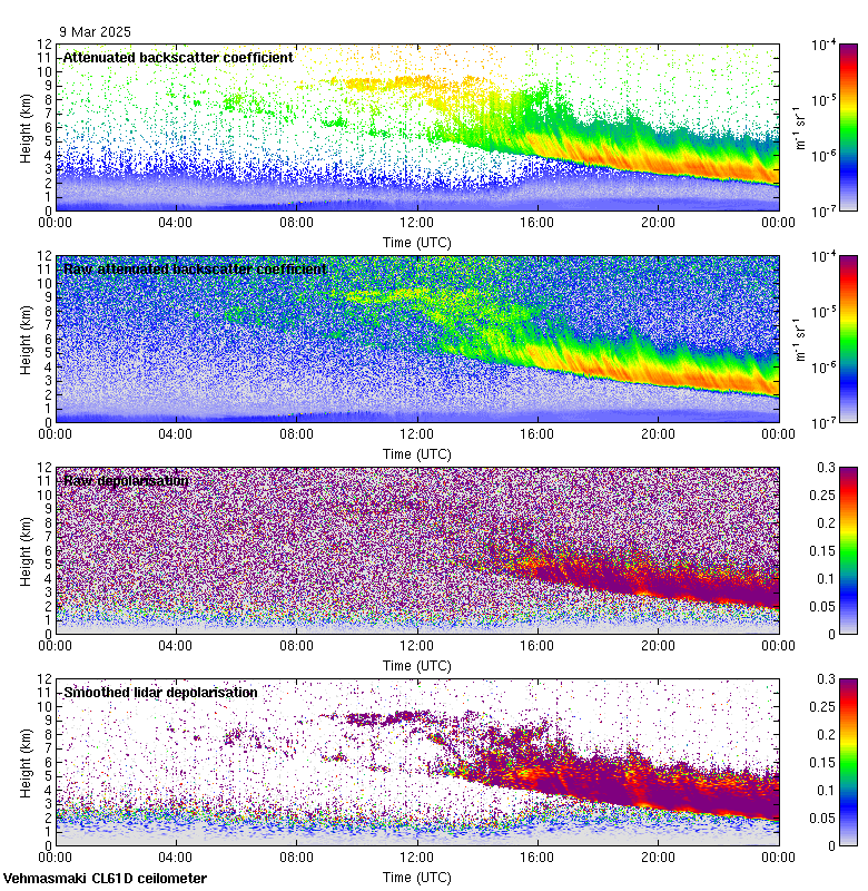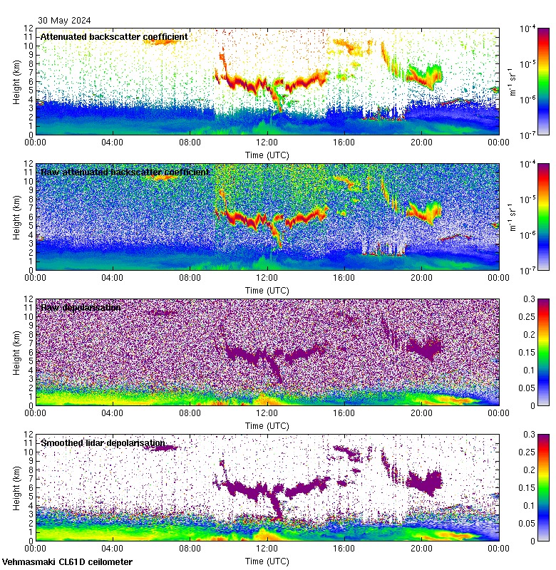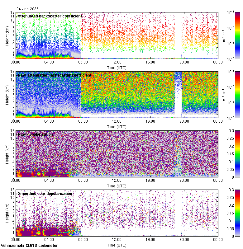 This page contains links to the daily Vehmasmaki Vaisala CL61D ceilometer images created at Kumpula.