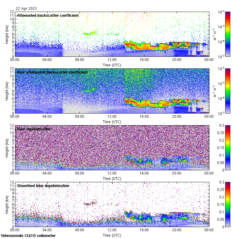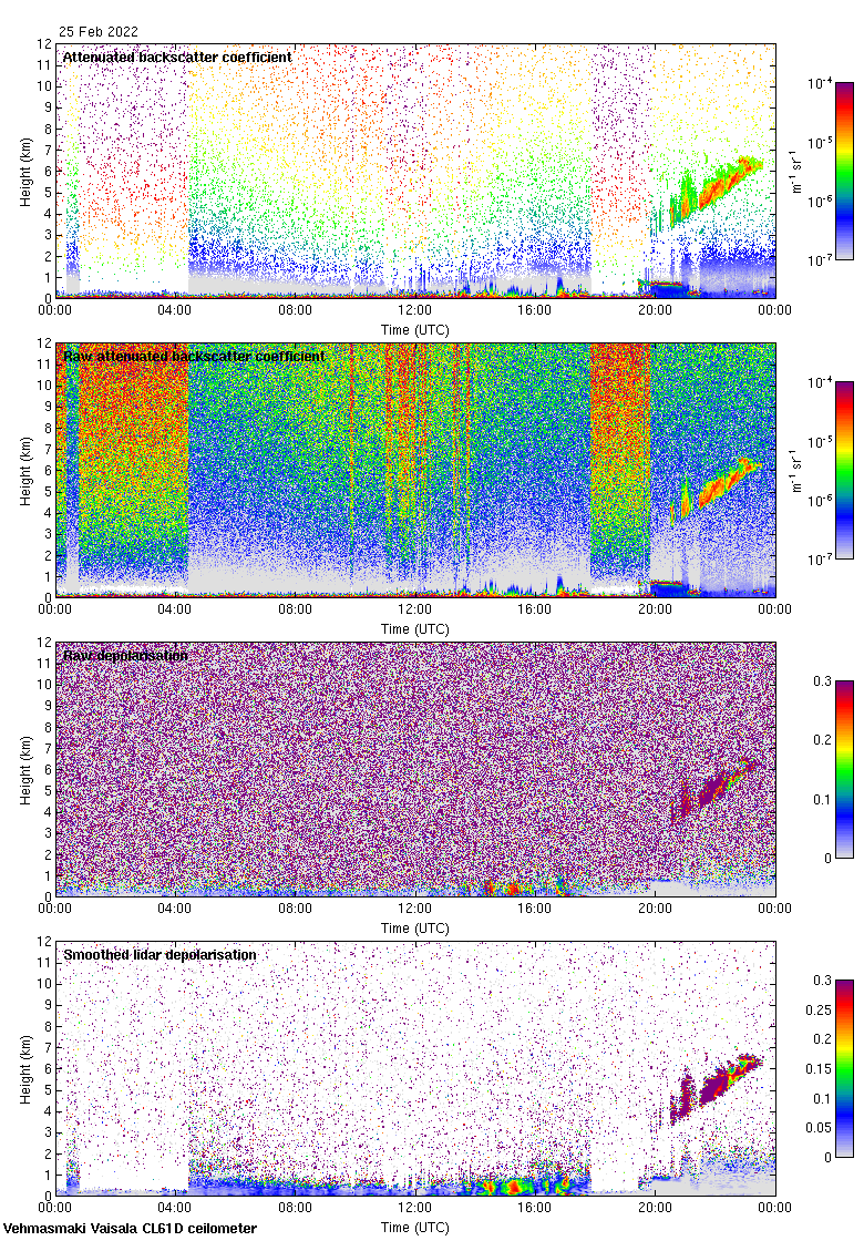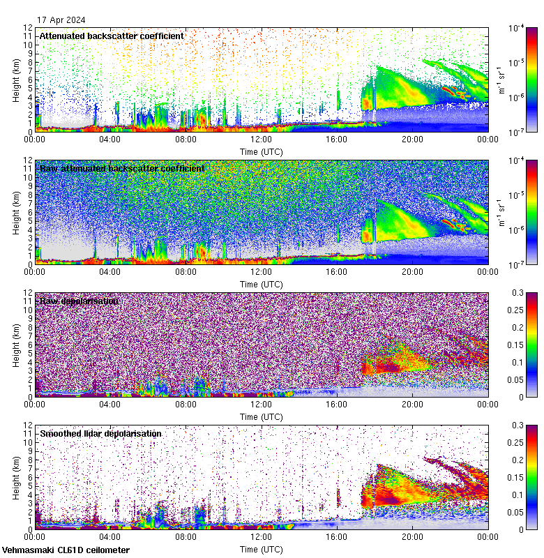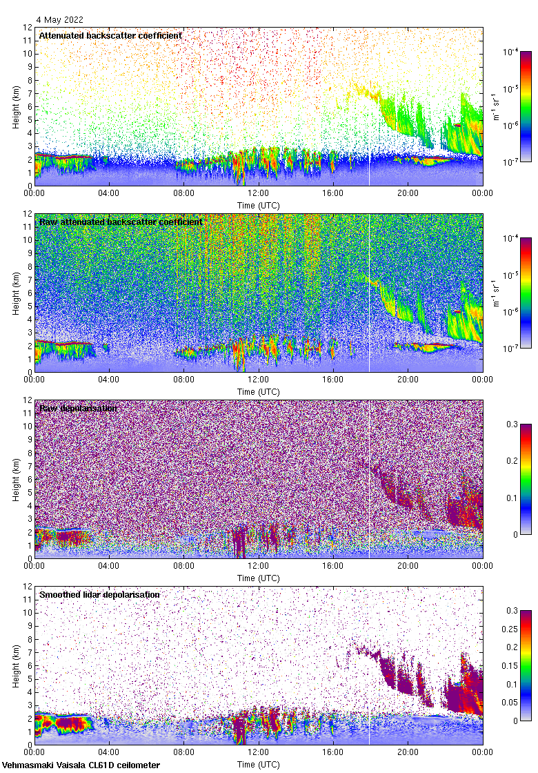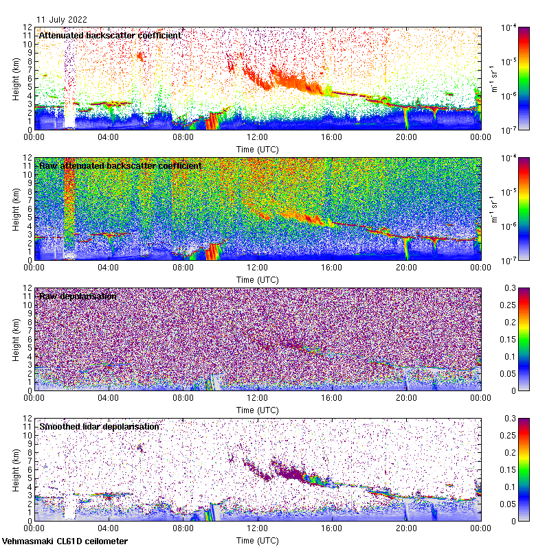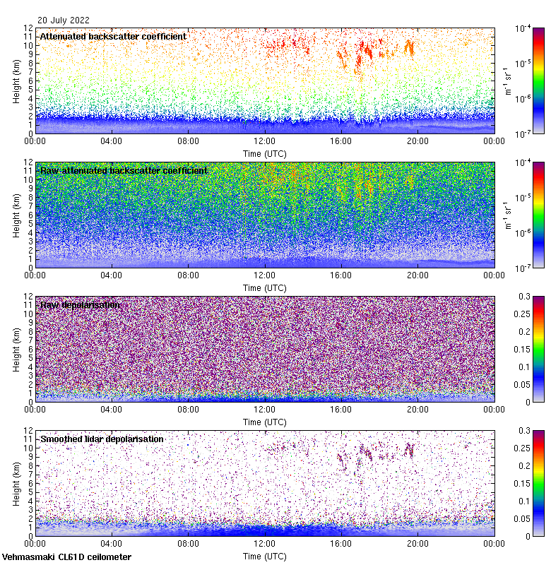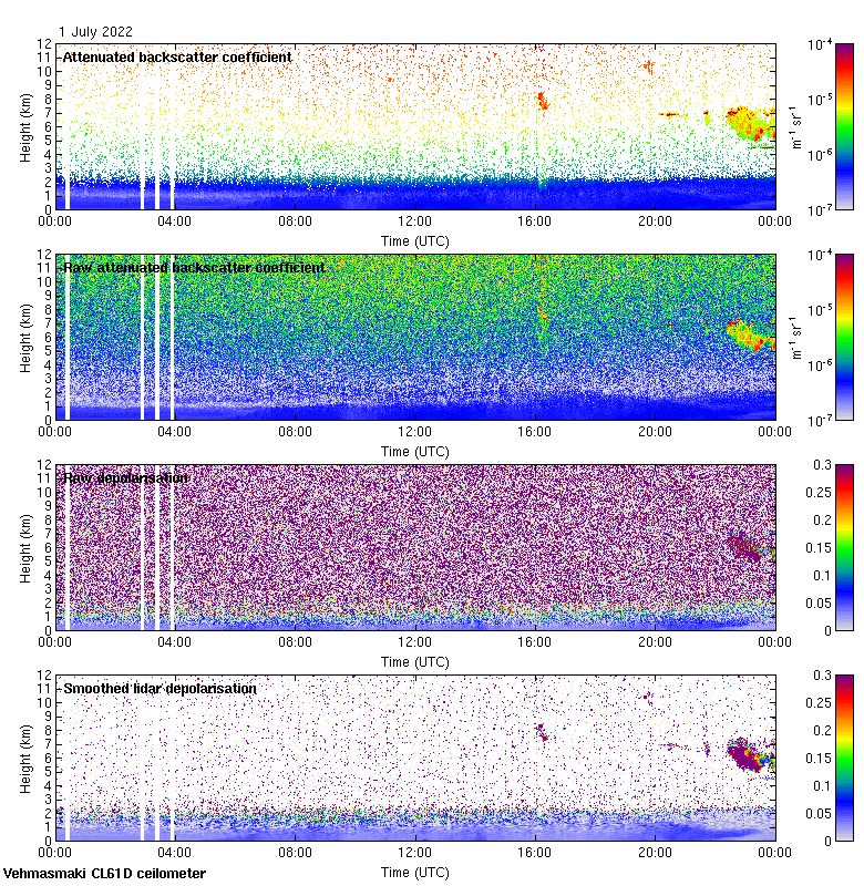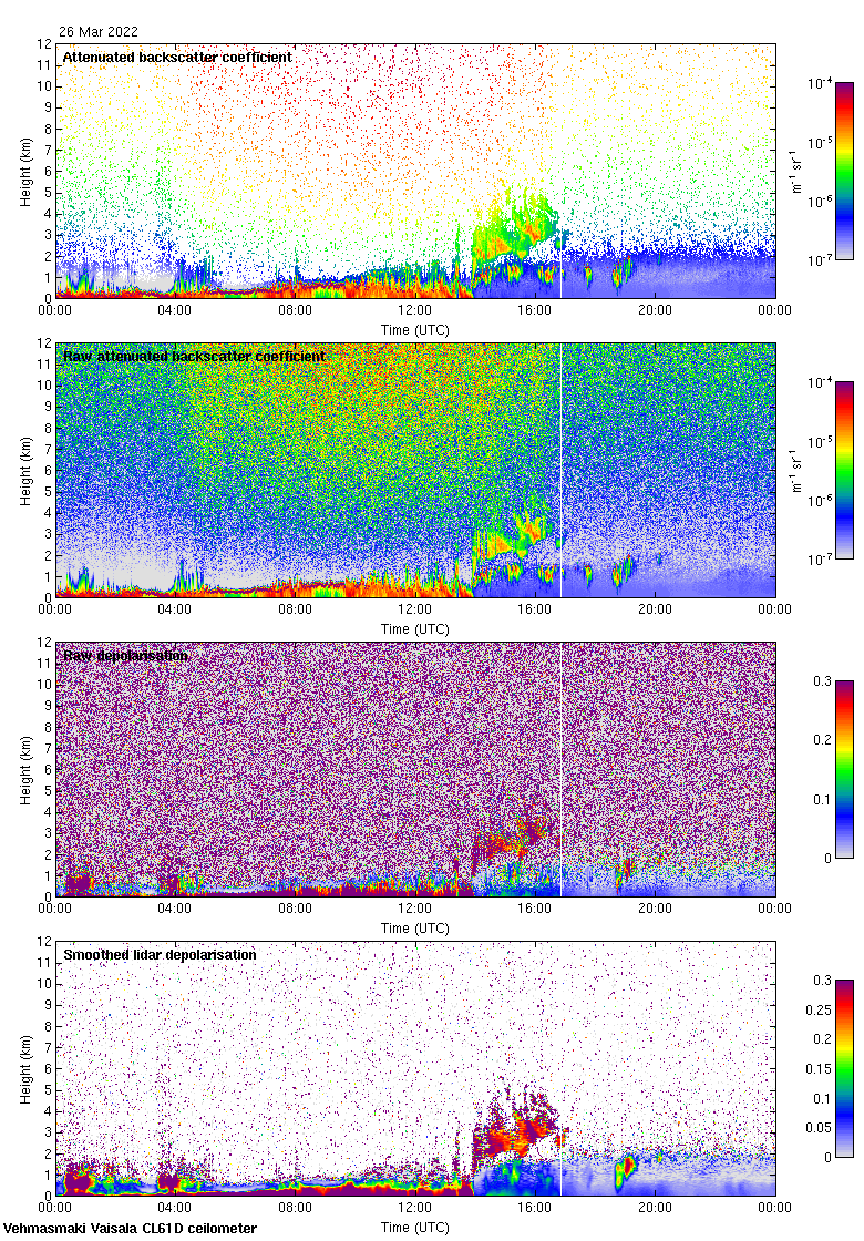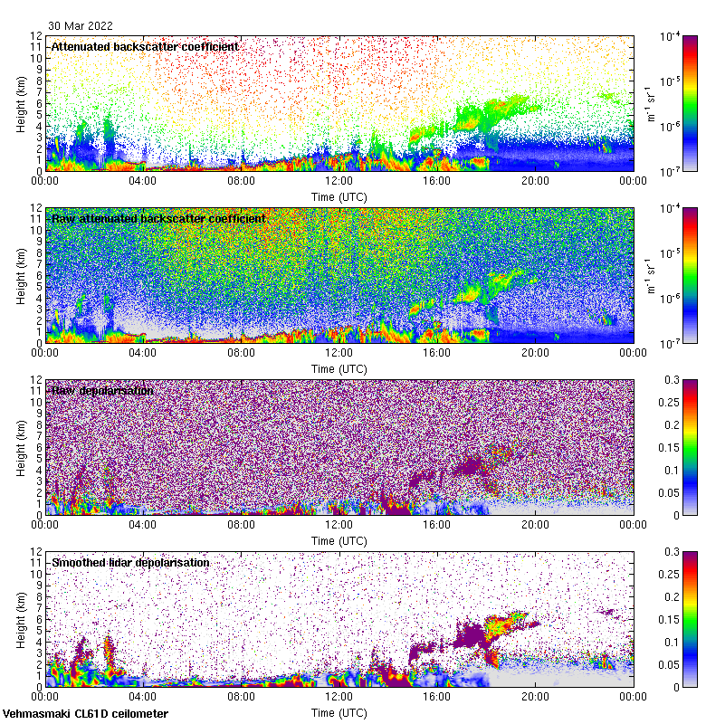 This page contains links to the daily Vehmasmaki Vaisala CL61D ceilometer images created at Kumpula.