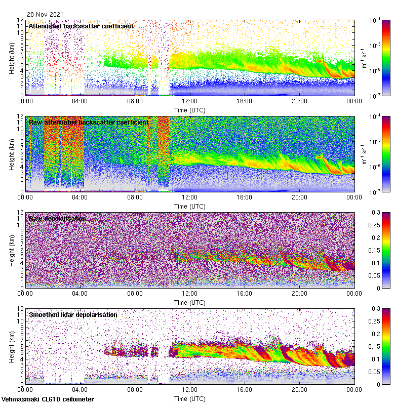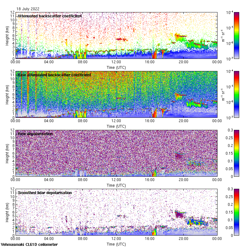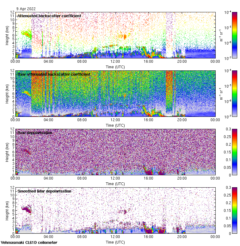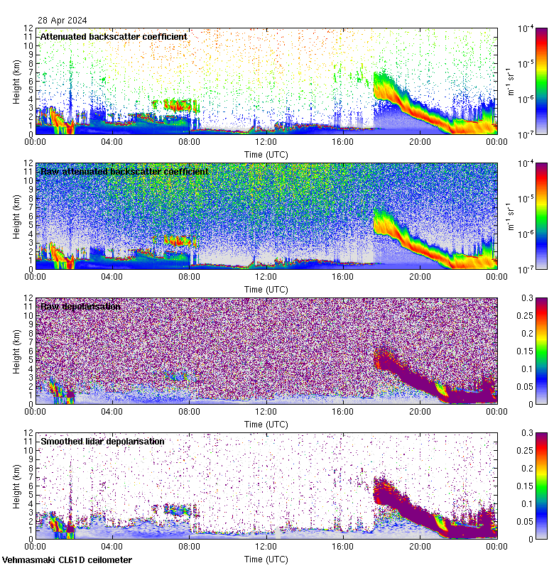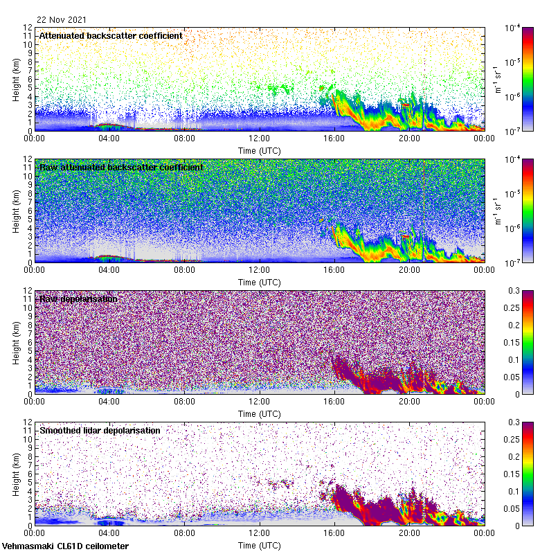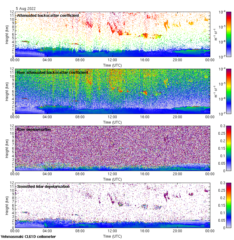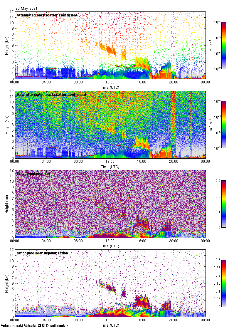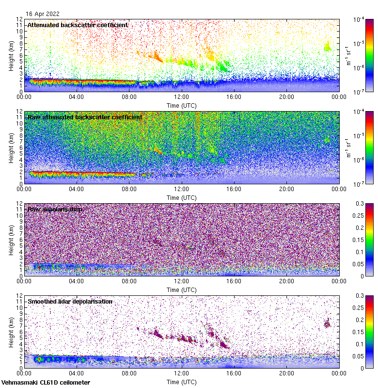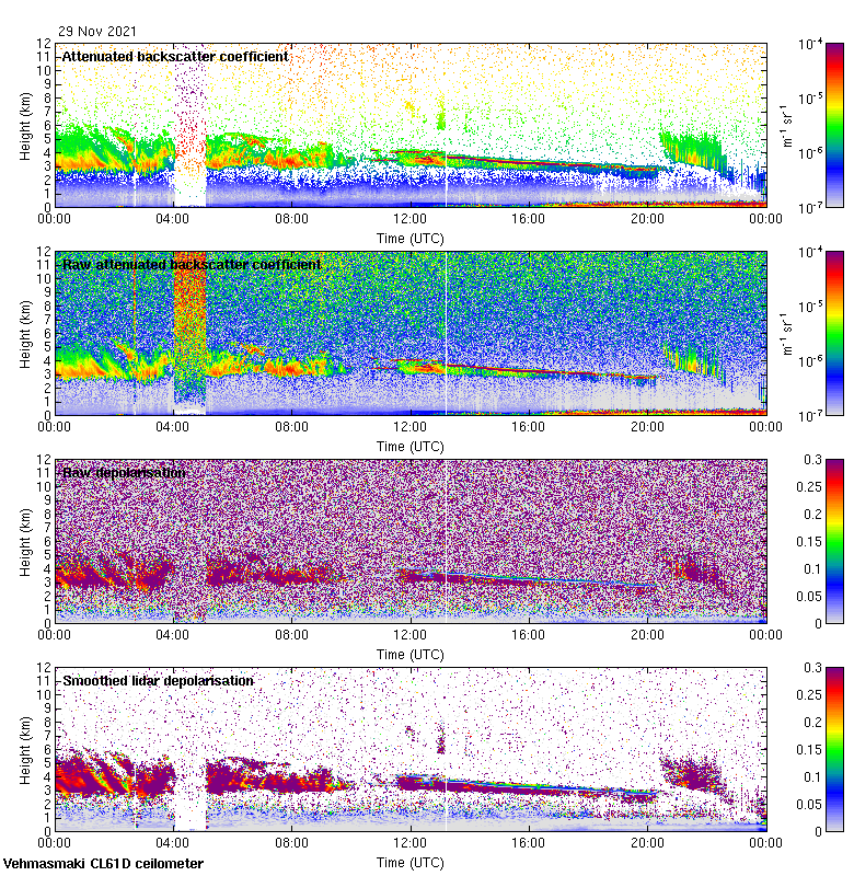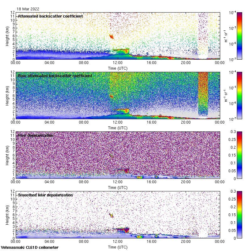This page contains links to the daily Vehmasmaki Vaisala CL61D ceilometer images created at Kumpula.