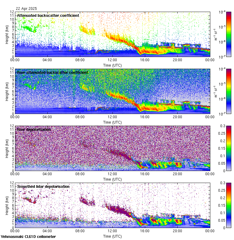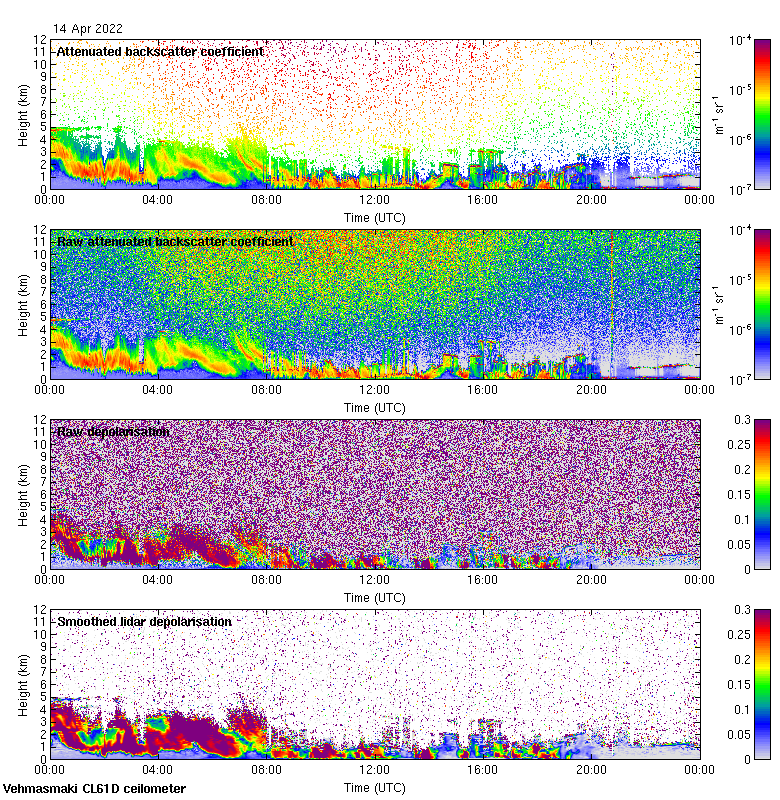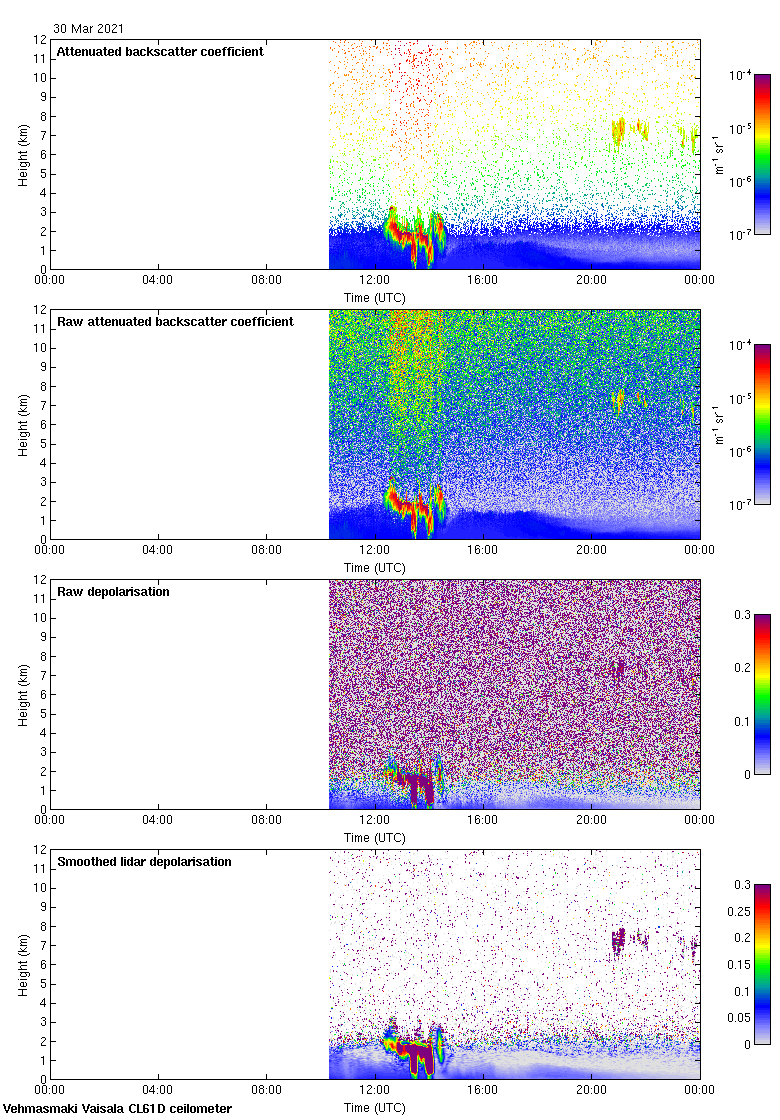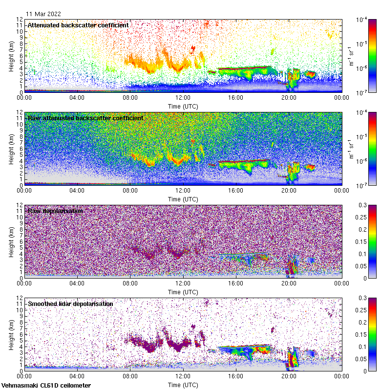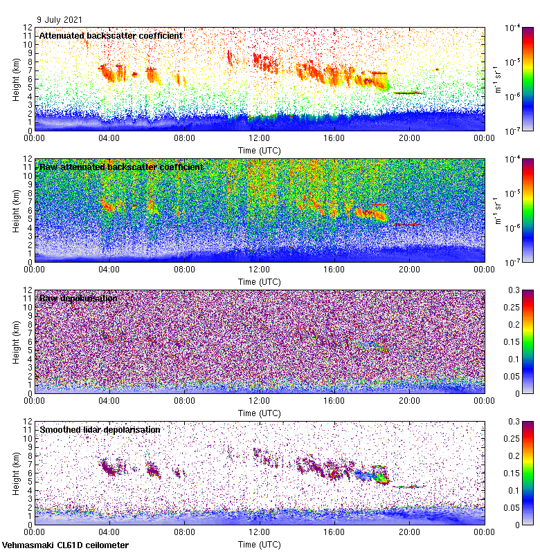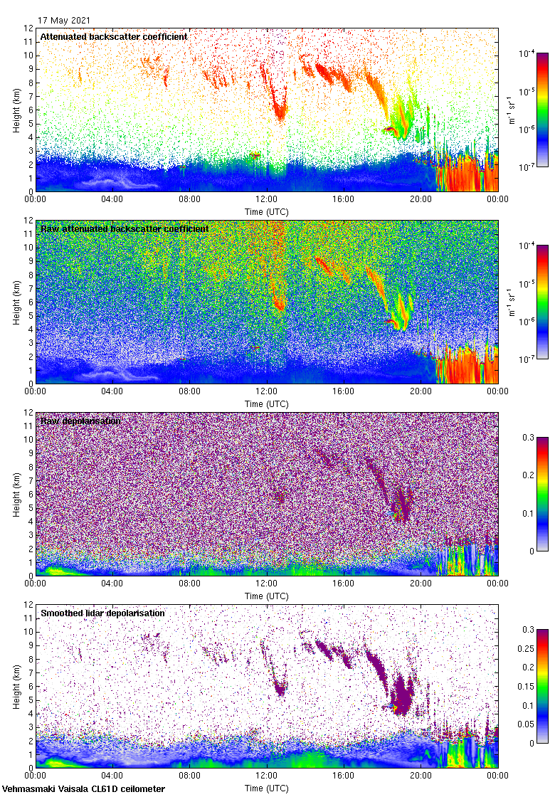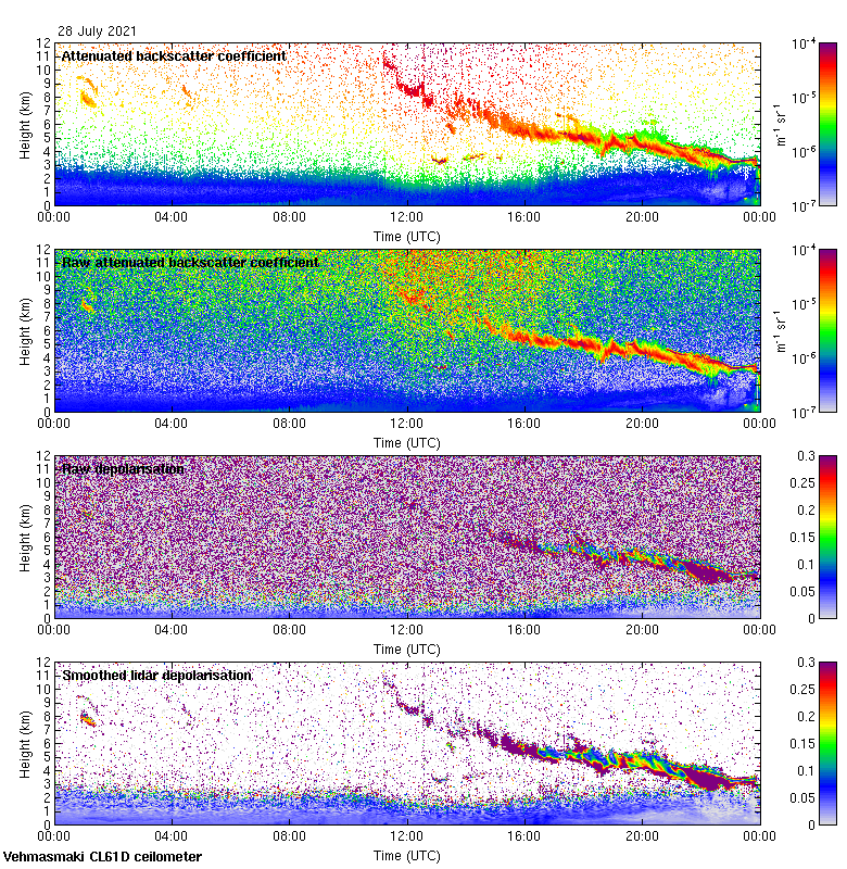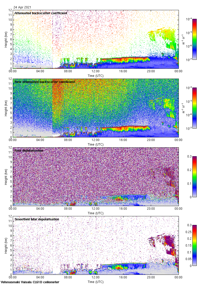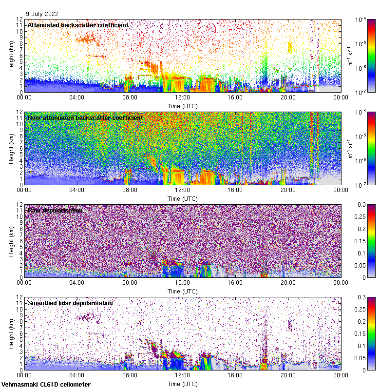 This page contains links to the daily Vehmasmaki Vaisala CL61D ceilometer images created at Kumpula.
