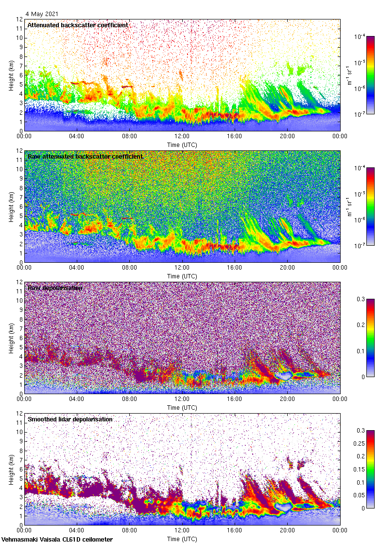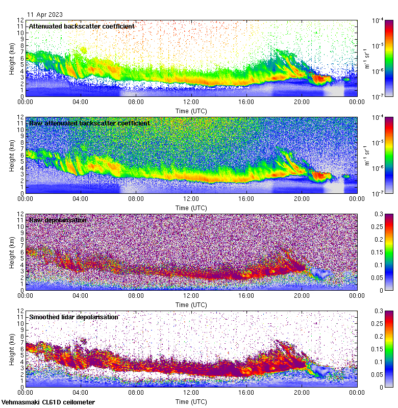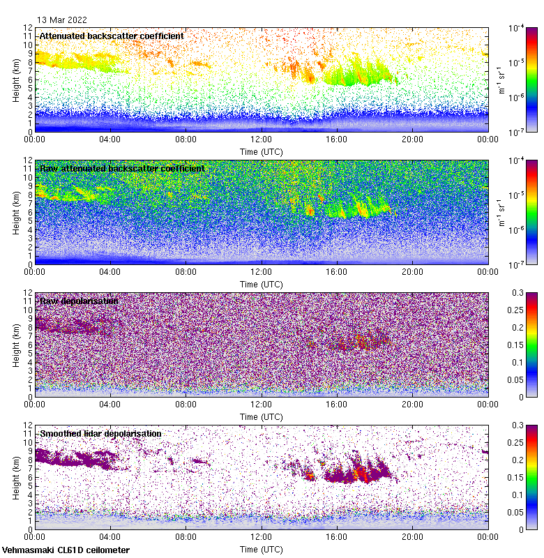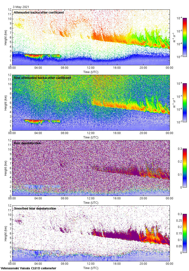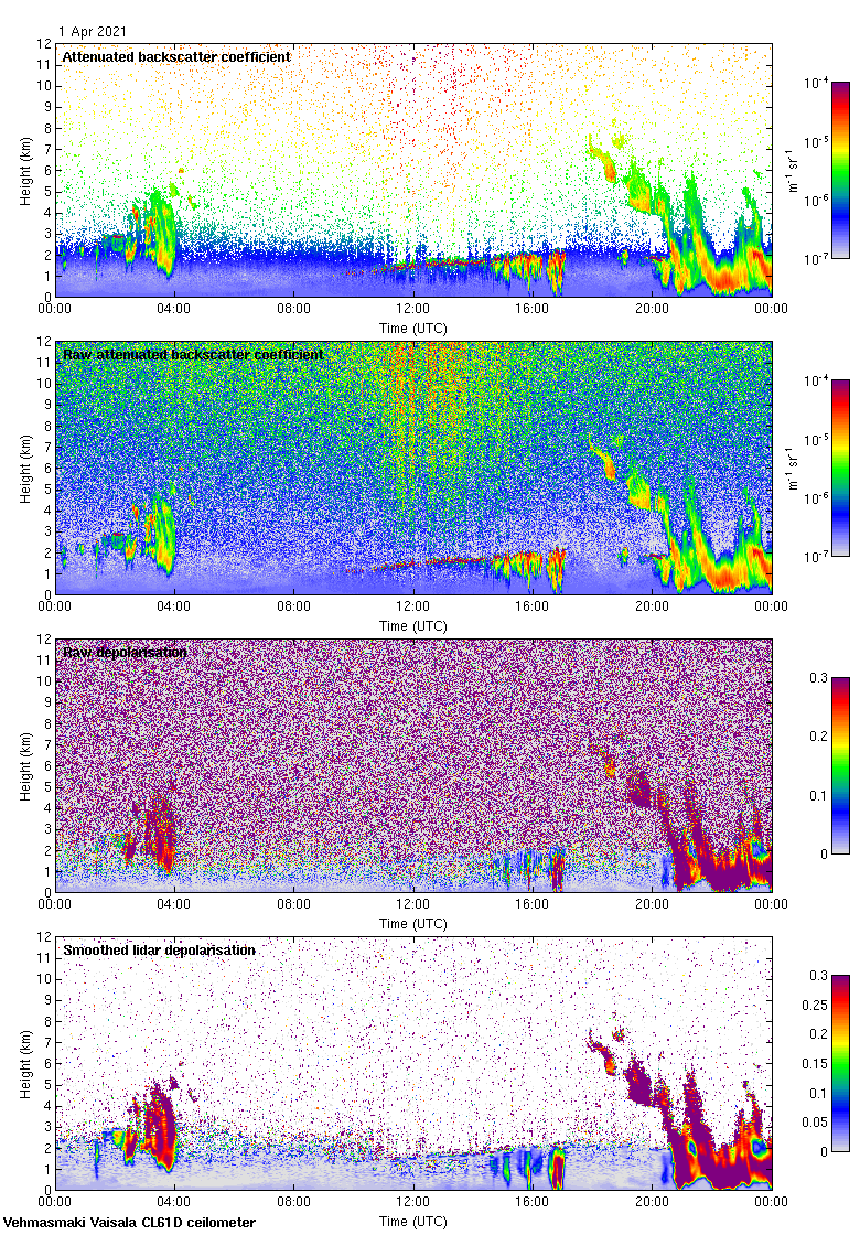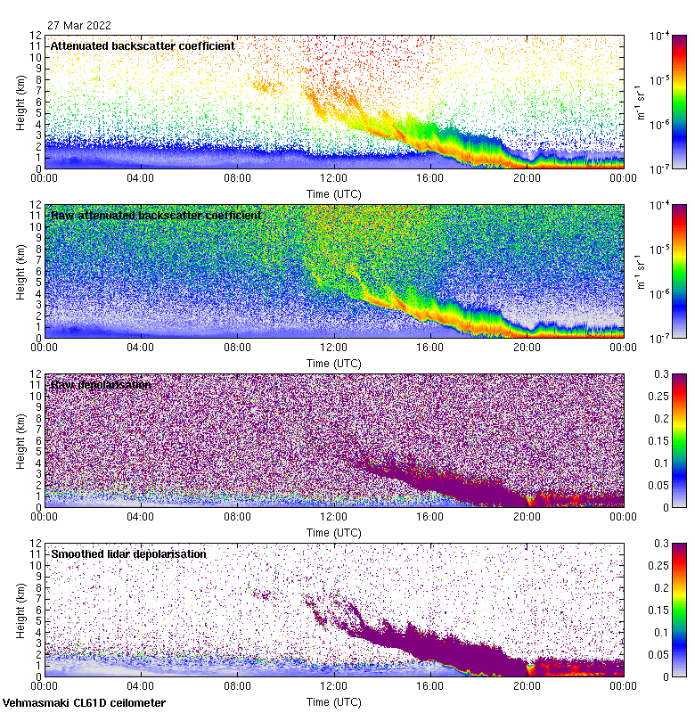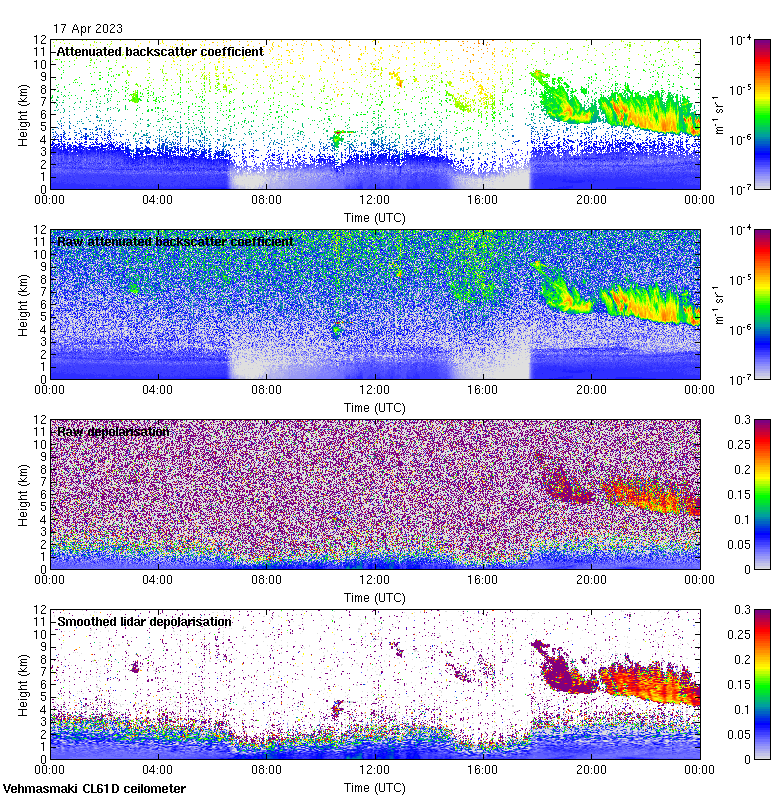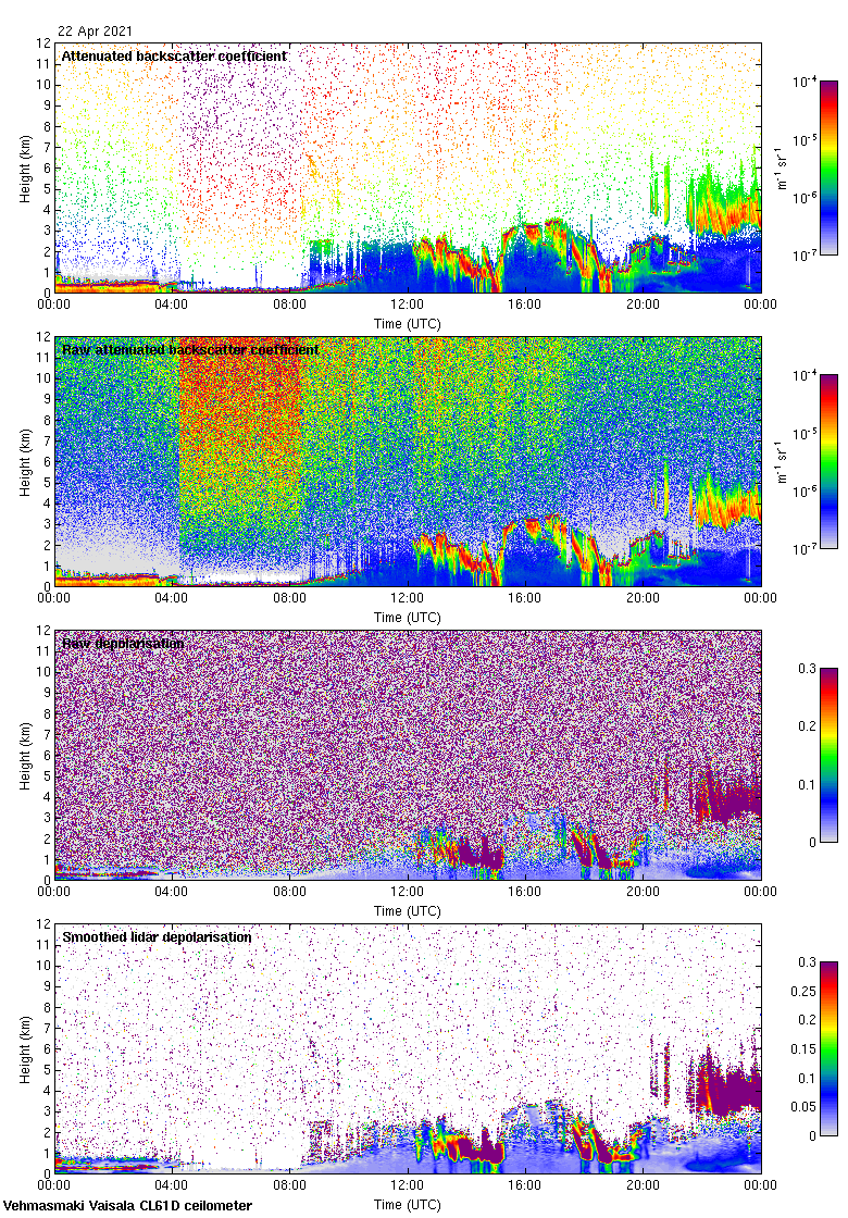 This page contains links to the daily Vehmasmaki Vaisala CL61D ceilometer images created at Kumpula.